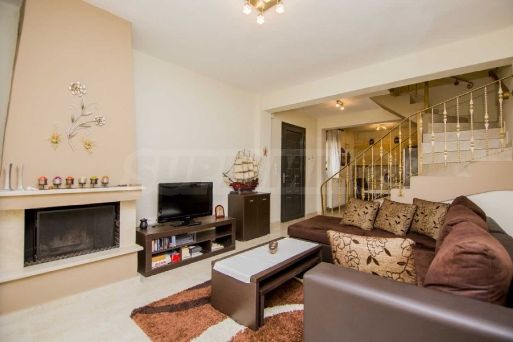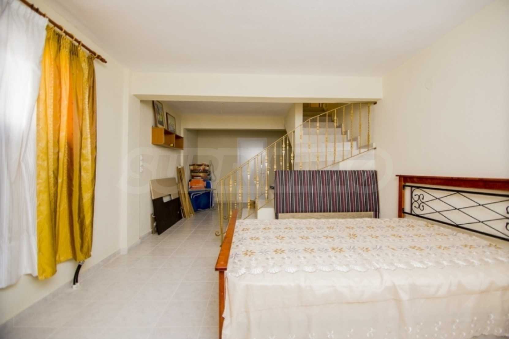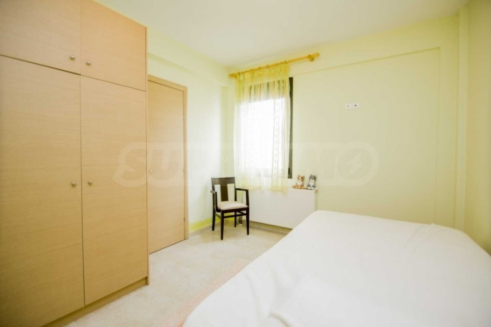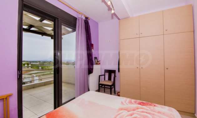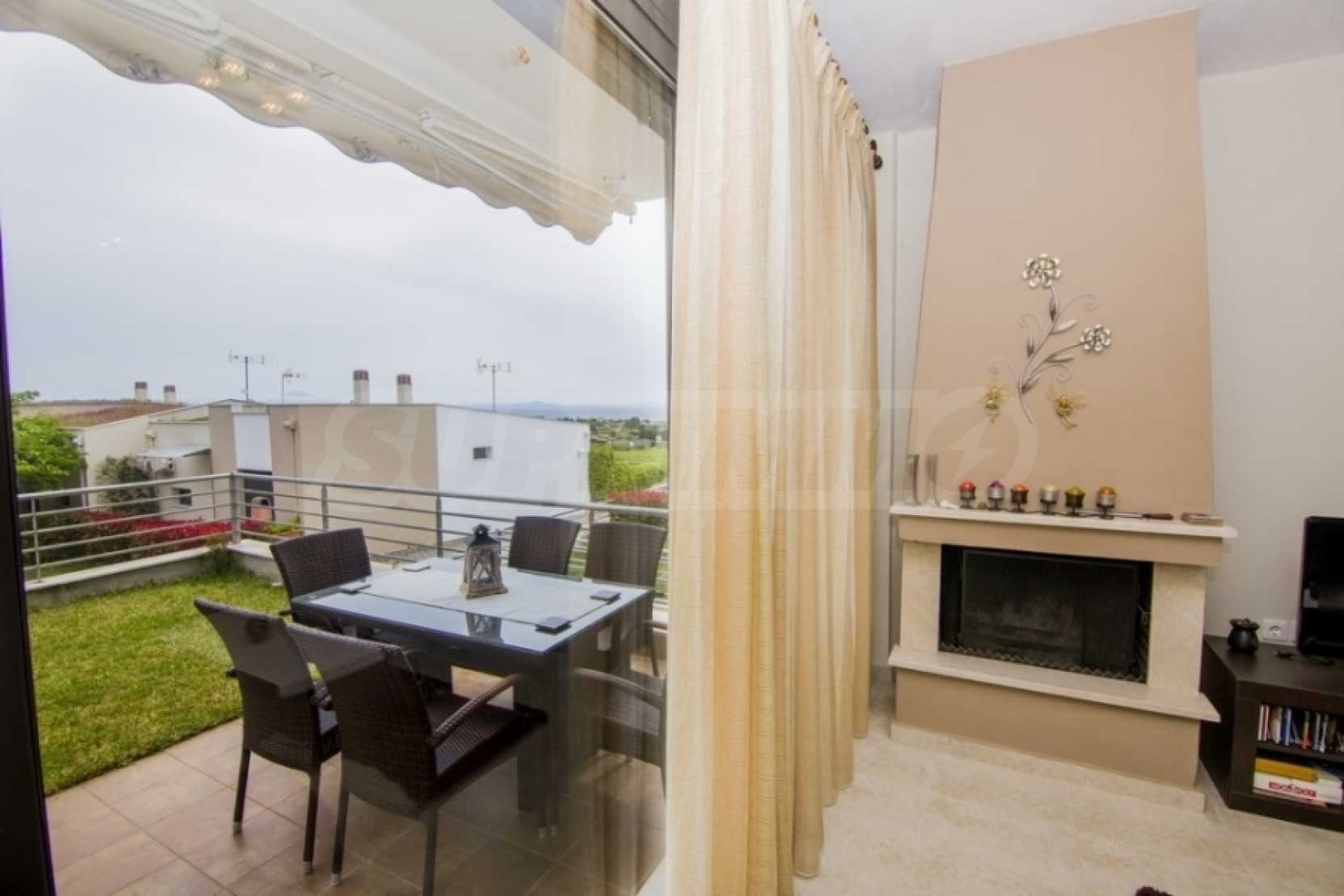 Двуетажен мезонет със сутерен 106,5кв.м с ексклузивно ползване на земя 104кв.м в комплекс Панорама в Кариани, Кавала. Партерът се състои от просторен хол с кухня и wc. По вътрешната стълба се стига до горното ниво, което се състои от две просторни спални и основна баня. И балконът, и верандата предлагат безпрепятствена гледка към морето. Резиденцията разполага с просторен сутерен, като част от него се използва като къща за гости, а останалата част като котелно помещение. Има автономно отопление на нафта, пластмасова дограма, шатра и барбекю.