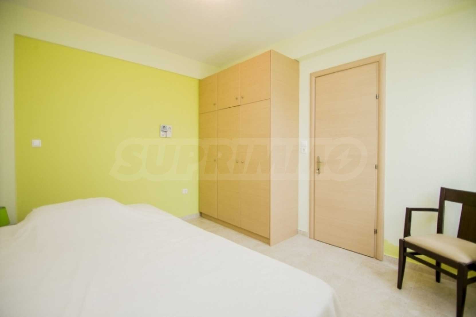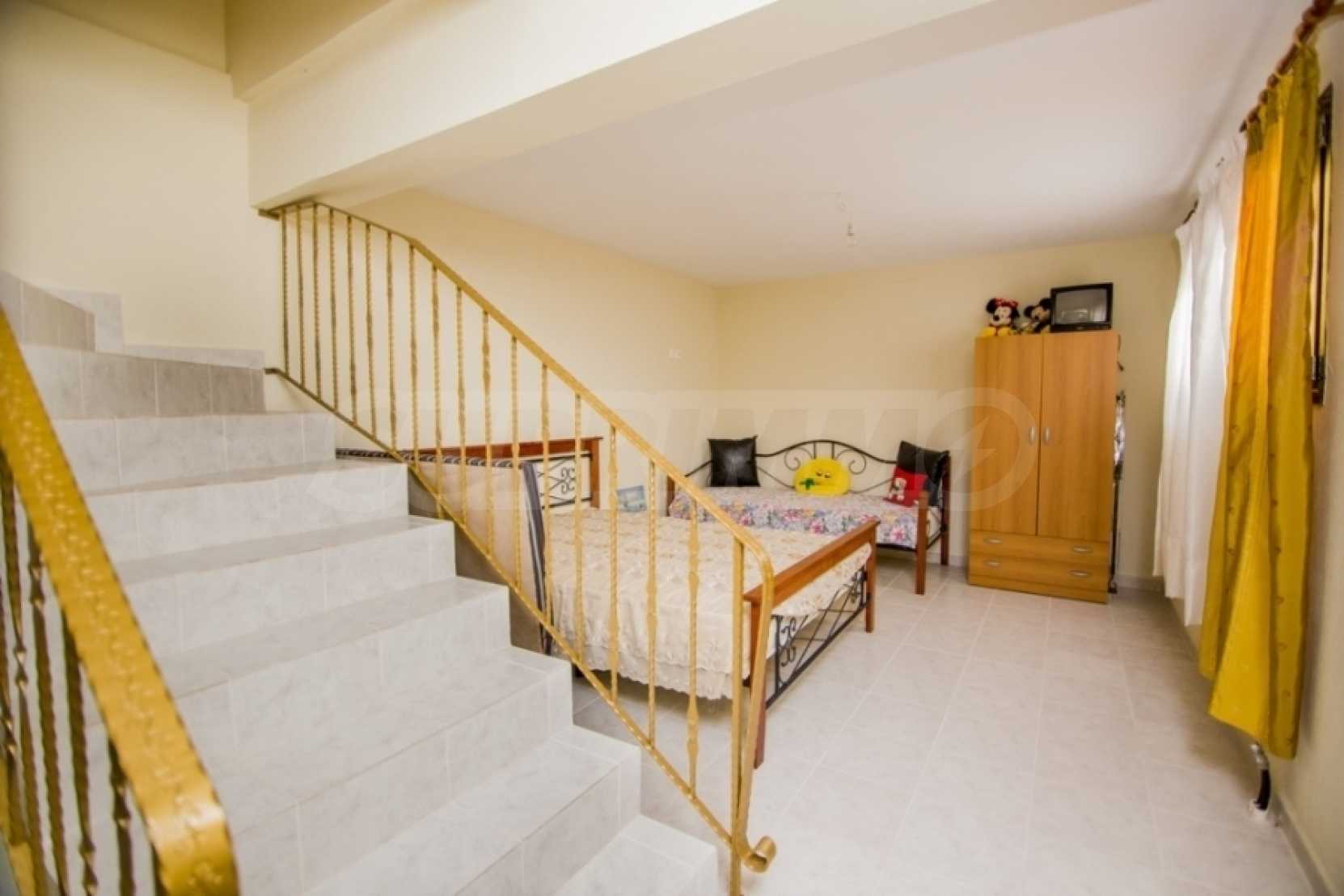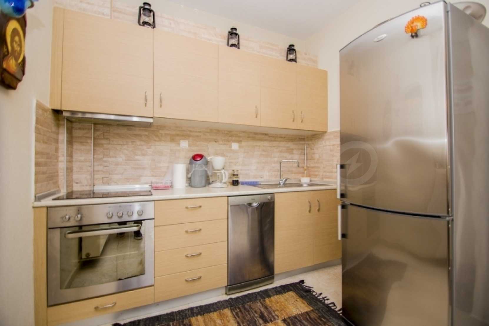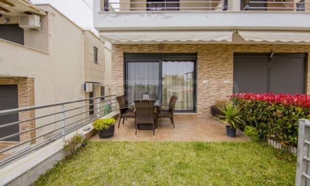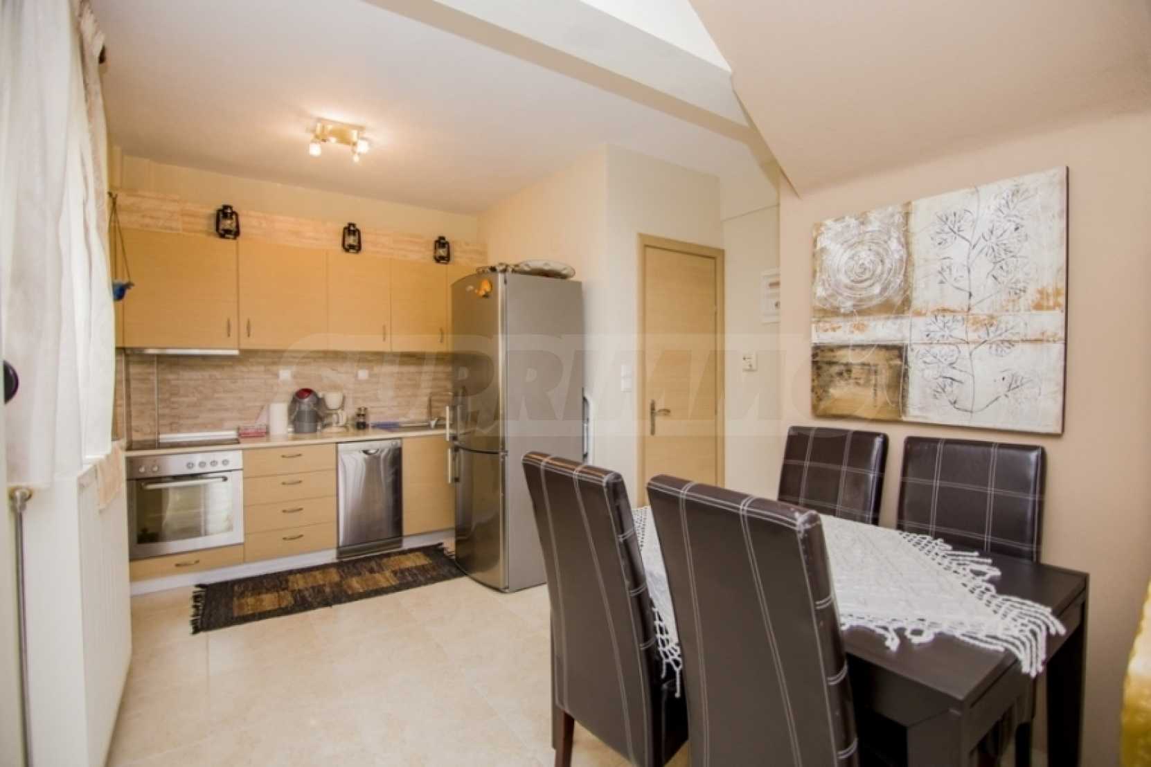 Двуетажен мезонет със сутерен 106,5кв.м с ексклузивно ползване на земя 104кв.м в комплекс Панорама в Кариани, Кавала. Партерът се състои от просторен хол с кухня и wc. По вътрешната стълба се стига до горното ниво, което се състои от две просторни спални и основна баня. И балконът, и верандата предлагат безпрепятствена гледка към морето. Резиденцията разполага с просторен сутерен, като част от него се използва като къща за гости, а останалата част като котелно помещение. Има автономно отопление на нафта, пластмасова дограма, шатра и барбекю.