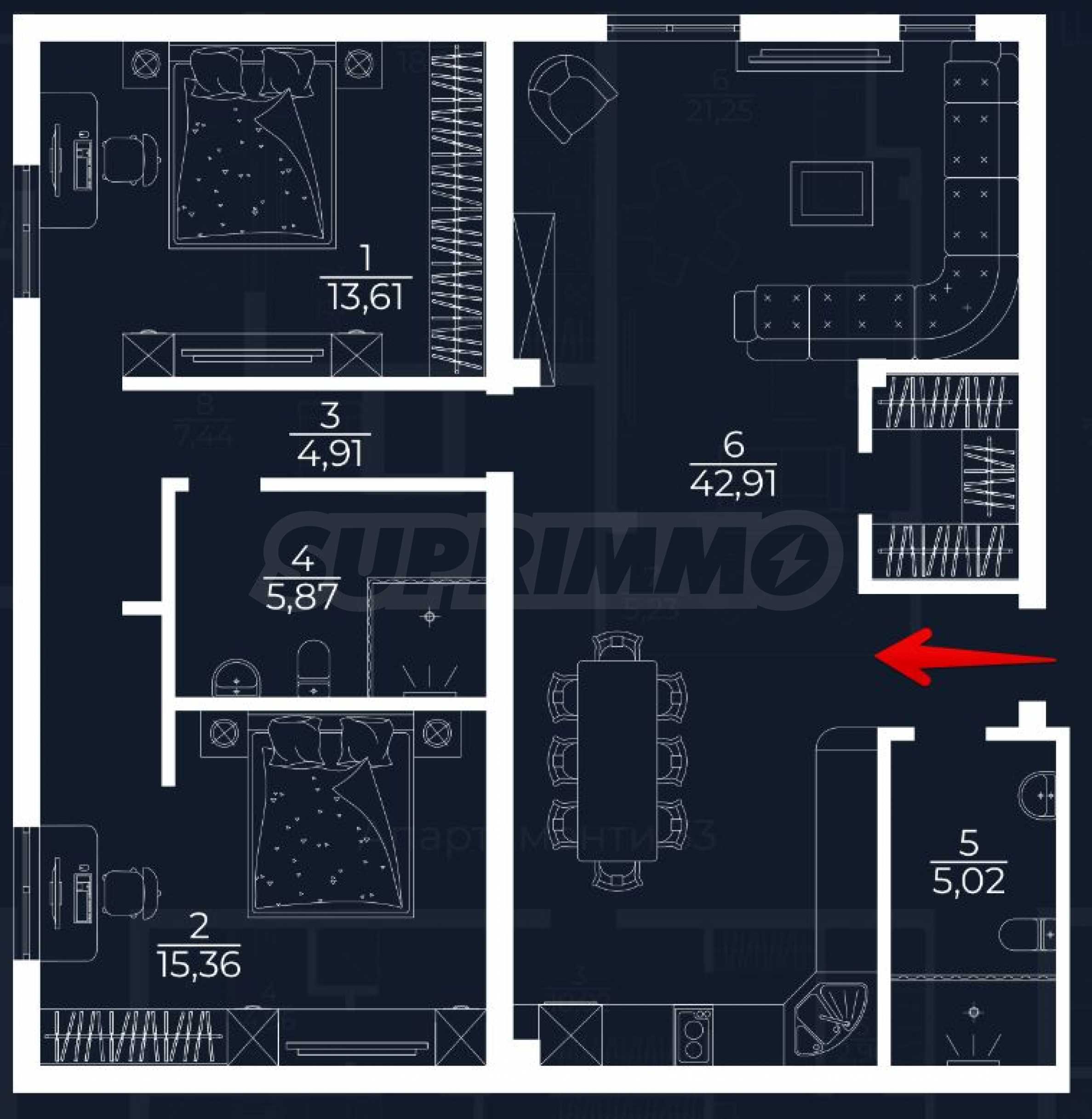 *На снимковия материал можете да разгледате напълно завършен, обзаведен имот в сградата.