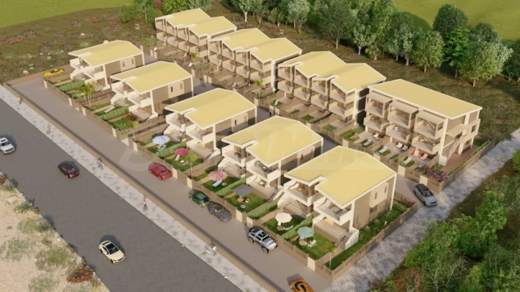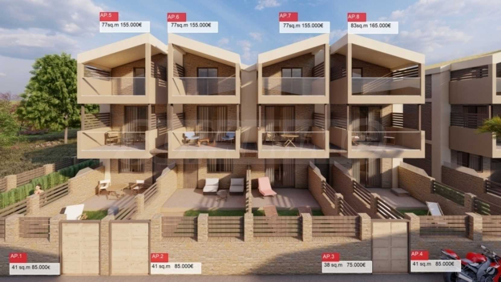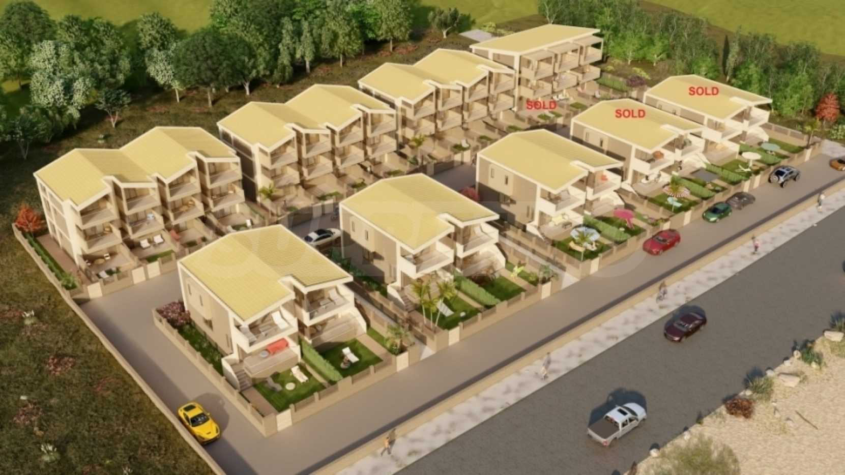 Комплекс от апартаменти. Сградата е разположена на привилегировано място във Неа кердилия. Той се състои от общо 6 апартамента. Три от тях са разположени на приземния етаж и включват дневна с отворен план, спалня и баня. Трите апартамента на партерния етаж са разположени на три нива и се състоят от дневна с отворен план, две просторни спални, две бани и складово помещение. Те предлагат безпрепятствен изглед към морето и са само на 80 метра от брега. Всеки апартамент включва синтетична дограма със комарници ,направени са изводи за инсталиране на климатик, соларен бойлер и алармена система. Сградата е с източно изложение.