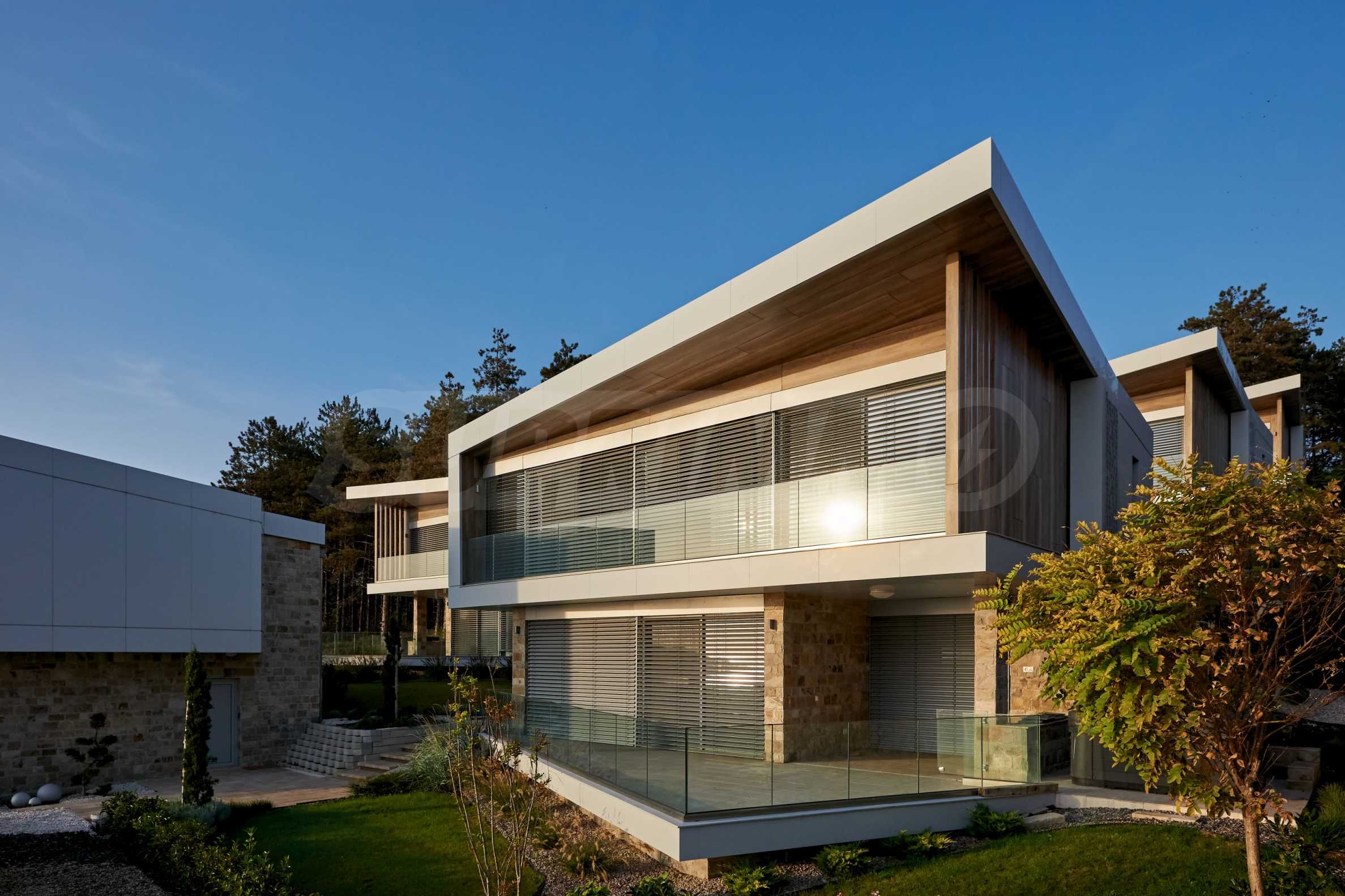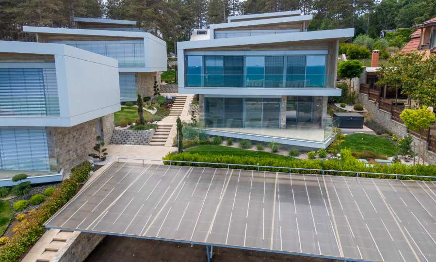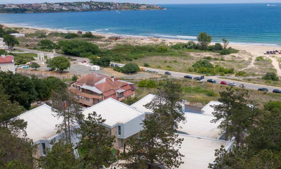 Модерната къща е част от нов комплекс от 6 вили, с контролиран достъп, разположени на първа линия море до най-популярния плаж край Созопол - Каваците.