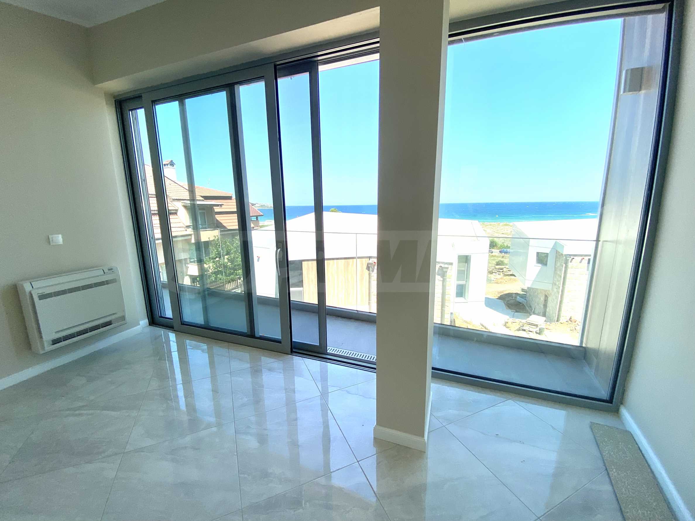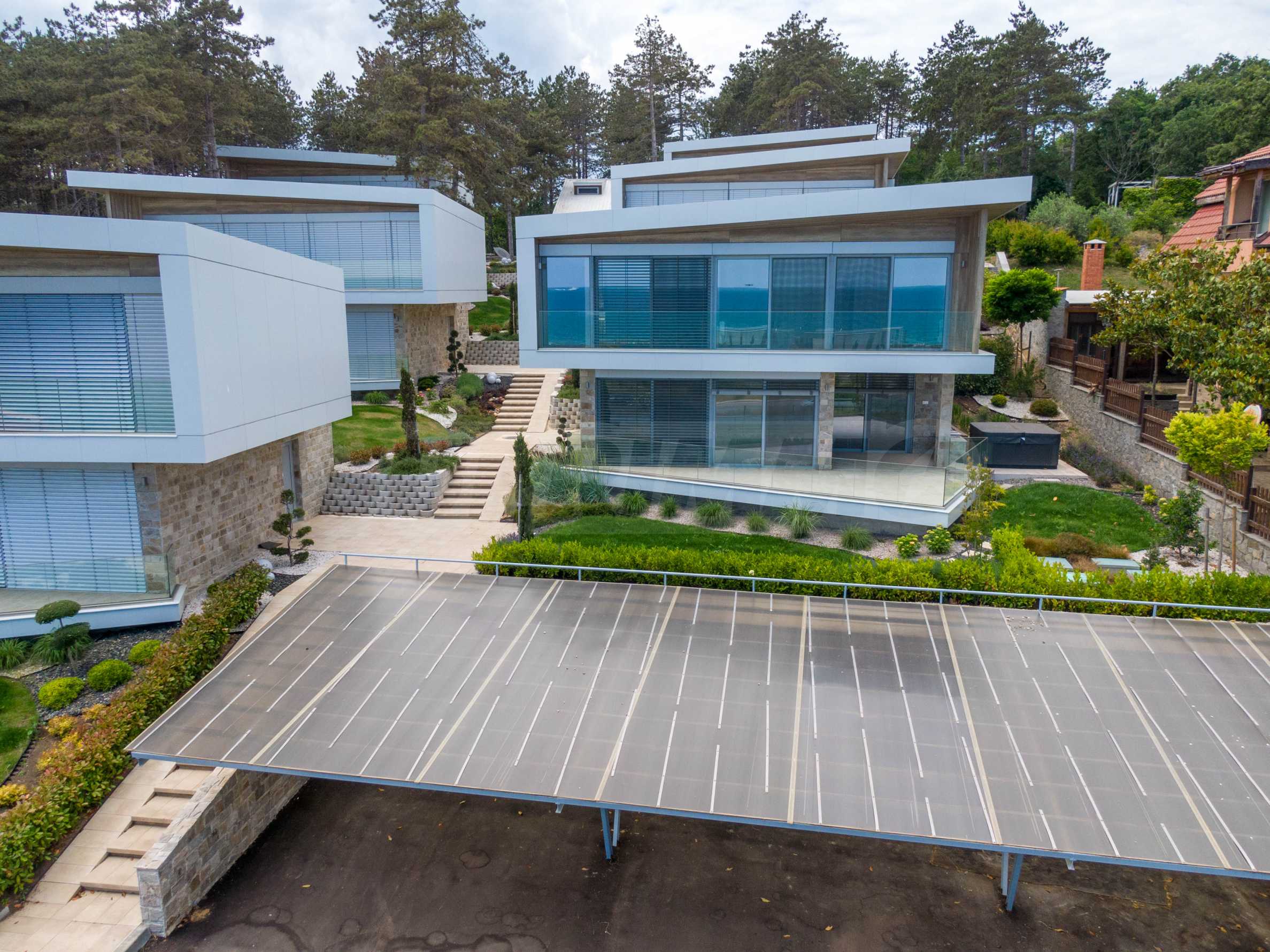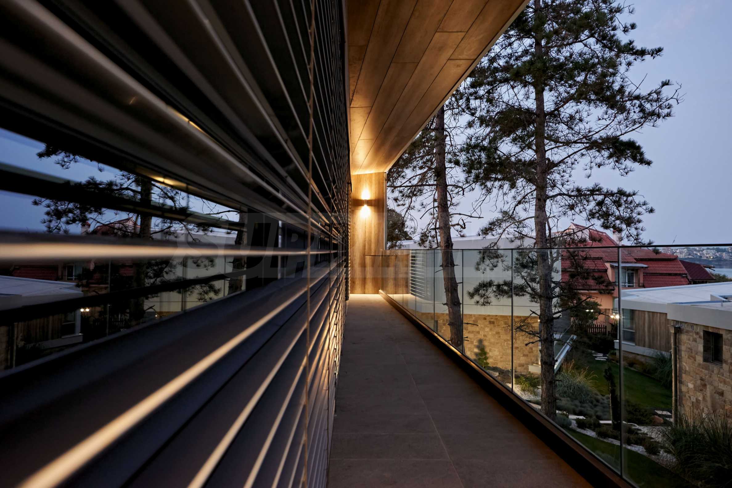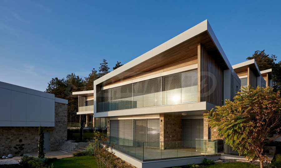 • за осигуряване на максимални гледки към морето, прозорците са френски тип, с голяма плъзгаща се част, за изобилие на естествена светлина и хармонично преминаване от интериора в екстериор и в същото време, имотите са оборудвани с електрически регулируеми външни щори по цялата фасада на първия и втория етаж, осигуряващи максимална защита срещу светлина и агресивна климатична среда;