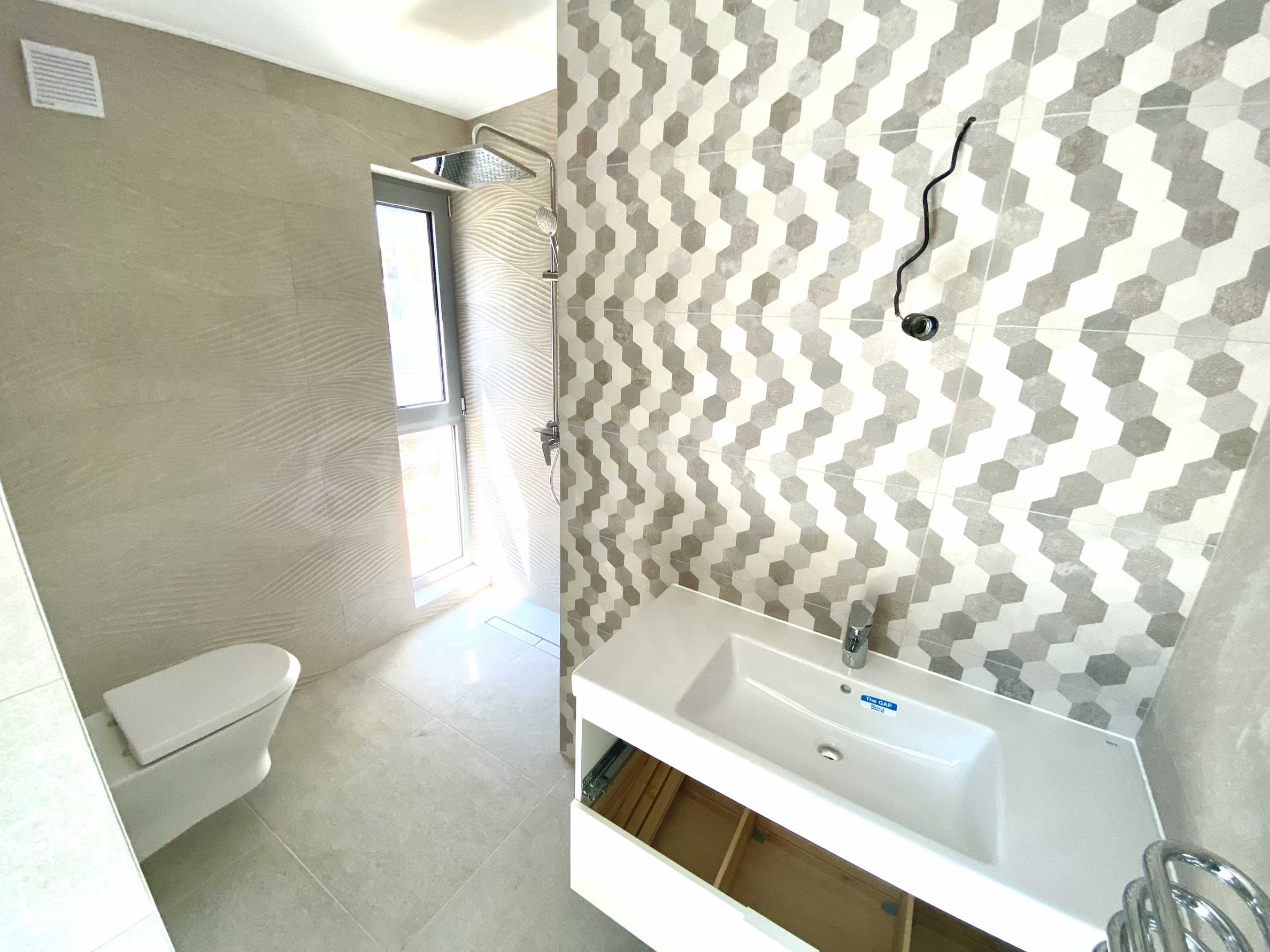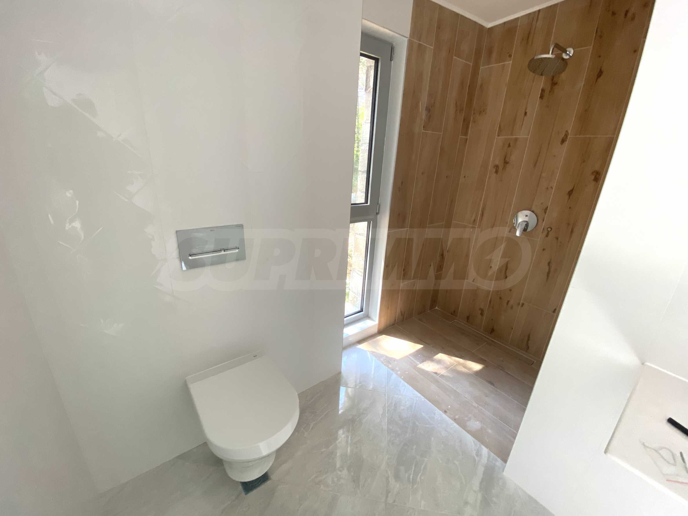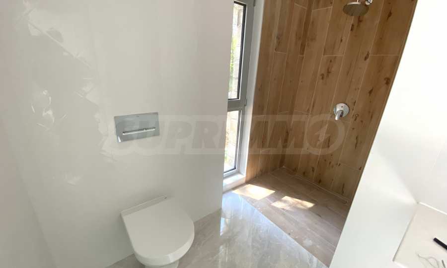 • баните са напълно завършени с фаянс и гранитогрес от италиански и испански фирми, изцяло оборудвани със санитария на испанския производител Roca, бойлери - последен клас на италиански бранд, модерни плъзгащи душ паравани, дизайнерски лири за отопление на всички бани, осигуряващи максимален комфорт и през зимния сезон;