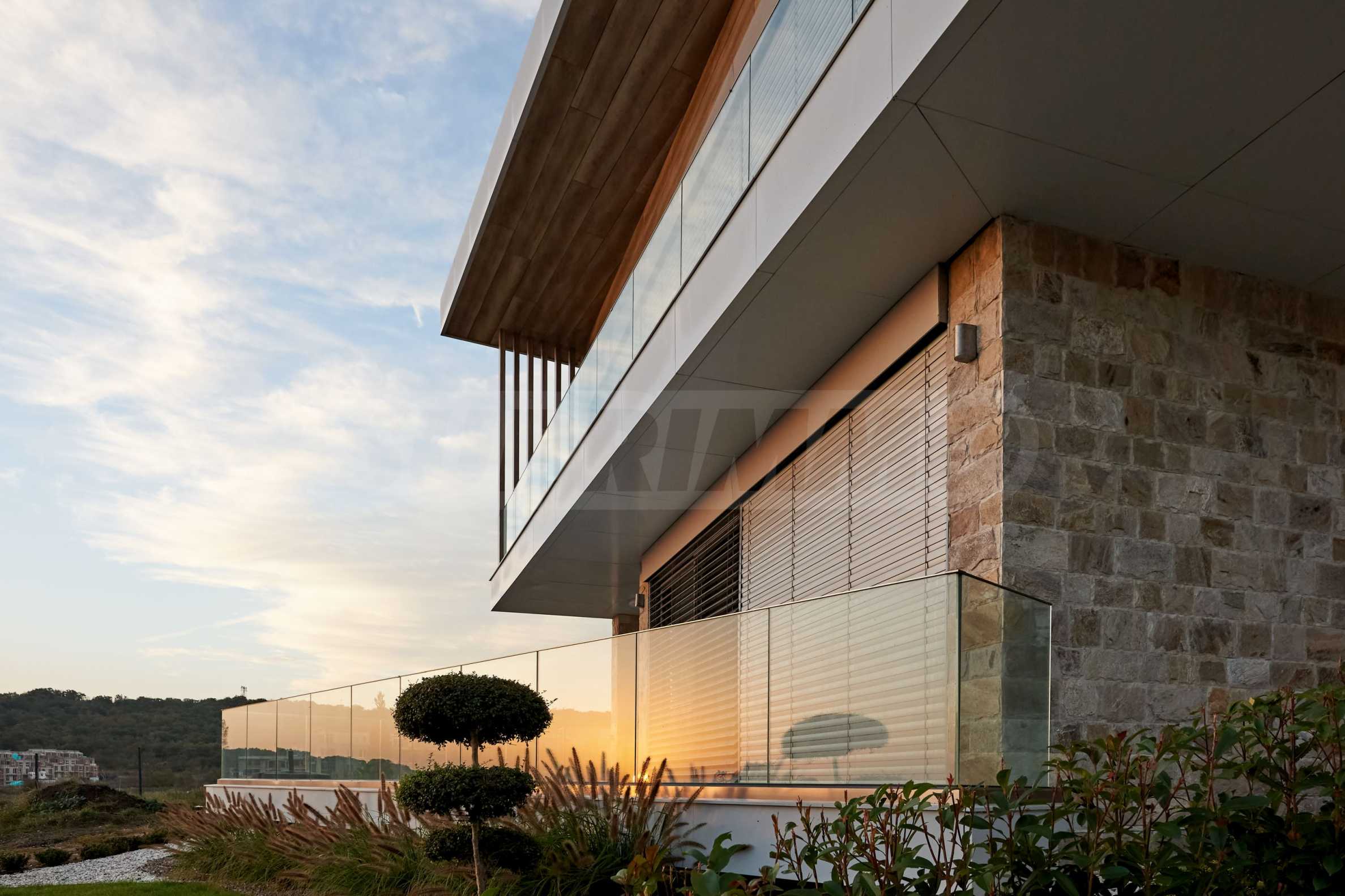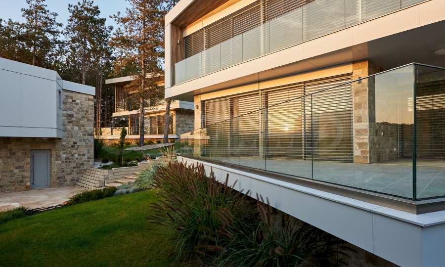 • парапетите към терасите и външната веранда са изработени от закалено стъкло;