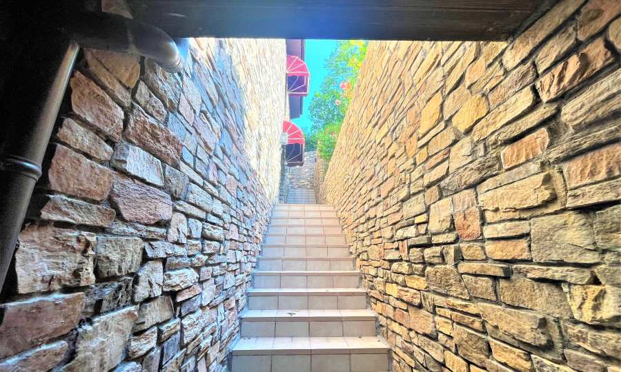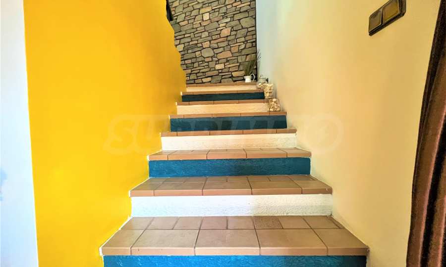 Имотът с РЗП от 380 кв.м е изграден в италиански стил Casa di Pietro и разполага с двор. Има възможност за изграждане на басейн или поставяне на джакузи.