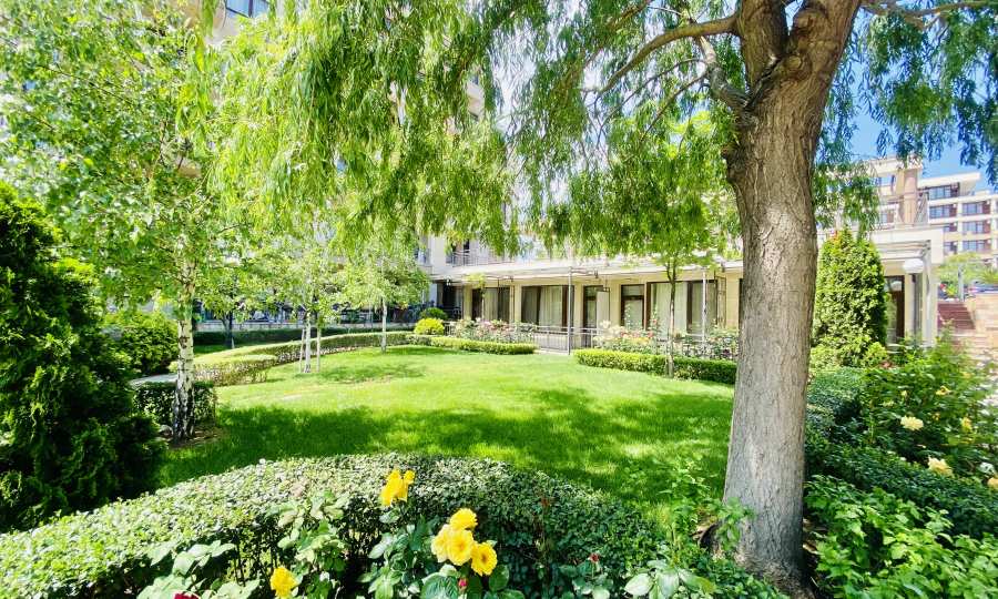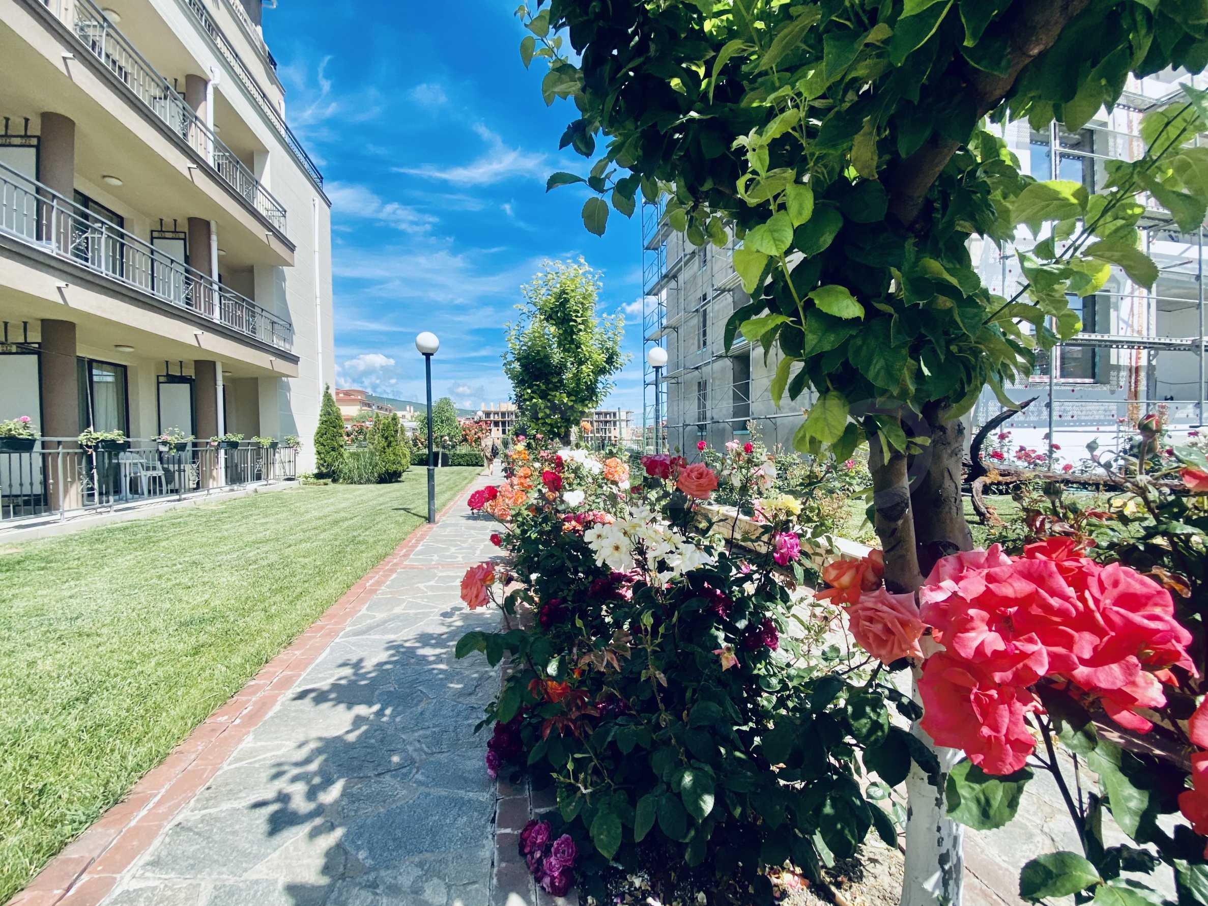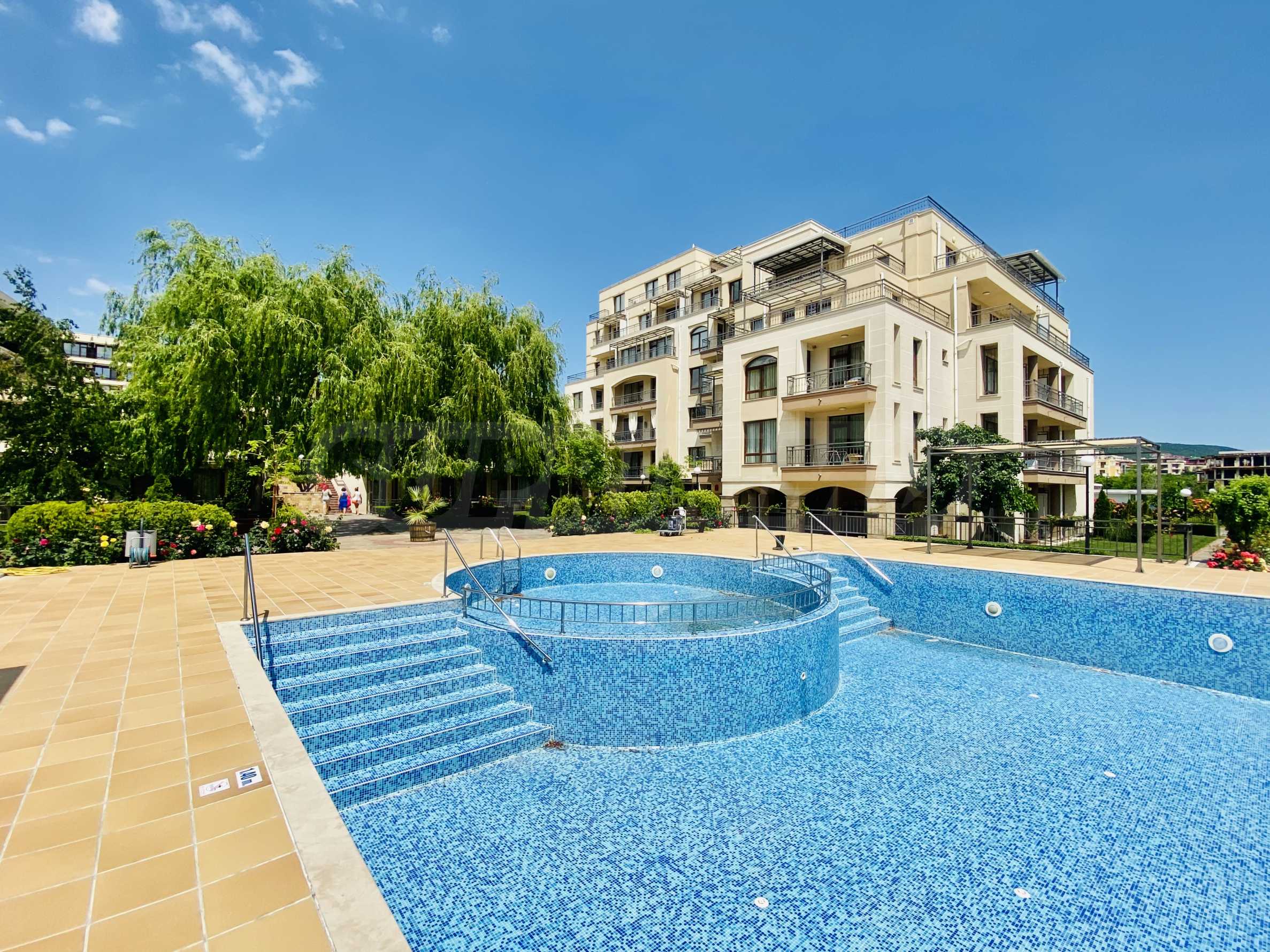 Комплексът разполага с басейн с детска секция и втори, отделен детски басейн, детска площадка и рецепция. Има чудесен ресторант, а до сградата има места за паркиране. В района има голям супермаркет, фитнес център, заведения и други удобства.