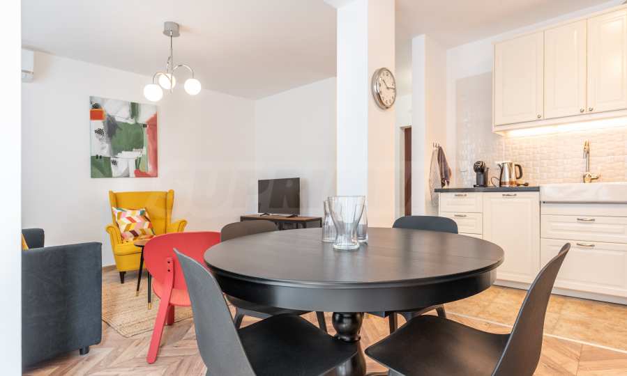 Апартаментът е съвременно и стилно обзаведен и качествено оборудван, с всичко необходимо за комфортен начин на живот. Имотът е функционално разпределен, с просторни и светли помещения.