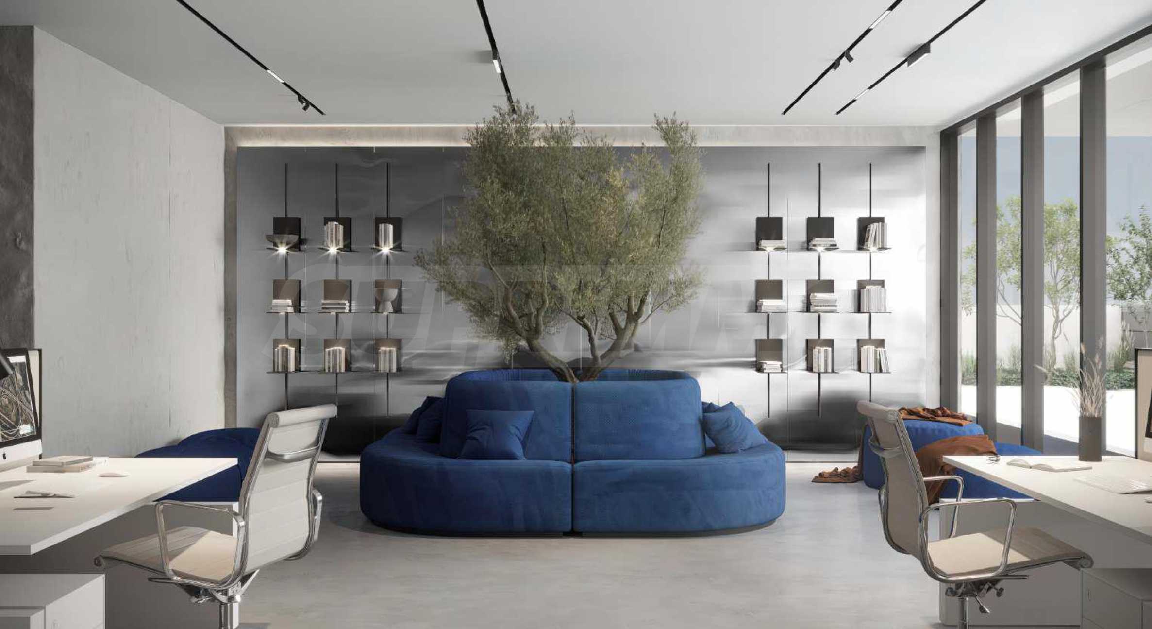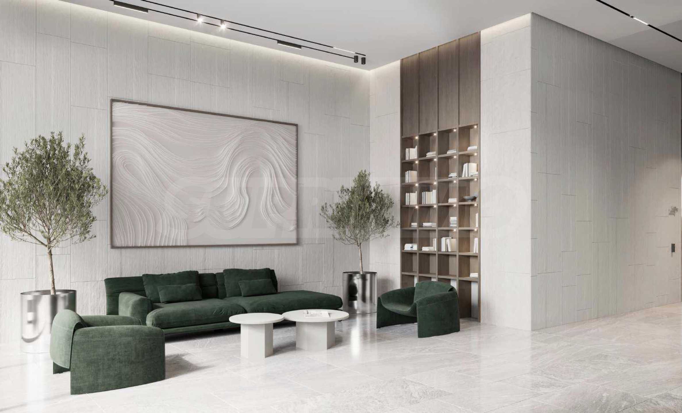 Просторното светло фоайе с 24/7 консиерж обслужване подкрепя идеята на проекта да бъде максимално близо до природата. Живите дървета, естетически оформените дървени акценти и всички естествени материали изпълват средата и зареждат с позитивна енергия.