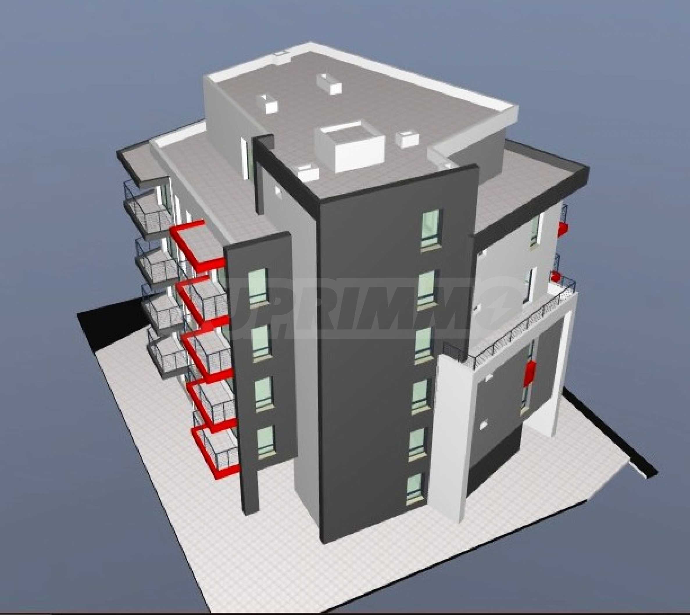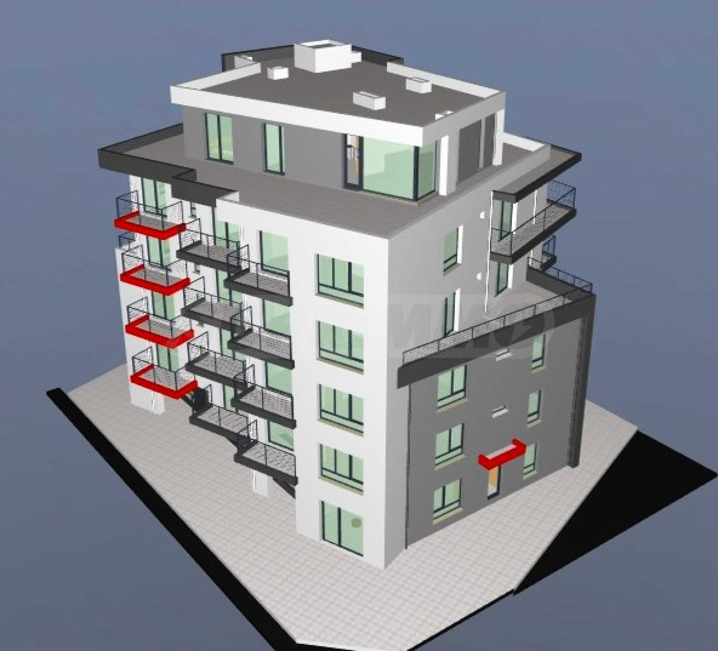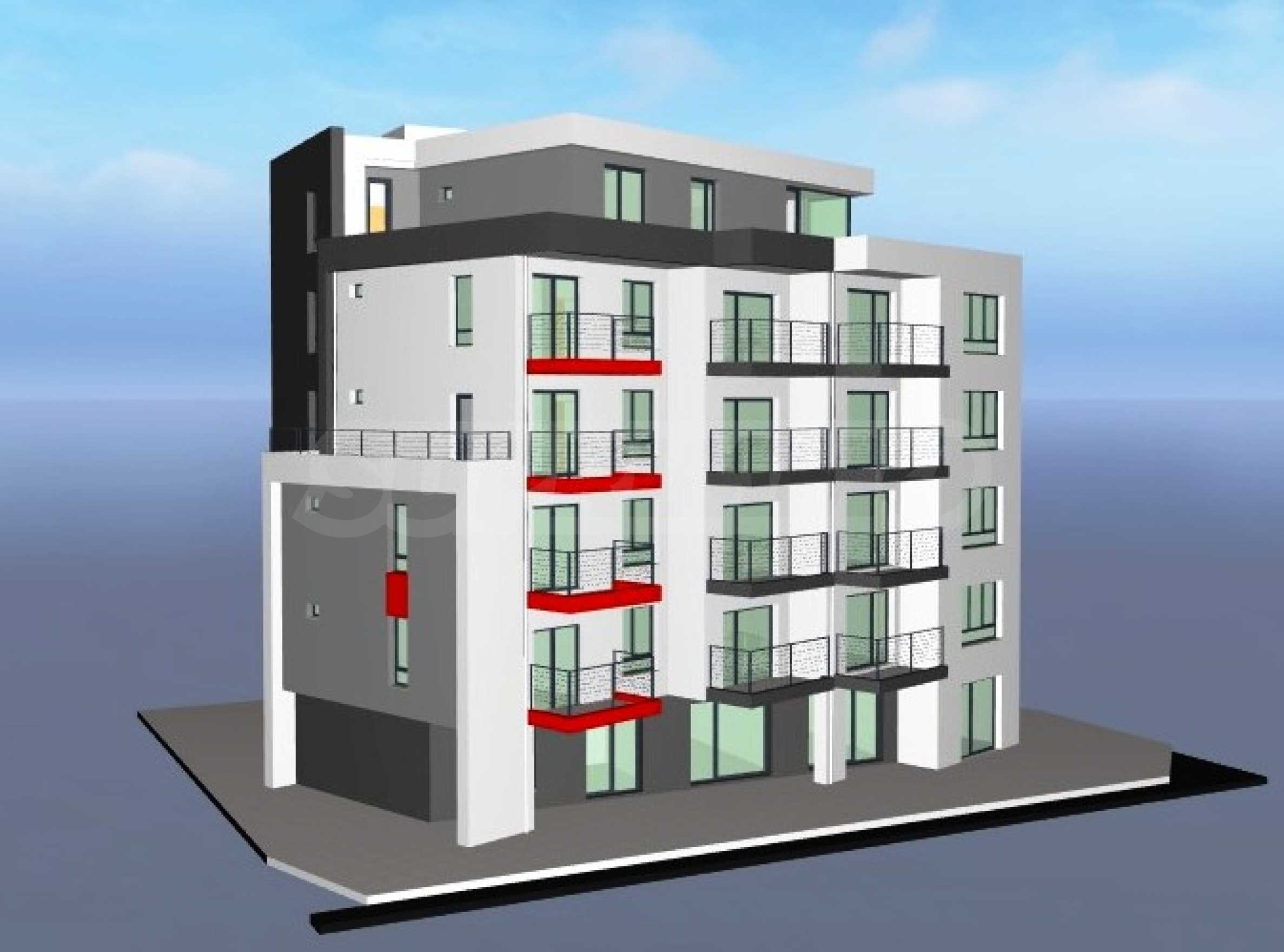 Комплексът се състои от пет жилищни етажа с общо 22 имота - студиа, жилища с една или с две спални.