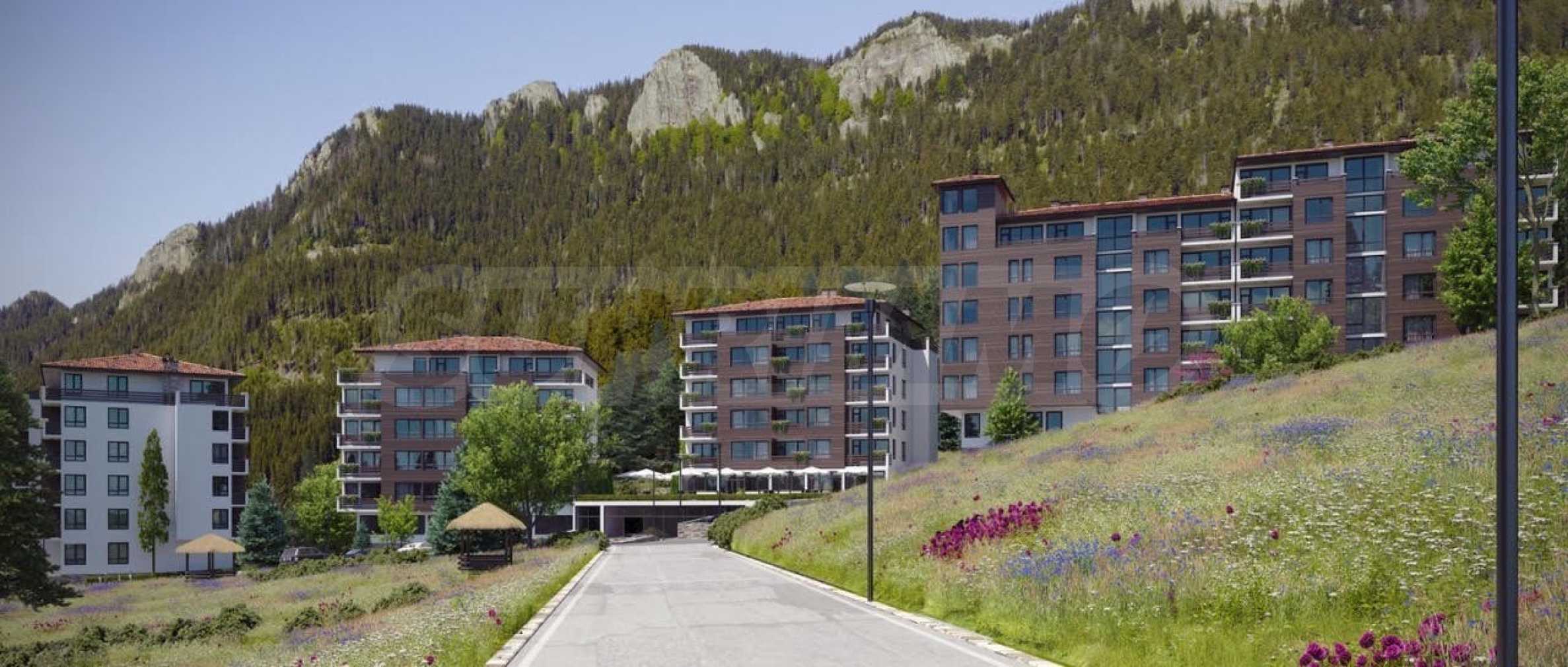 - Територията е с изобилие от зеленина и места за отдих за собствениците и техните гости. СПА центърът в хотелската част ще предложи релаксиращи преживявания, които укрепват организма и незабравима почивка в планината.