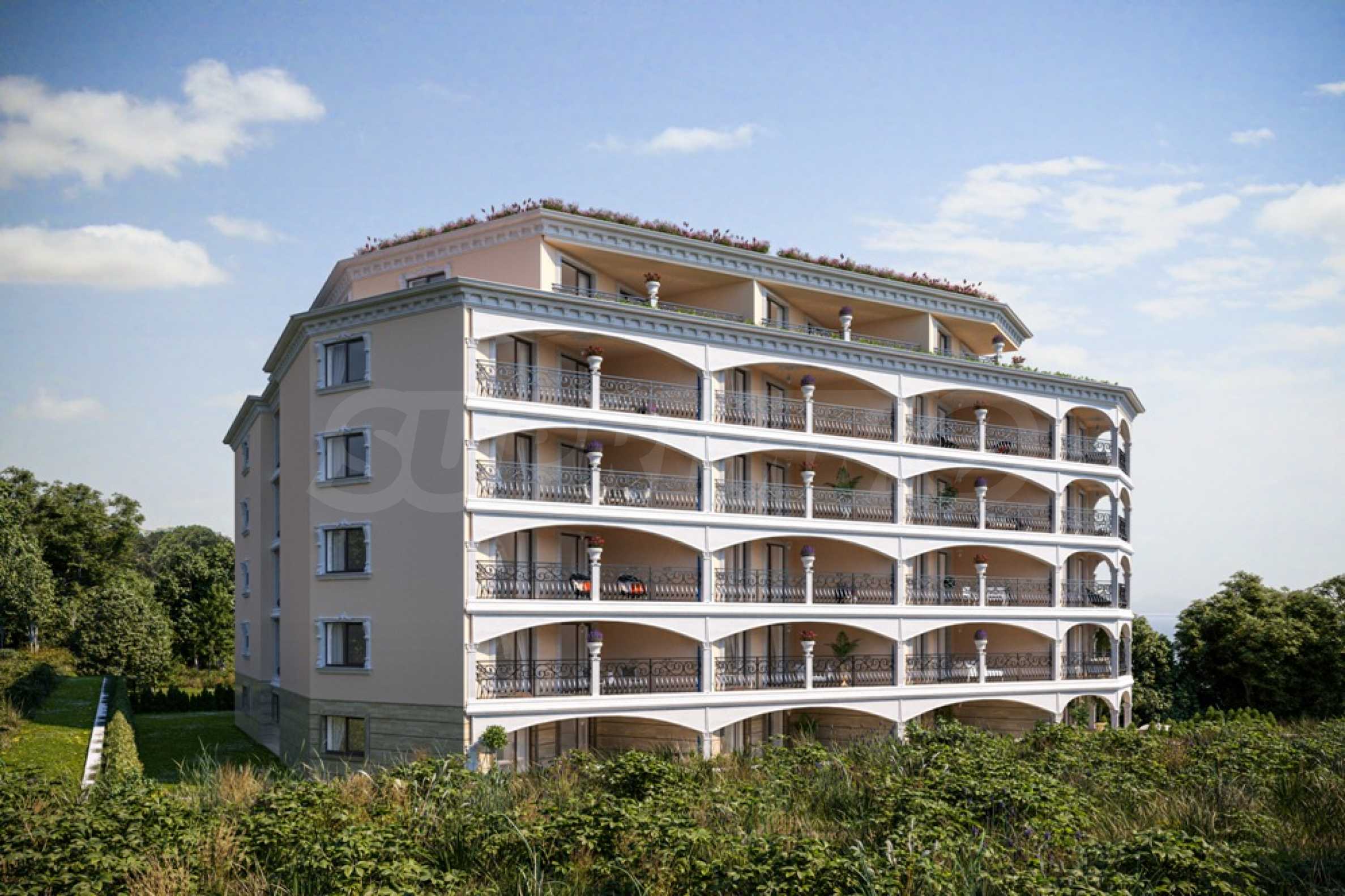 В елегантен и модерен комплекс, в съвременен и класически архитектурен стил, разположен на първа линия в новата част на гр. Несебър, в непосредствена близост до историческата зона на града и Южен парк.