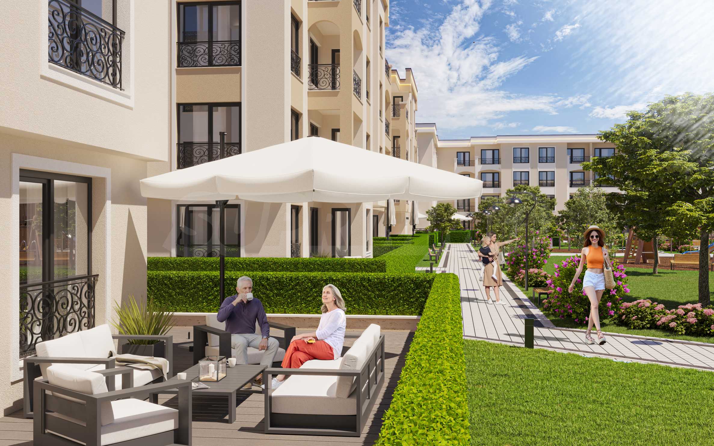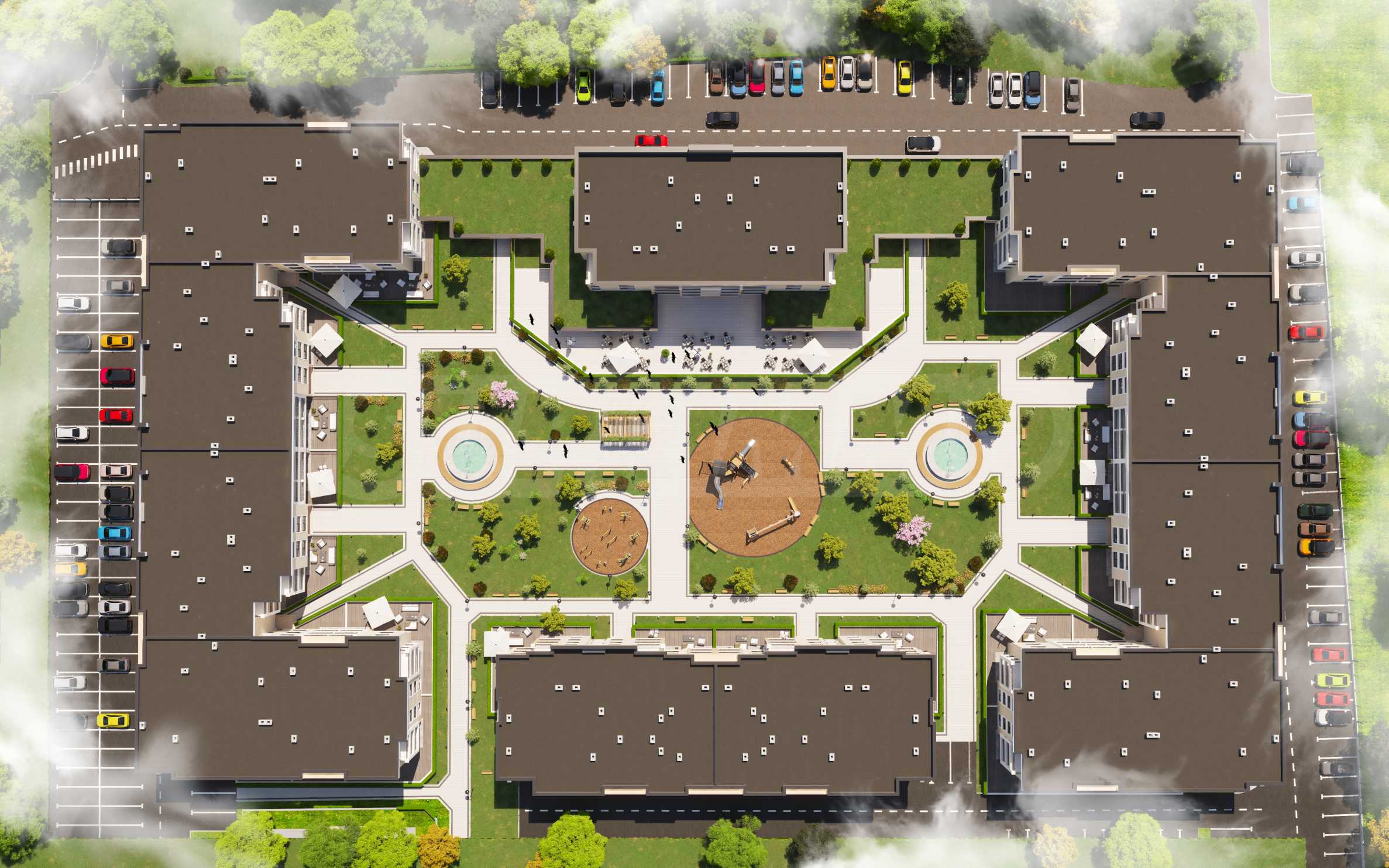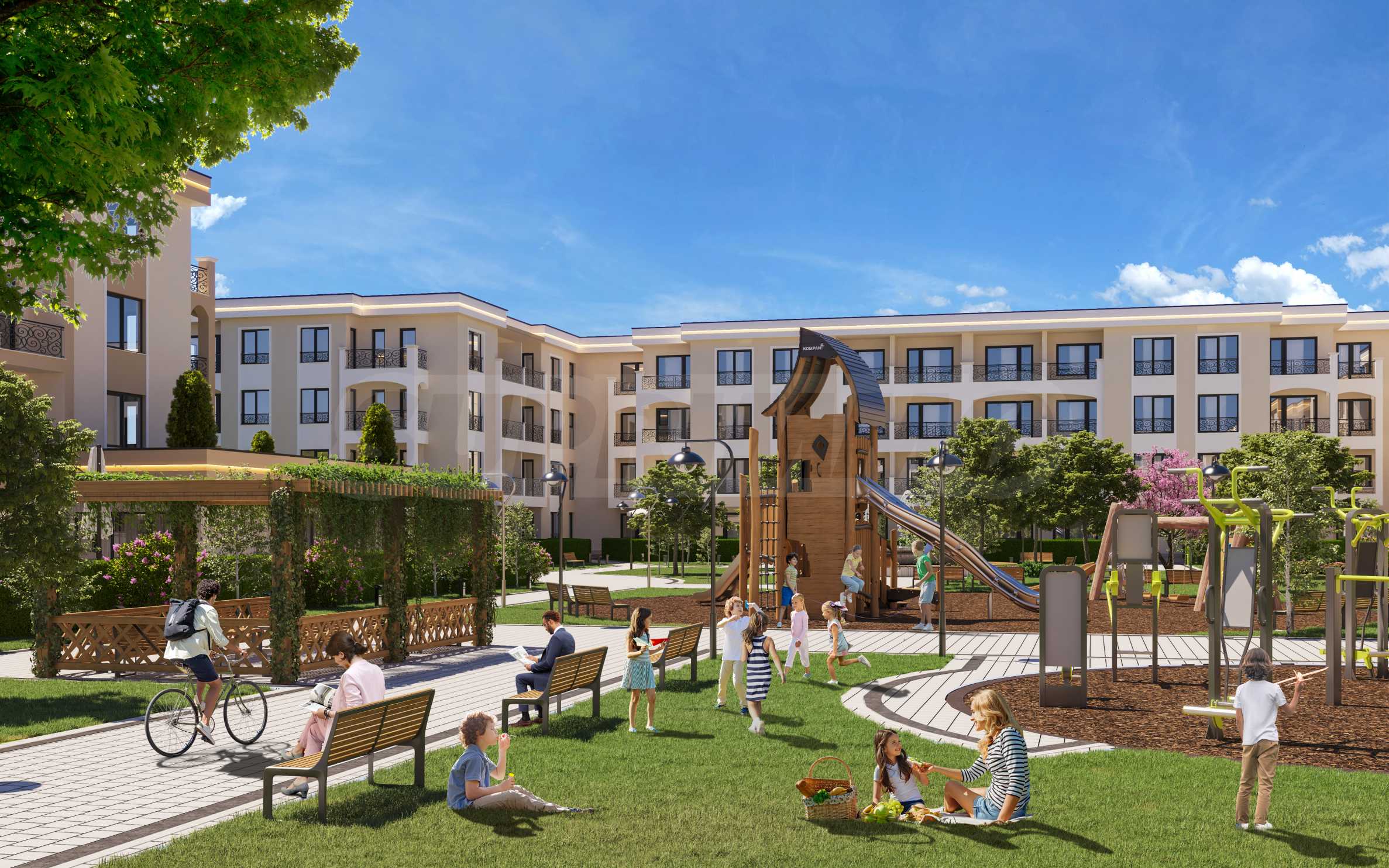 Комплексът е уникално място за живеене, където се сливат съвременната урбанна естетика и природната красота. От момента, в който стъпите в комплекса, ще се почувствате като в светъл и спокоен оазис, далеч от градската суета. Създаден е с мисъл за семейно благополучие и комфорт. Това доказва богатата инфраструктура, която включва детски площадки, спортни съоръжения и места за социални събирания.