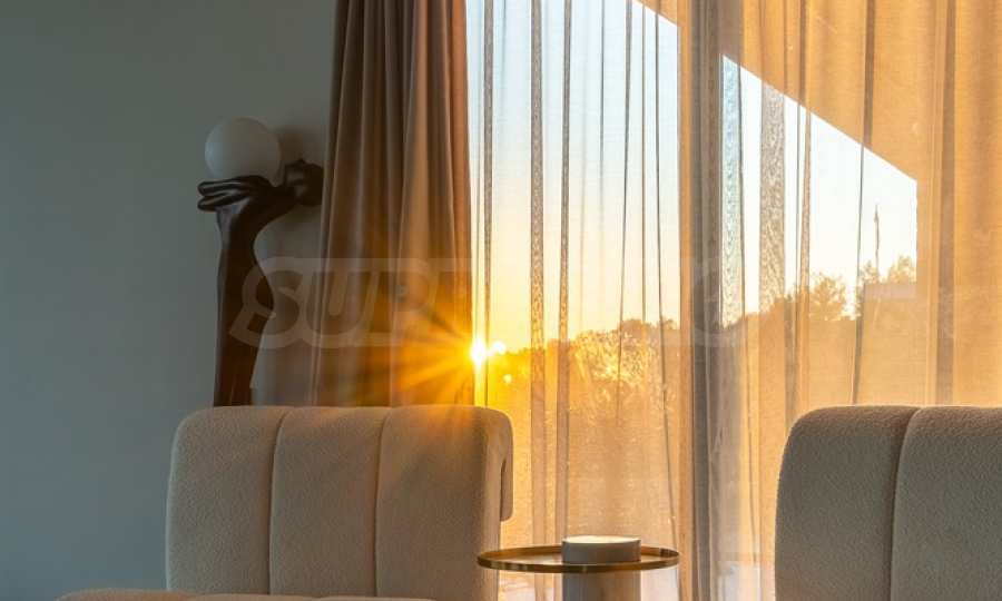 Чисти линии, минималистичен дизайн и онези малки детайли, които казват „Тук се живее добре“. Вилата е напълно обзаведена – от печката за вашите кулинарни шедьоври до телевизора (който вероятно няма да пуснете, защото гледката навън е по-интересна).