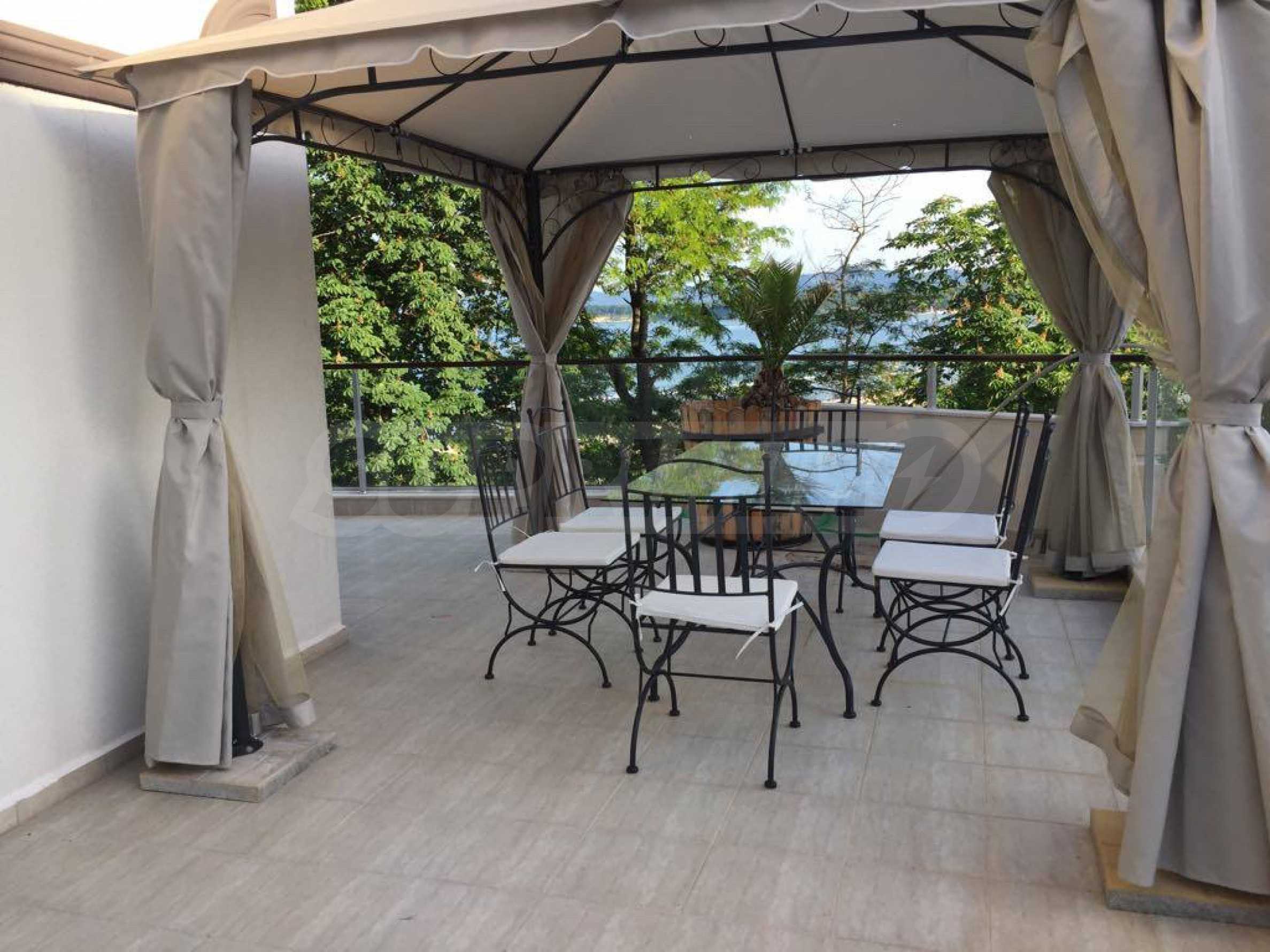 Апартаментът от 107.53 кв.м се намира на 2-ри етаж и има обширна тераса с гледка към морето. Продава се с мебели и техника, готов за ползване.