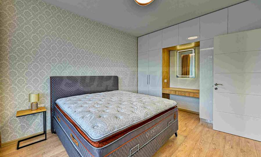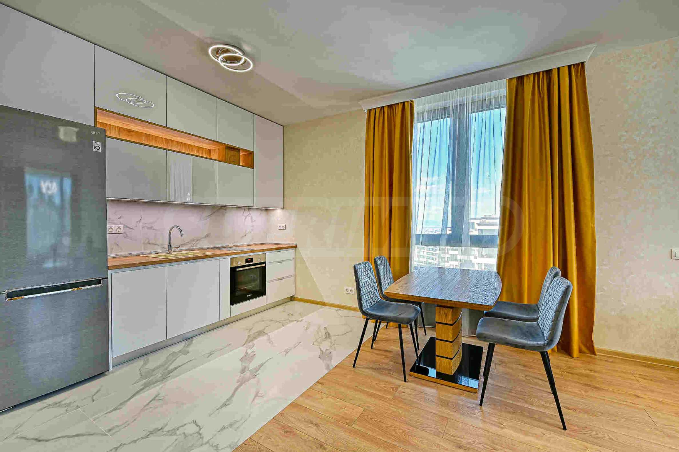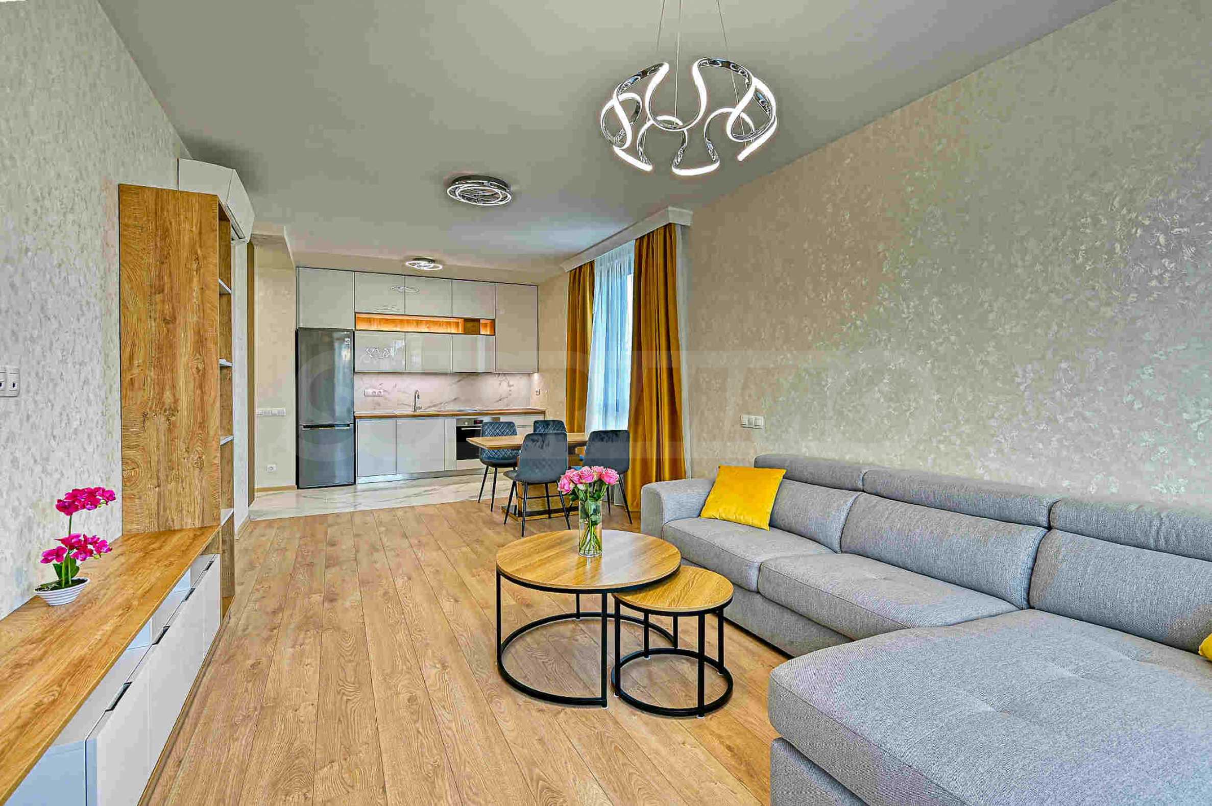 Апартаментът е напълно обзаведен с функционални мебели и висококачествено оборудване, което го прави готов за нанасяне. Разположен е в нова сграда от висок клас с отлично поддържани и луксозно завършени общи части.