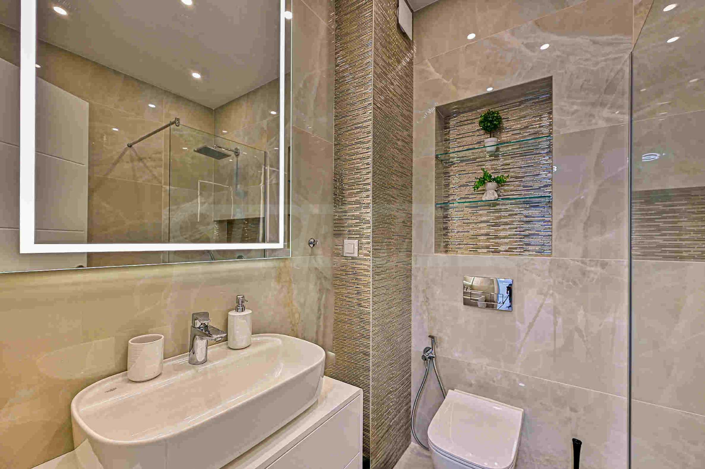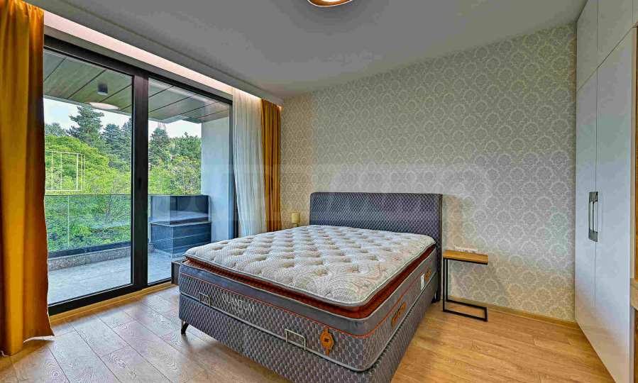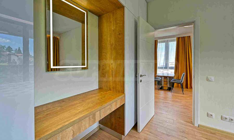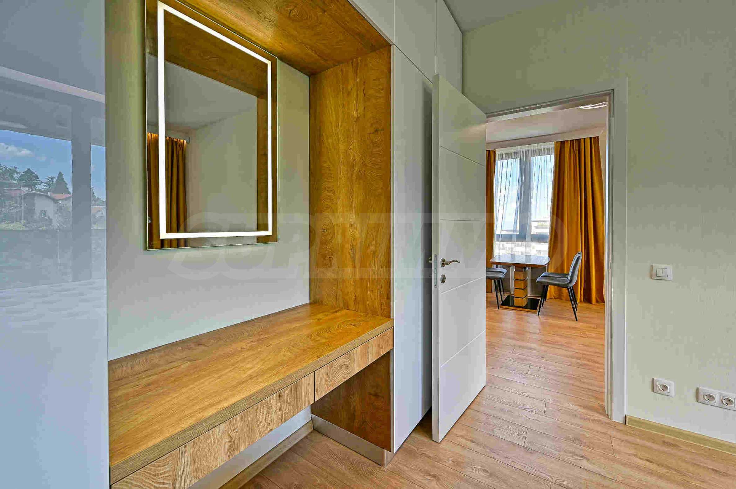 Апартаментът е напълно обзаведен с функционални мебели и висококачествено оборудване, което го прави готов за нанасяне. Разположен е в нова сграда от висок клас с отлично поддържани и луксозно завършени общи части.