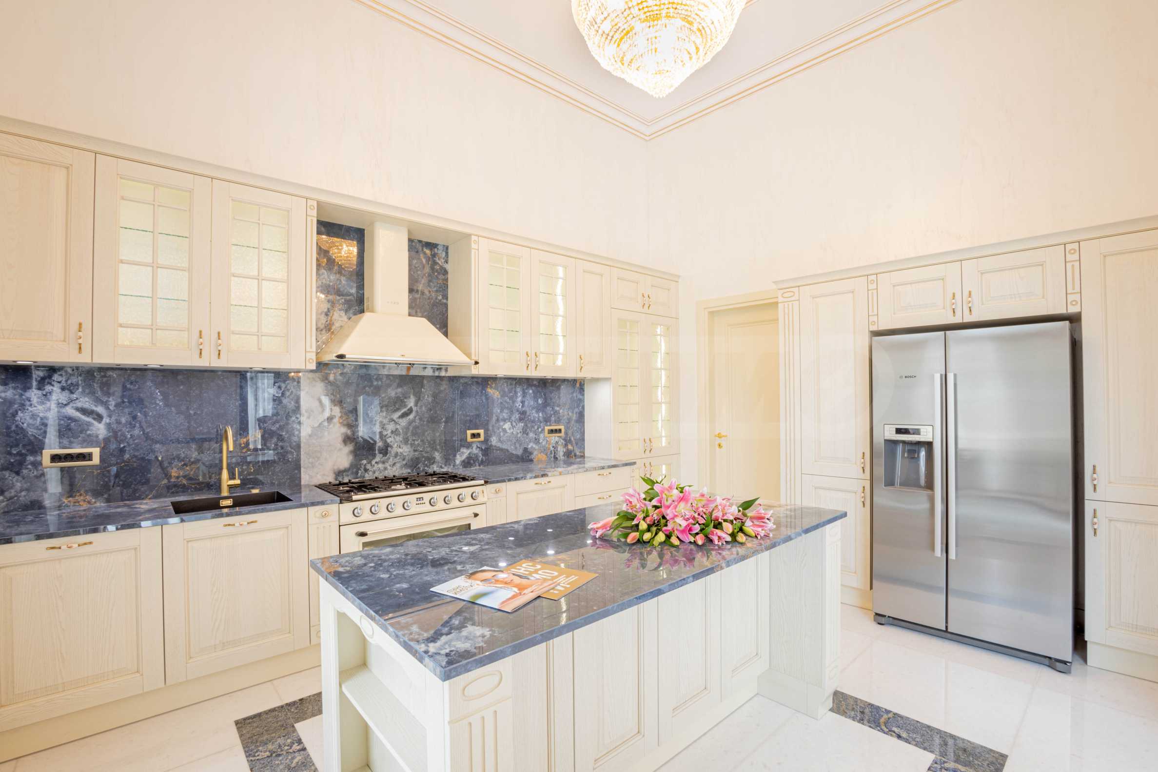 • вградени ел. уреди: фурна Smeg, газови котлони, абсорбатор Smeg, миялна Bosh, двоен хладилник с фризер миялна Bosh