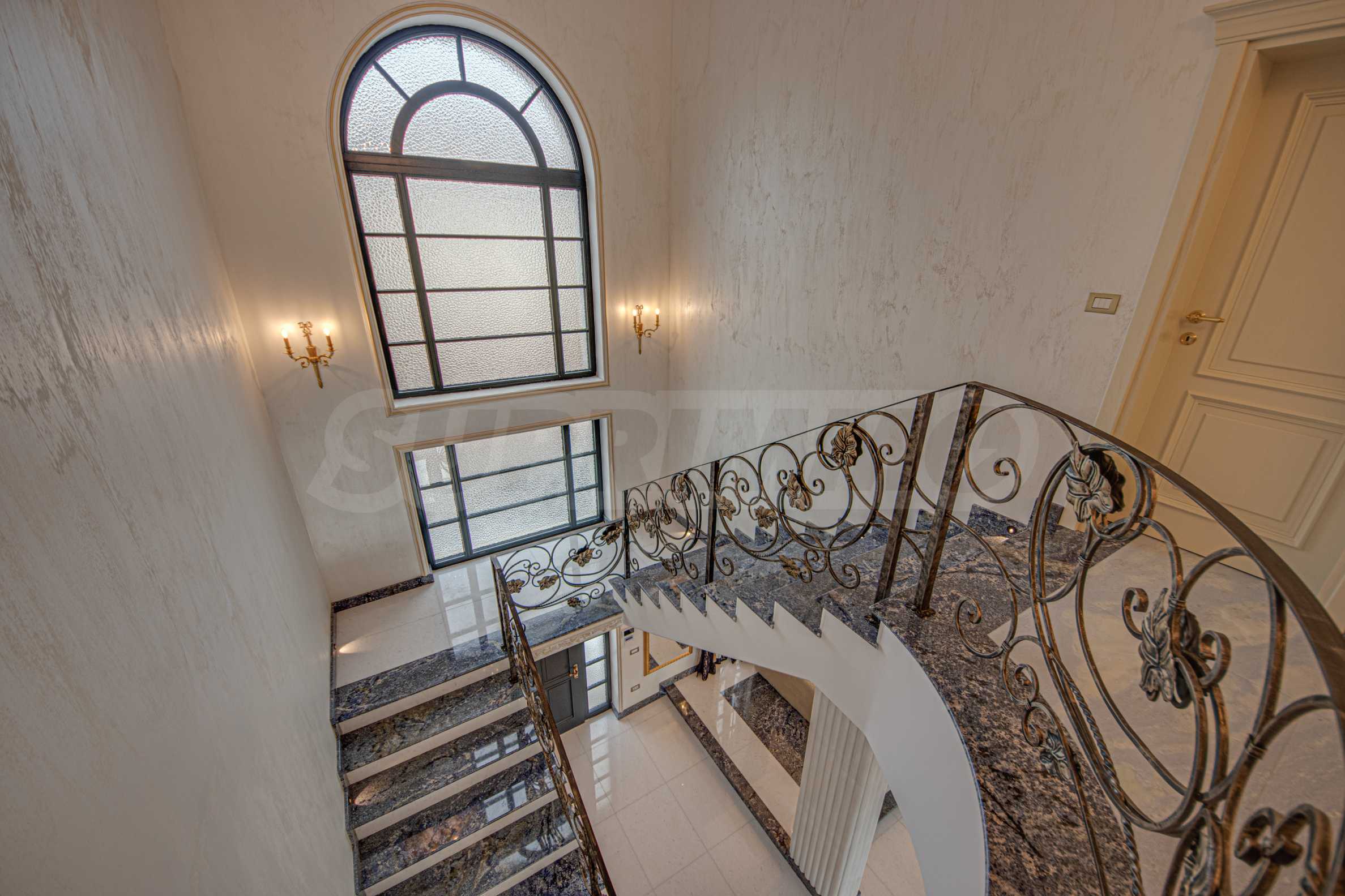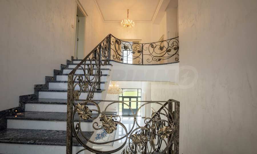 • вътрешно стълбище със син мрамор и парапет от ковано желязо