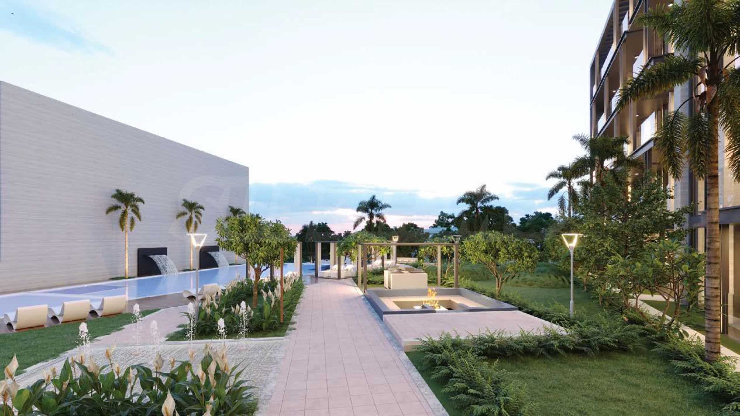 Удобствата в комплекса включват джакузи, басейн и зони за почивка и около него, детска площадка на открито, подови фонтани, фитнес център, електрически зарядни станции, кино на открито, мини голф, покривна тераса, зони за барбекю.