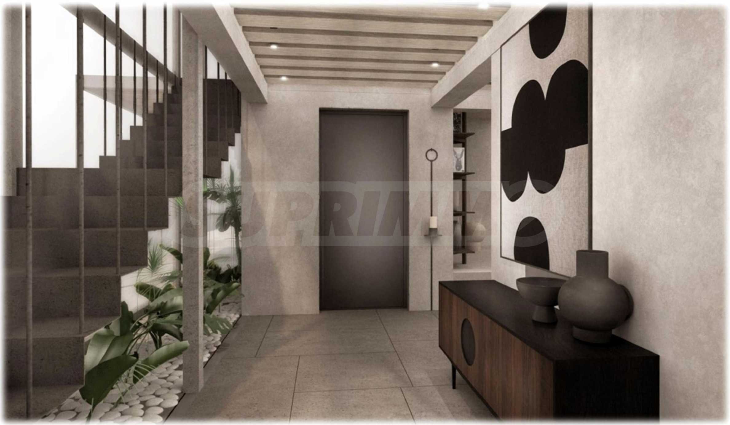 Проектирахме просторен вътрешен двор с външно барбекю за да можете да се насладите на залезите по време на вашаите вечери или просто пиейки чаша вино, или коктейл гледайки как сленцето се потапя във водите на Егейско море.
