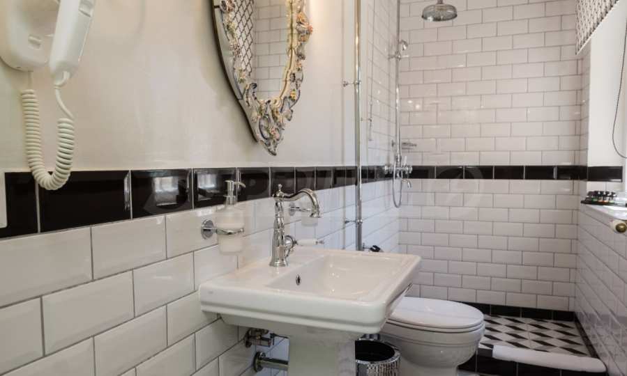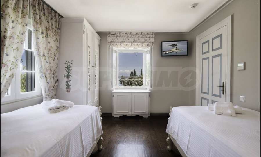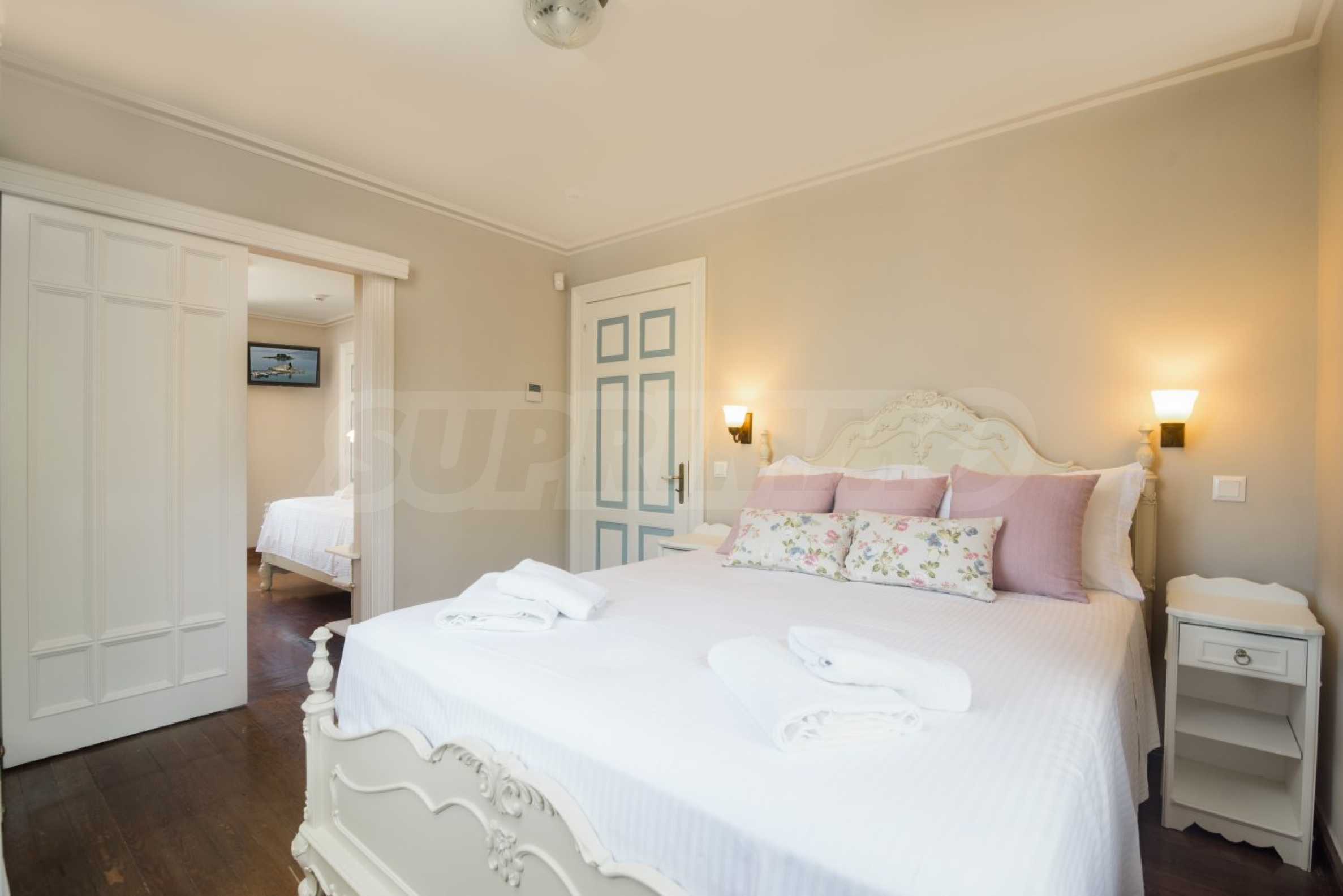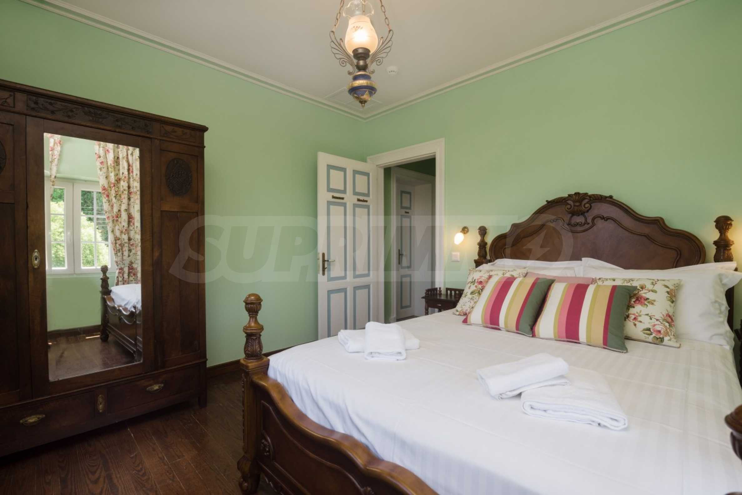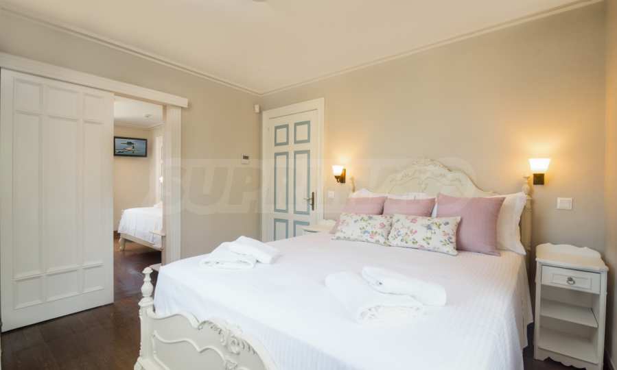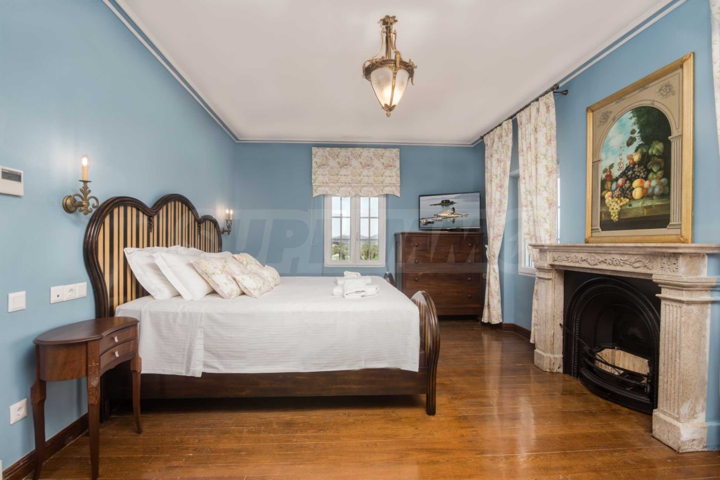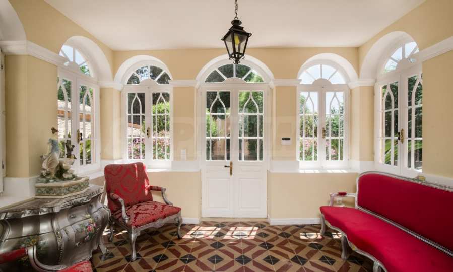 Привлекателността на вилата се простира до нейните детайли, улавяйки същността на изтънчеността във всеки аспект. Дървена врата от 19-ти век със сложна метална конструкция украсява главния вход, канейки ви в свят на несравнима красота. Интериорно дървено стълбище, стилизирано в английската традиция, свързва грациозно триетажните етажи, въплъщавайки елегантност и финес на всяка крачка.