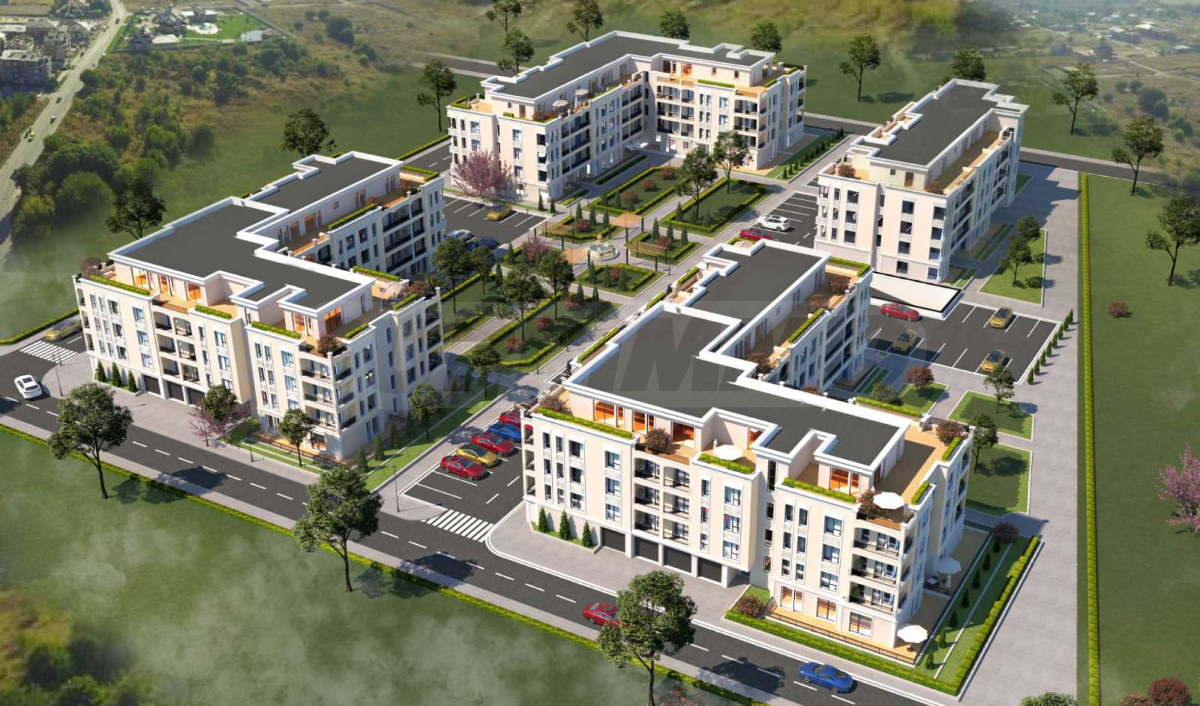 Комплексът се състои от четири самостоятелни сгради от по 4 жилищни етажа, открояващи се с елегантната си визия. Разположен е на площ от 13 000 кв.м и предлага приятна и спокойна атмосфера за живеене, далеч от трафика на града и с удобен достъп до два основни булеварда. Сградите са отлично позиционирани, оформят големи дворни площи и зони за разходка, а паркозоната е практично разпределена.