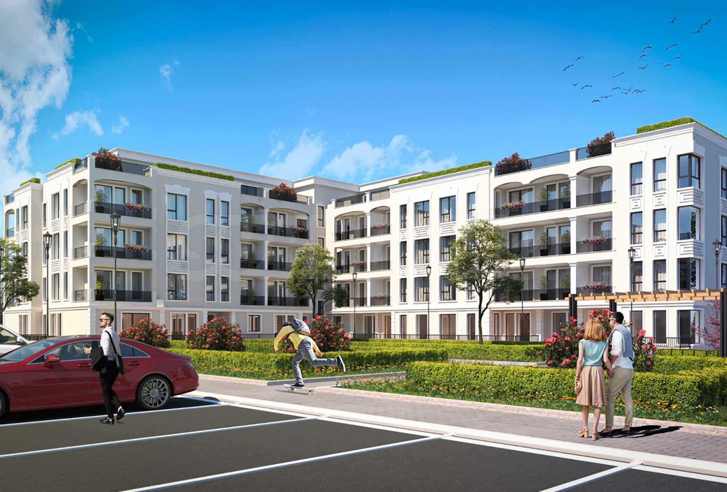 Предлагат се двустайни, тристайни и четиристайни апартаменти. Имотите притежават прекрасни панорамни тераси и индивидуални дворни пространства, които създават усещането и комфорта на еднофамилна къща.