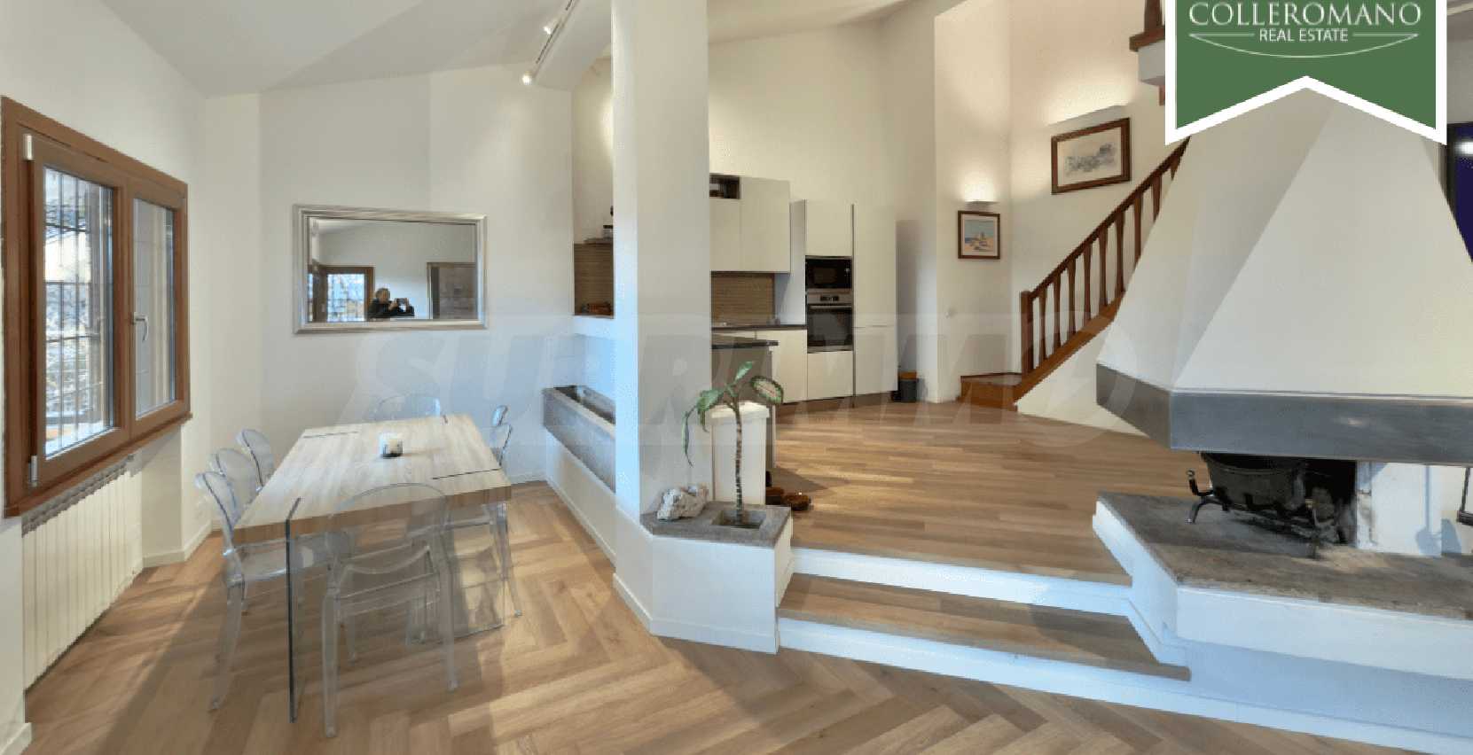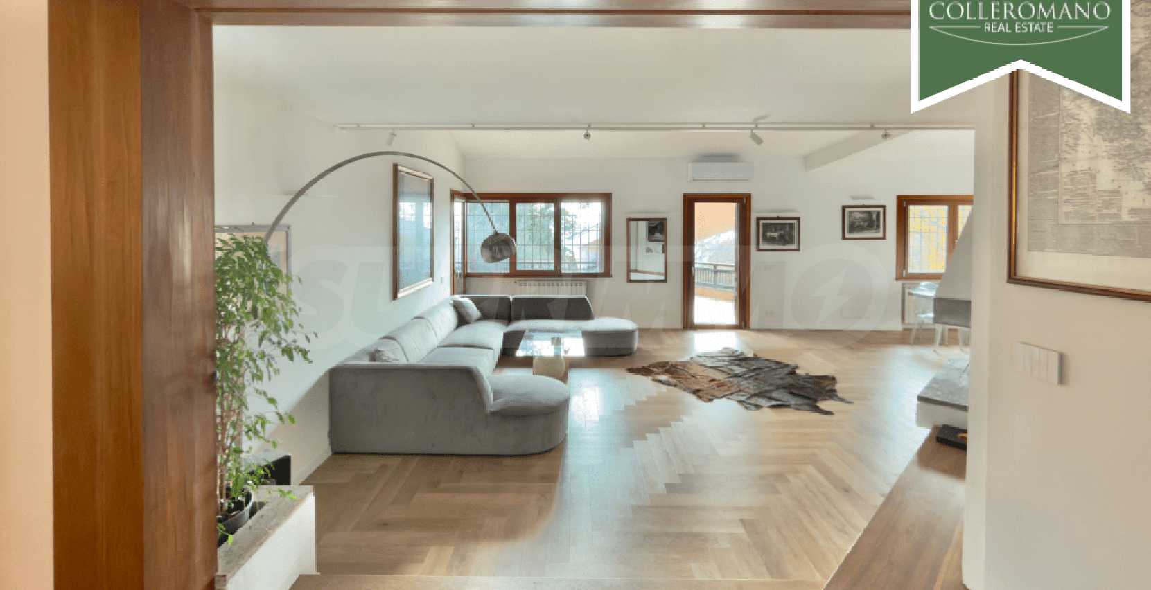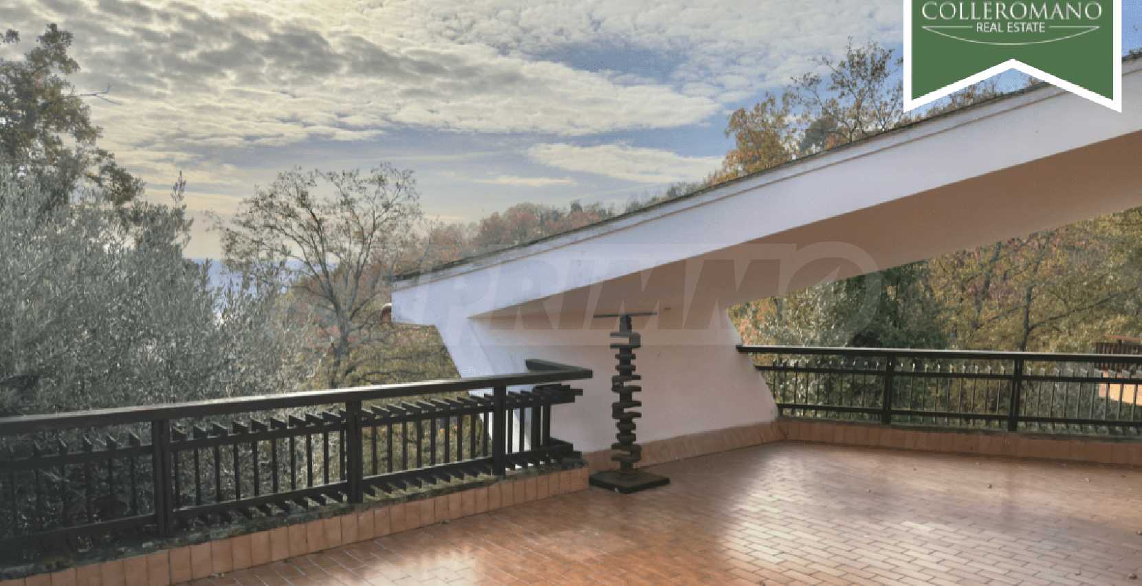В рамките на областта, в доминираща позиция над долината на Тибър, ние предлагаме вила от 450 кв.м за продажба, която може да бъде разделена на две независими единици.