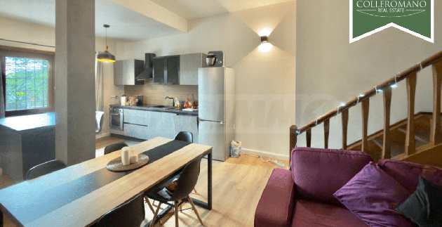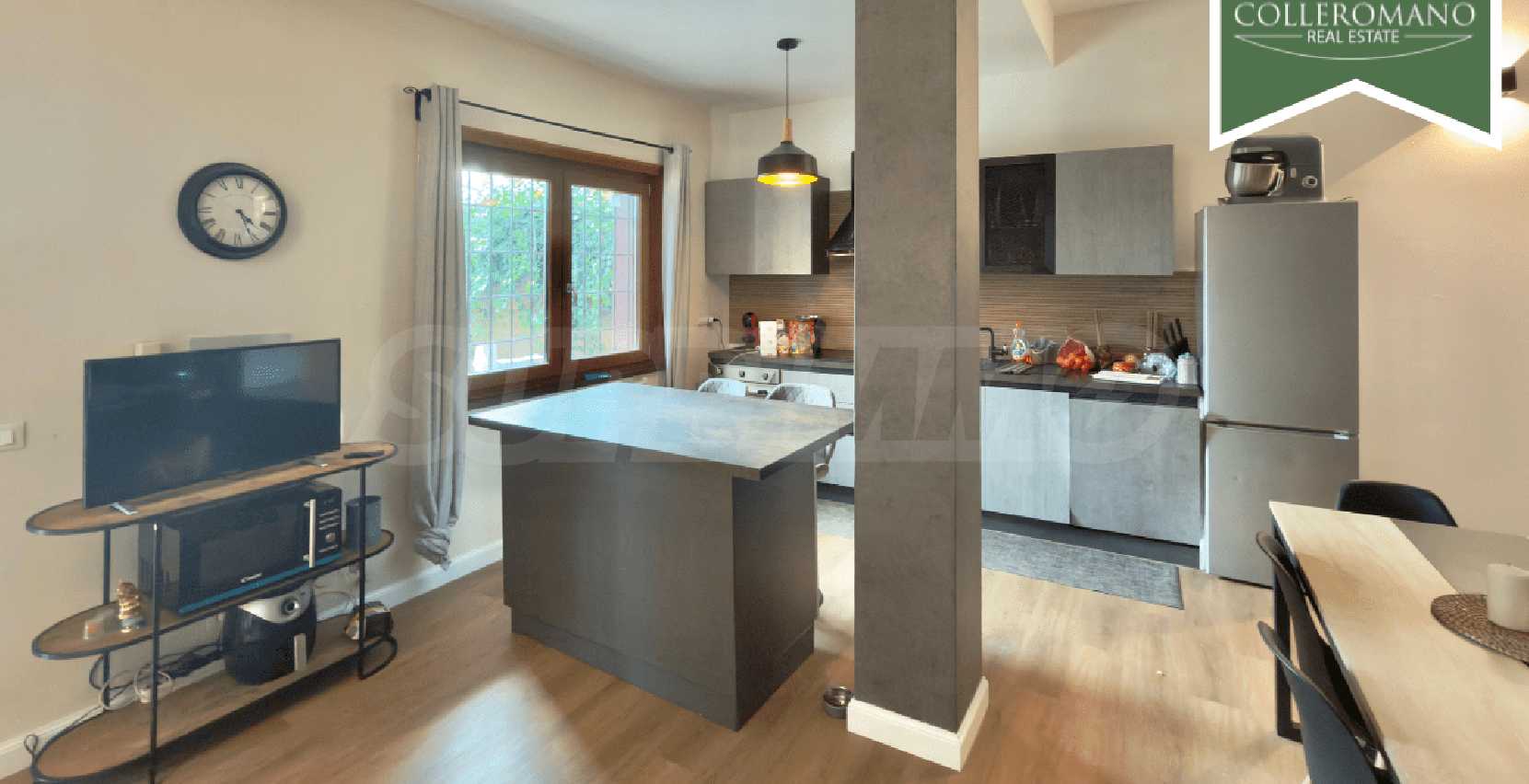 Имотът е изцяло оборудван с нова техника с решетки и комарници и е разпределен на два етажа плюс таванско помещение.