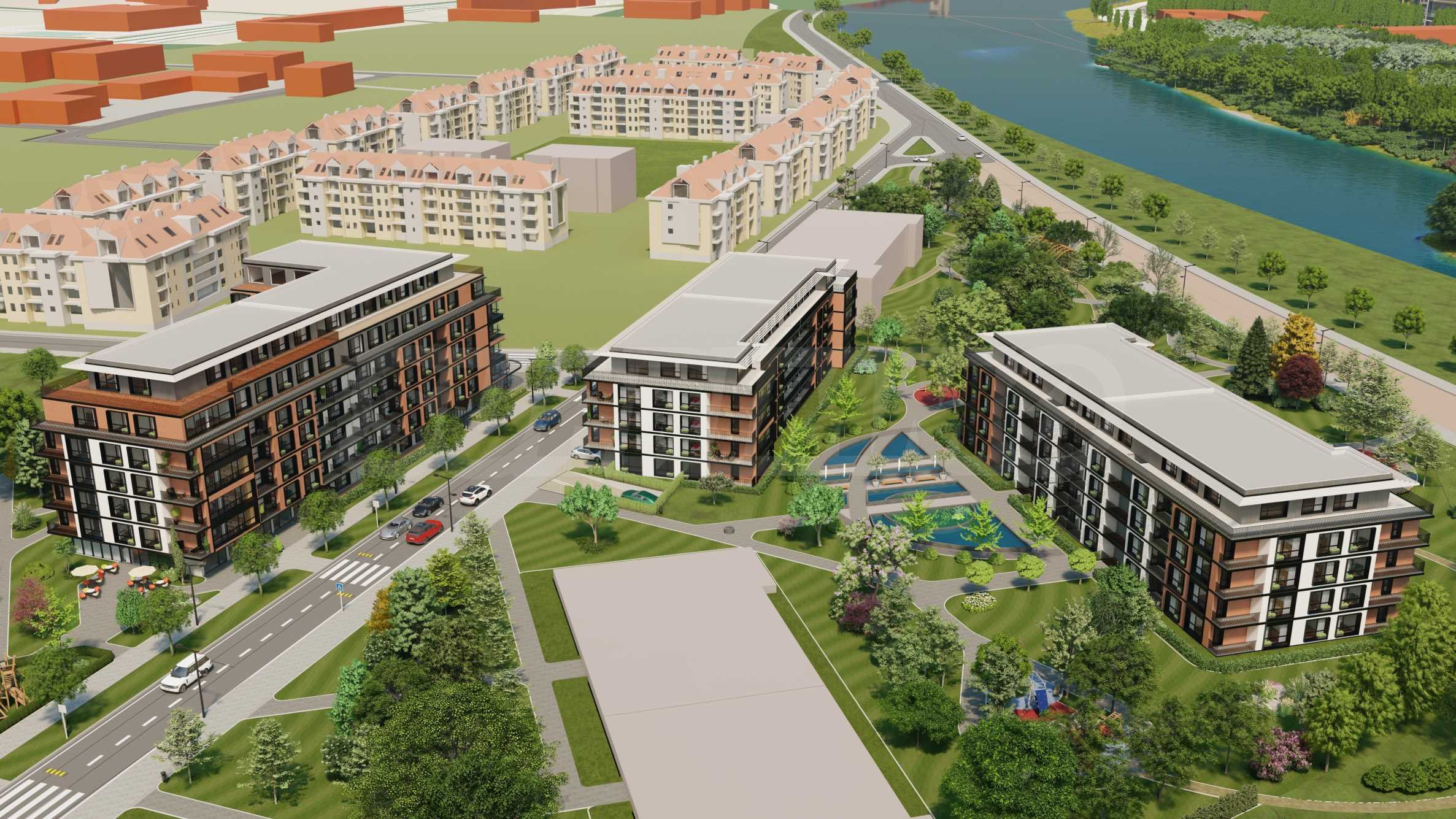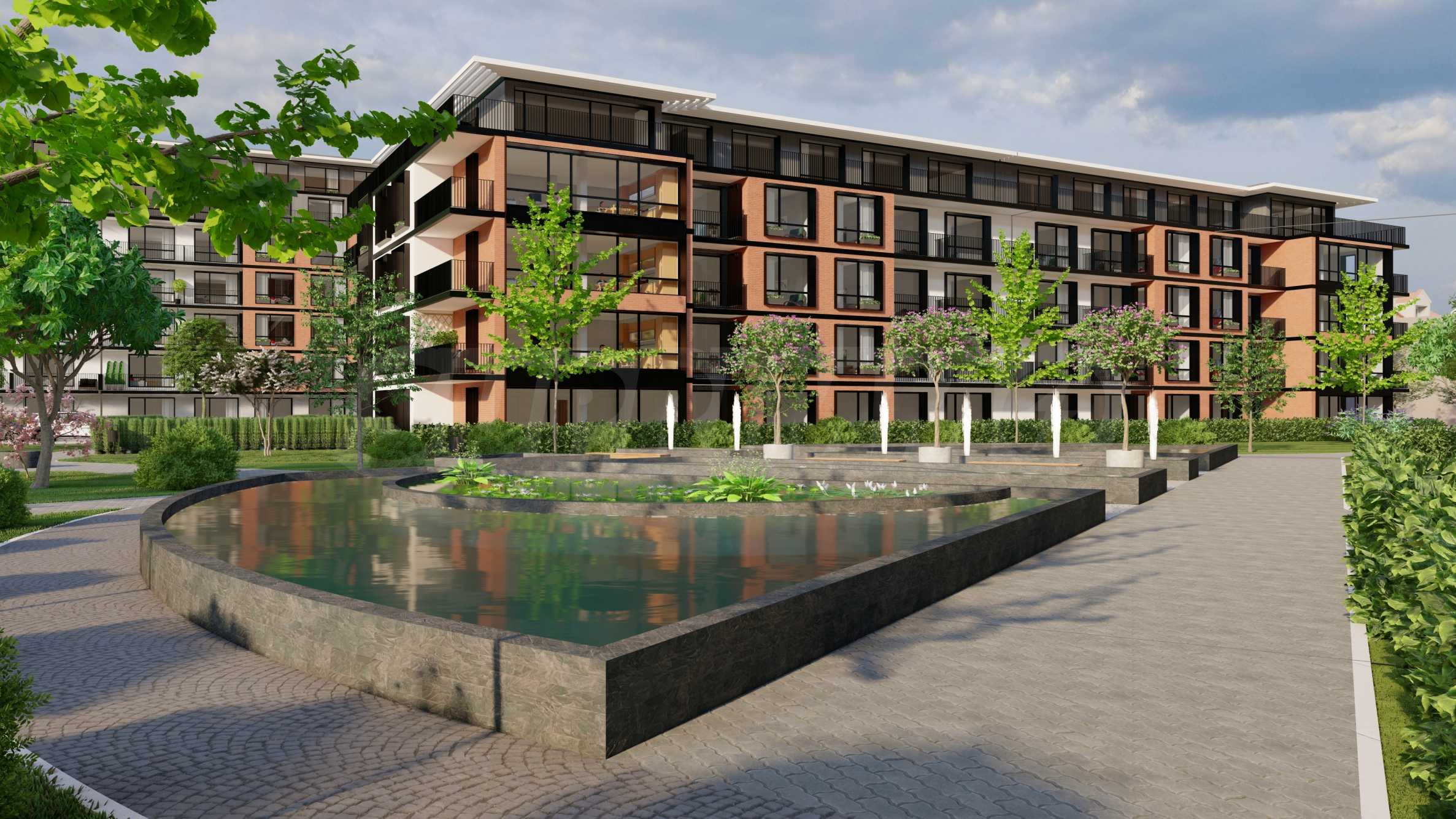 Първият проект се състои от 2 сгради и четири жилищни секции - нискоетажно застрояване с кота корниз 10 м. Жилищните секции са типизирани - огледални и повтаряеми. Предлага двустайни, тристайни, четиристайни апартаменти, гаражни клетки и паркоместа, реализирани изцяло в подземен гараж, паркова среда с два детски къта - 5500 кв.м, фитнес на открито и водно огледало.