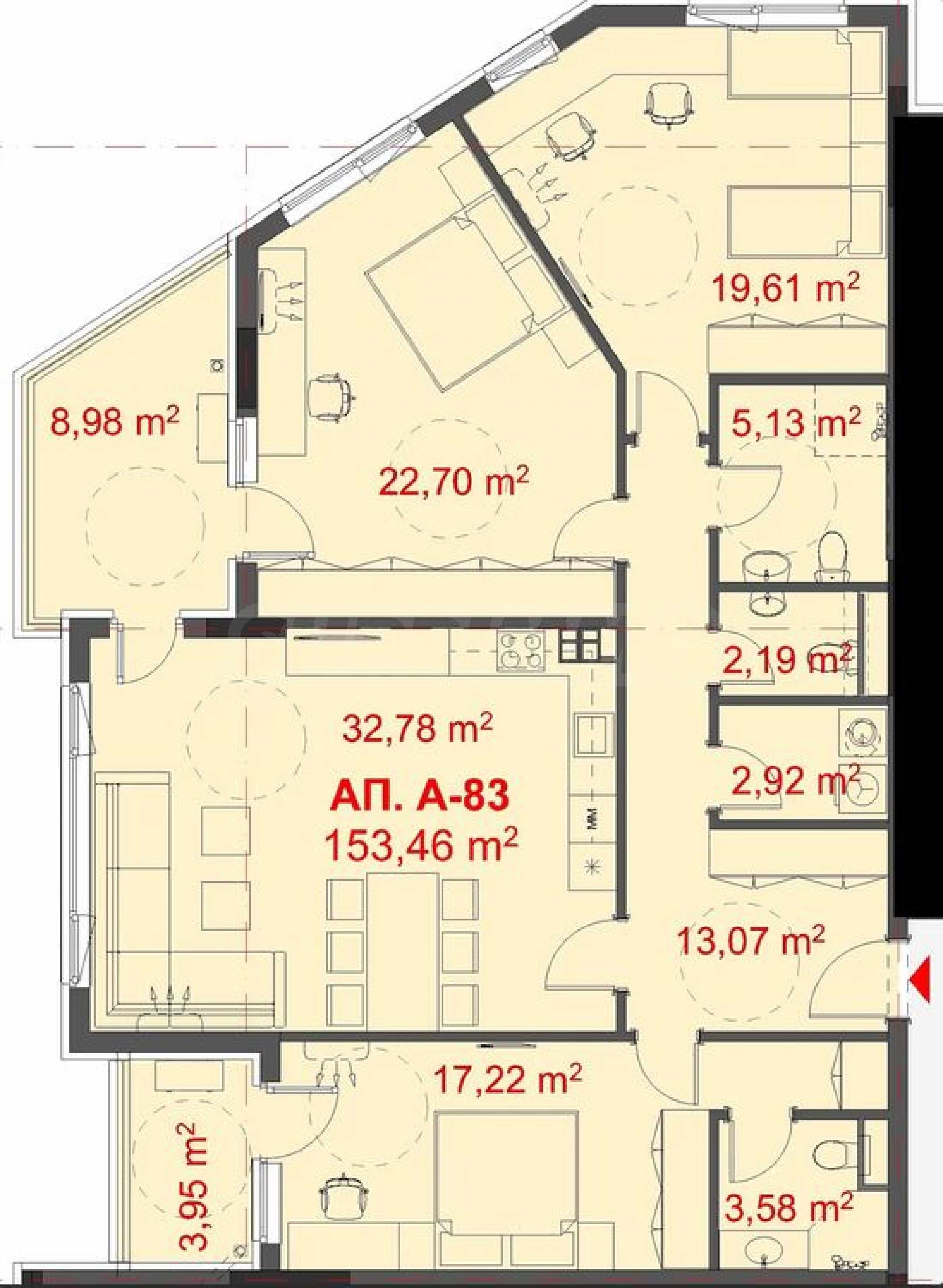 Представяме четиристаен апартамент от 179,68 кв.м за продажба, в най-новата сграда №8 на ултрамодерния комплекс в Бургас.
