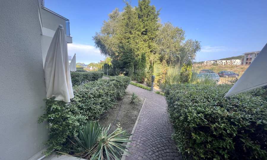 Имотът е част от комплекс с удобства, тризвезден съвременен ризорт с лоби бар и ресторант, басейн, детски басейн и площадка, градина и др. Таксата за поддръжка за жилището е 10.80 евро на кв.м на година.