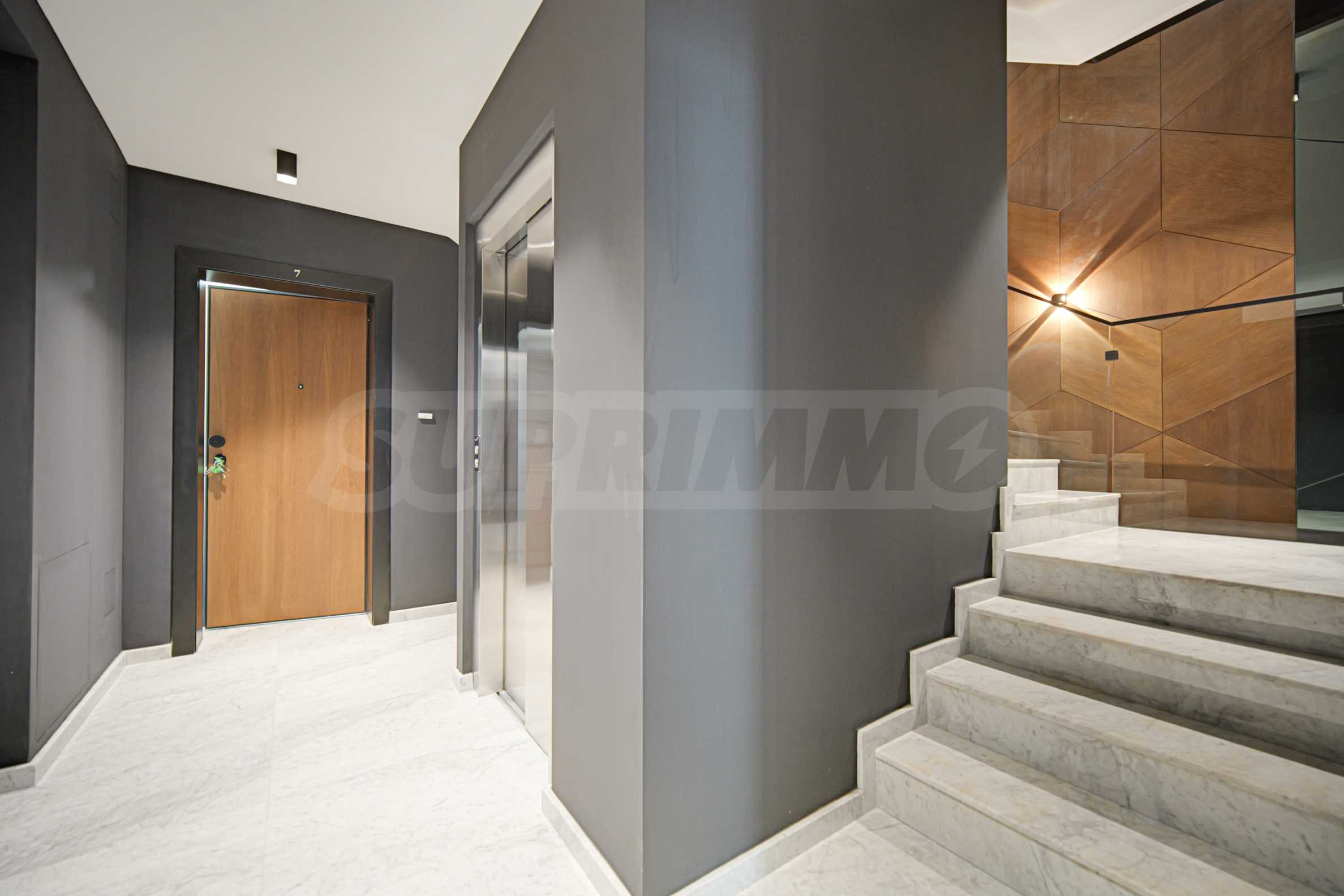 Сградата е изпълнена с висок клас материали, красива фасада от естествен камък и с представителни общи части. Налични са апартаменти тип студио, двустаен, тристаен и premium тристаен мезонет. Всички жилища са чисто нови и луксозно обзаведени.