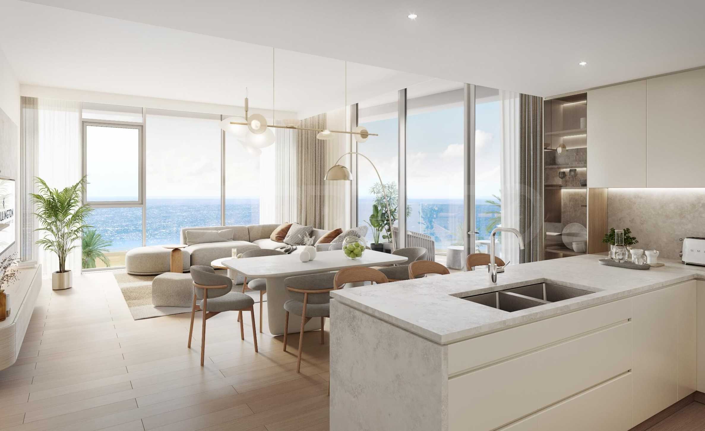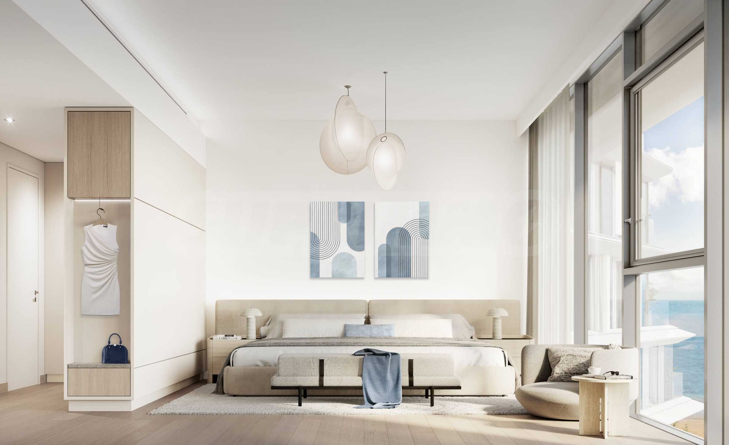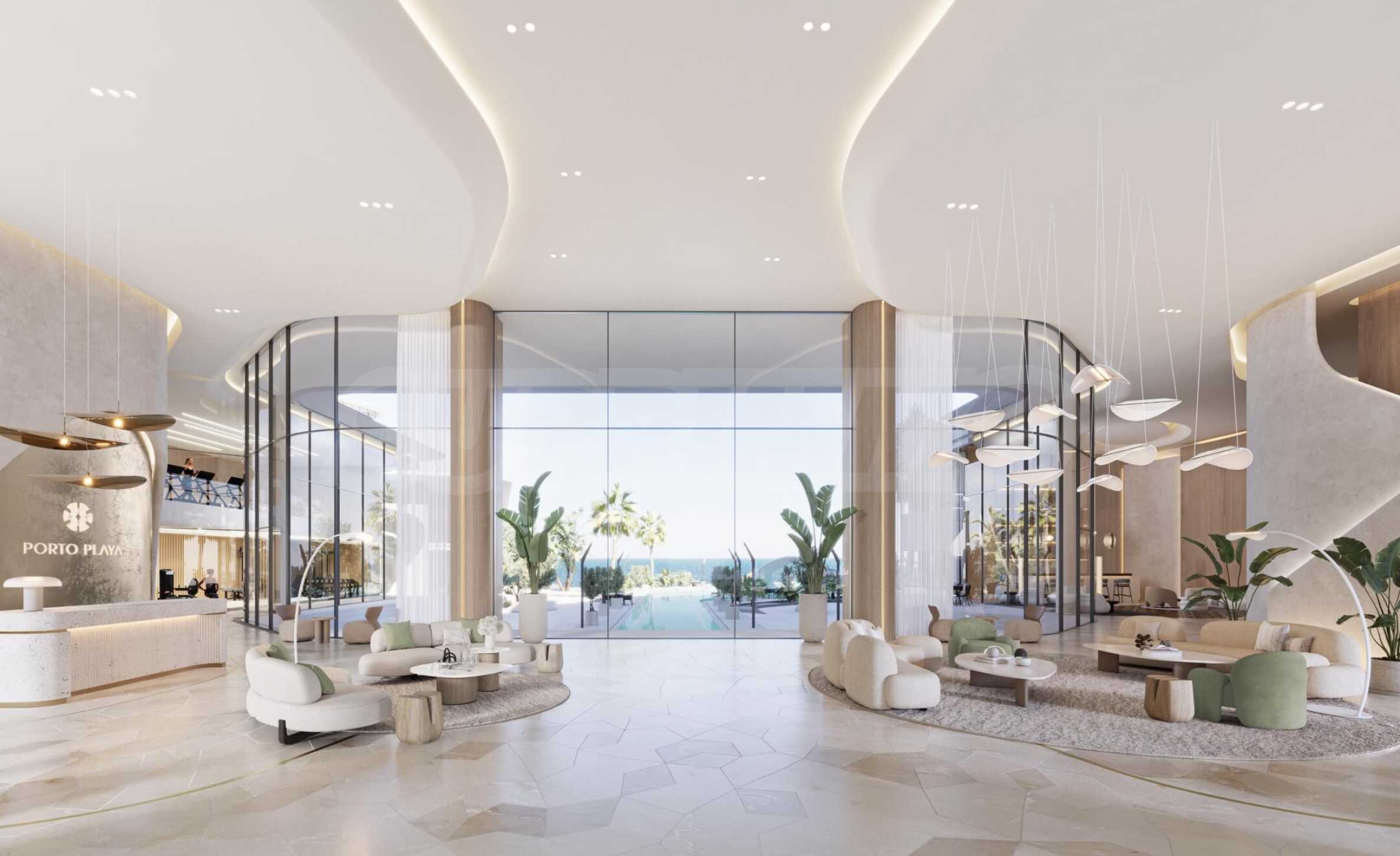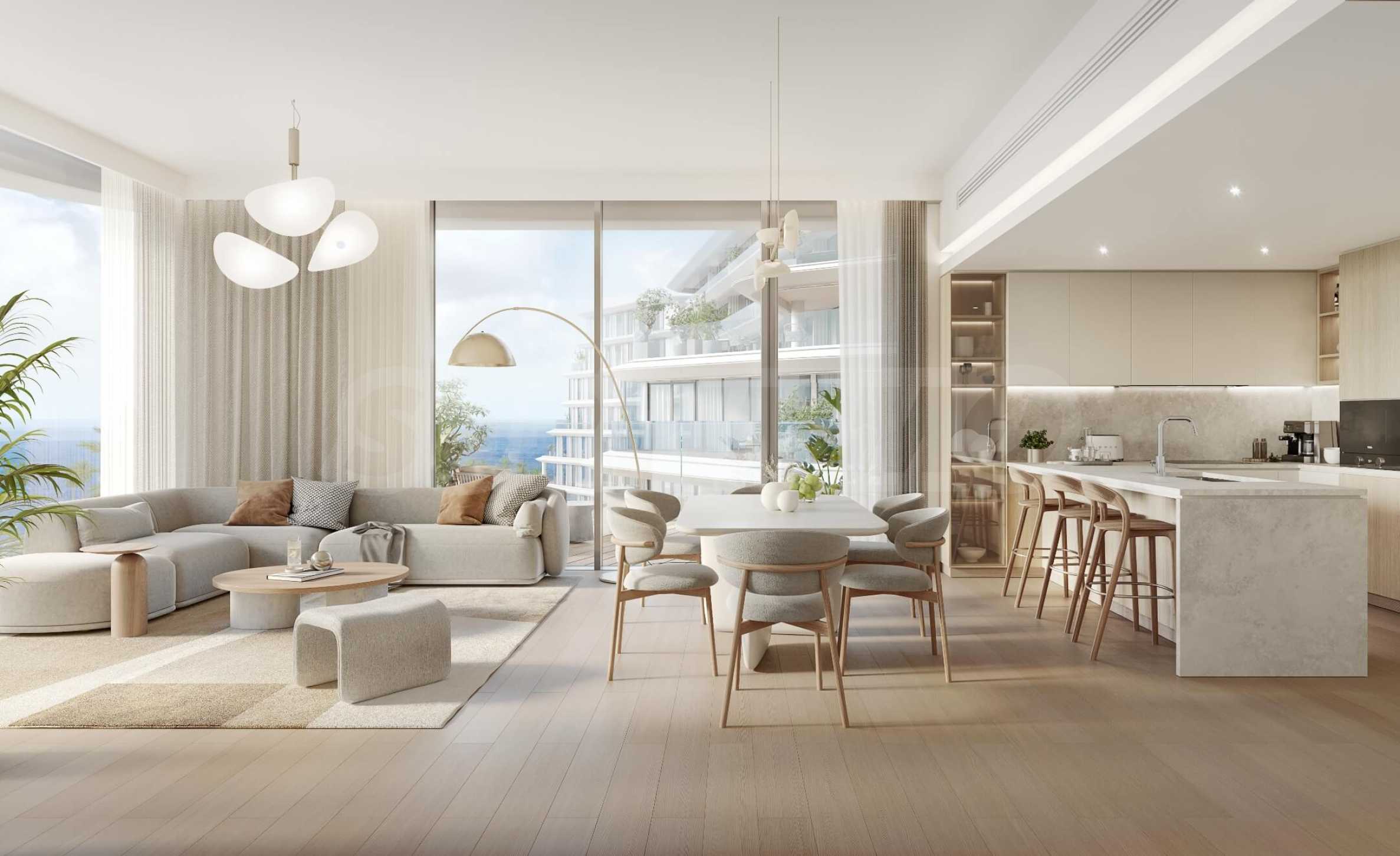 Проектът е точно това, което бихте очаквали от най-ексклузивните комплекси в света. Елегантността се среща с функционалността в оформлението на всяка единица, а внимателно проектираните пространства дават приоритет на комфорта и практичността. Интериорът е изпълнен в естествена светлина, подчертавайки меката цветова палитра и връзката с морето.