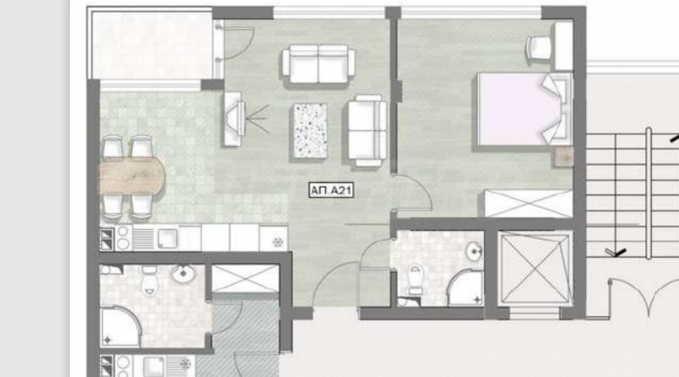 Имотът от 74.64 кв.м е разположен на 2-ри етаж от 6, с изложение изток/север. Предлага се "до ключ", без мебели. Има възможност и за обзавеждане.