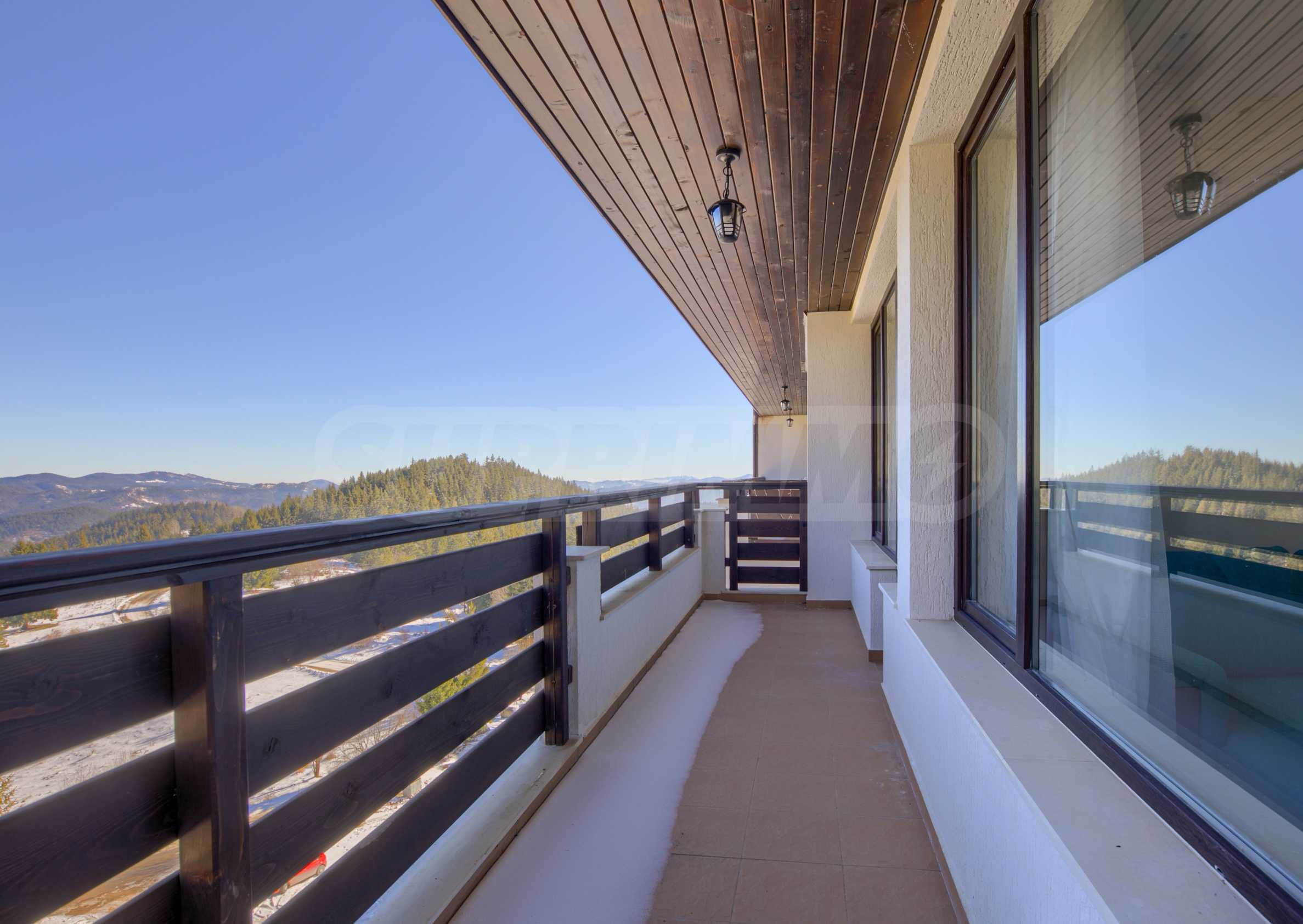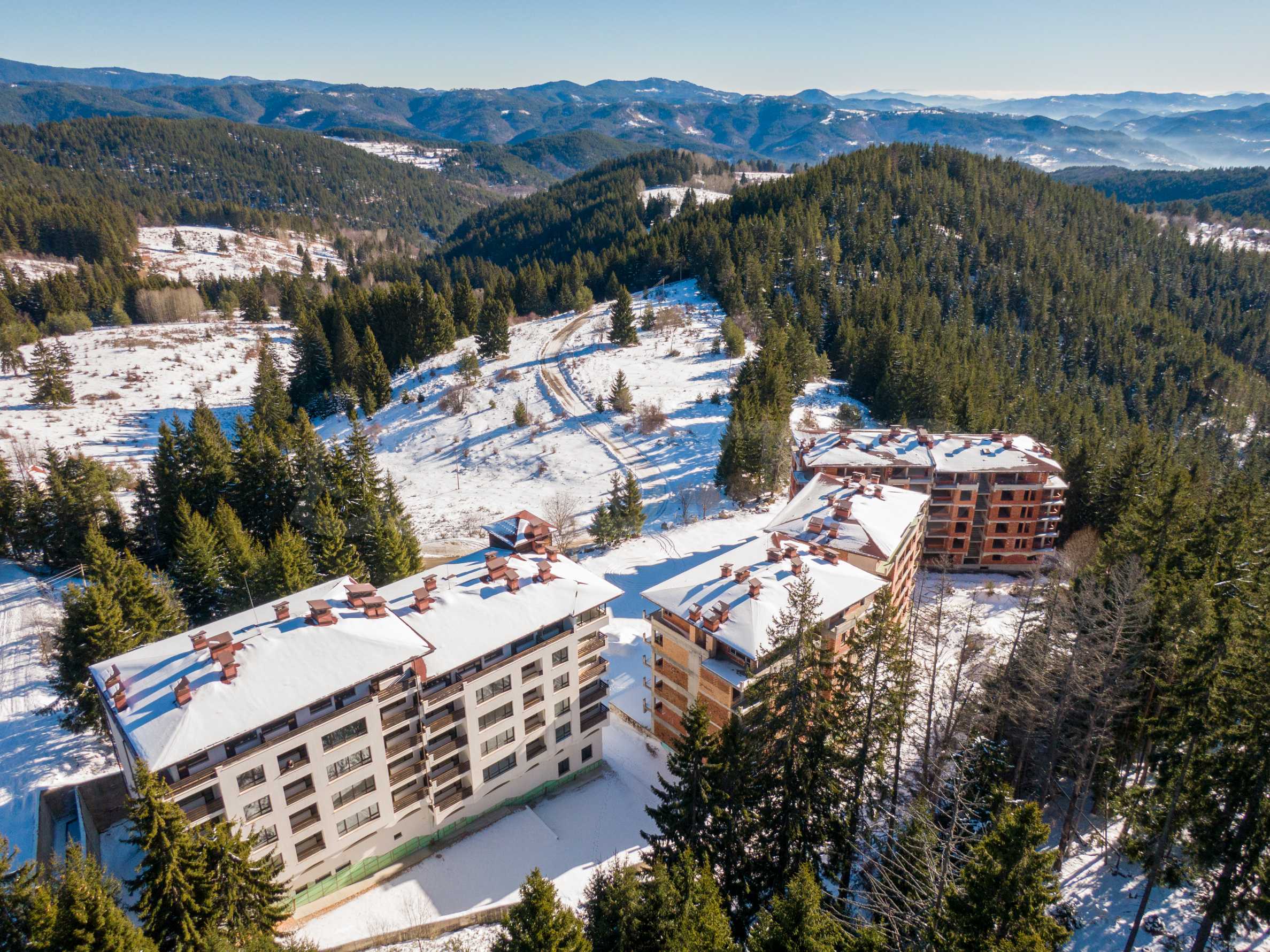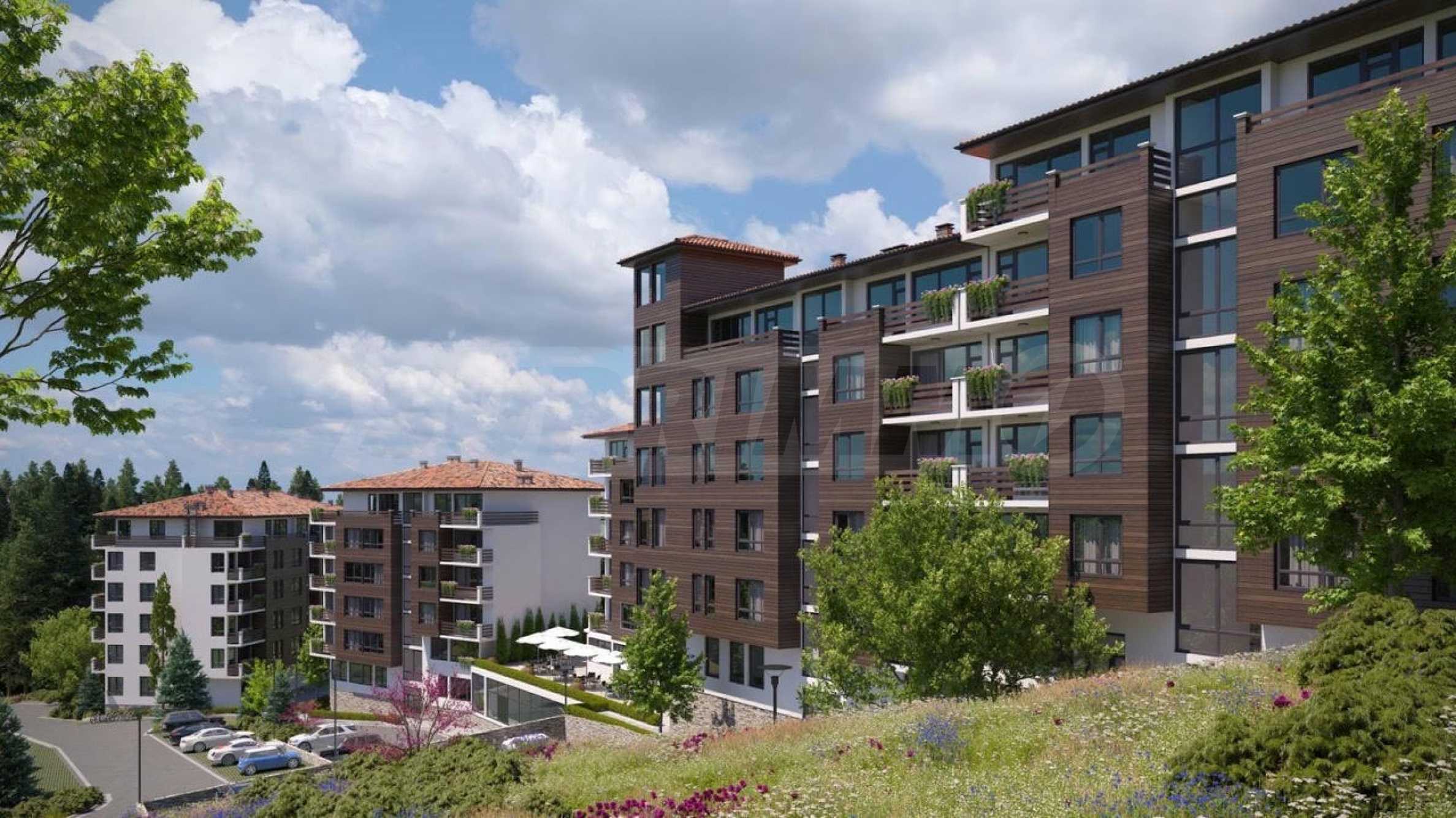 - Територията е с изобилие от зеленина и места за отдих за собствениците и техните гости. СПА центърът в хотелската част ще предложи релаксиращи преживявания, които укрепват организма и незабравима почивка в планината.