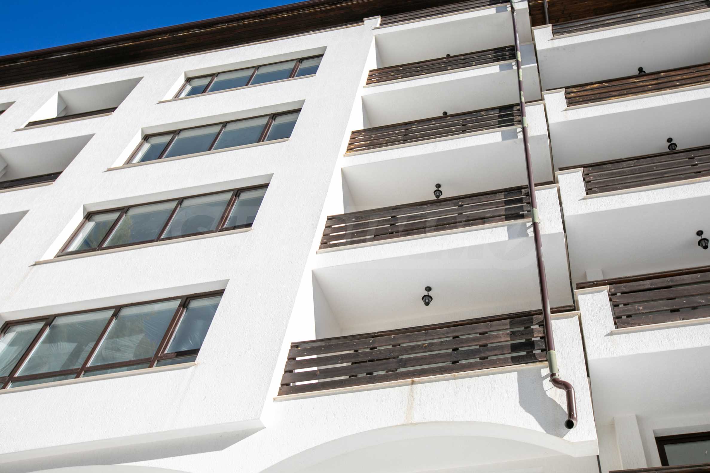 Сградите са в характерен за района архитектурен стил, с дървената обшивка по фасада и каменната облицовка в ниската част по сградите. Всеки вход е с асансьор и стилно завършени общи части. Имотите са в тъмна PVC дограма с високо топлоизолационно качество, в дървен тон в хармония с природата и в контраст с бялата фасада, покрита със силиконова структурна мазилка.