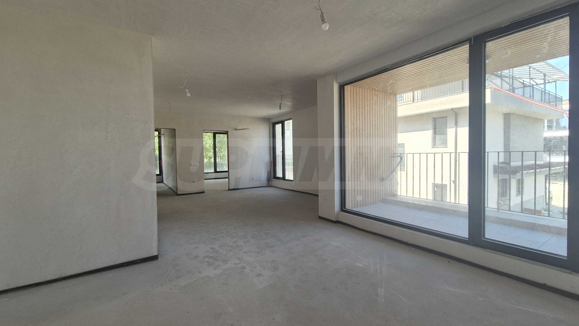 Апартаментът се предлага по БДС, с плуващи подови замазки върху слой от шумоизолация, които повишават комфорта и защитата от шум и алуминиева дограма, отговаряща на всички съвременни стандарти с панорамно остъкляване към планината и града.