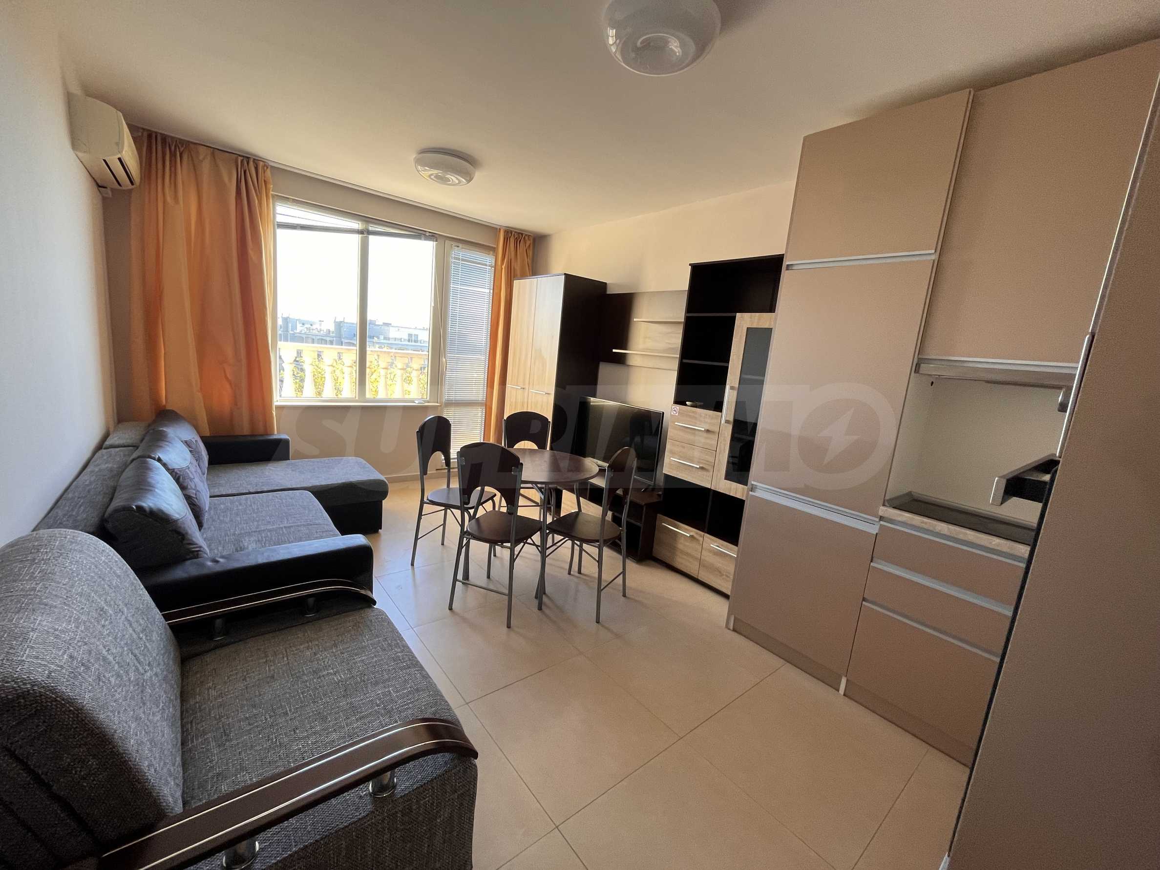 Представяме студио в прекрасен, морски комплекс на минути от плажа на Поморие, в спокоен район до Южен плаж, който предлага всички удобства за най-комфортния престой до морето.