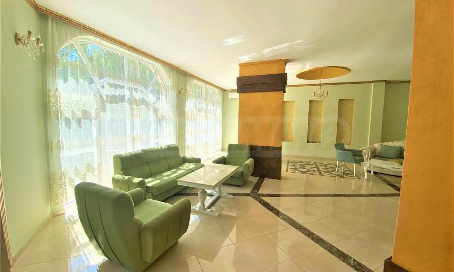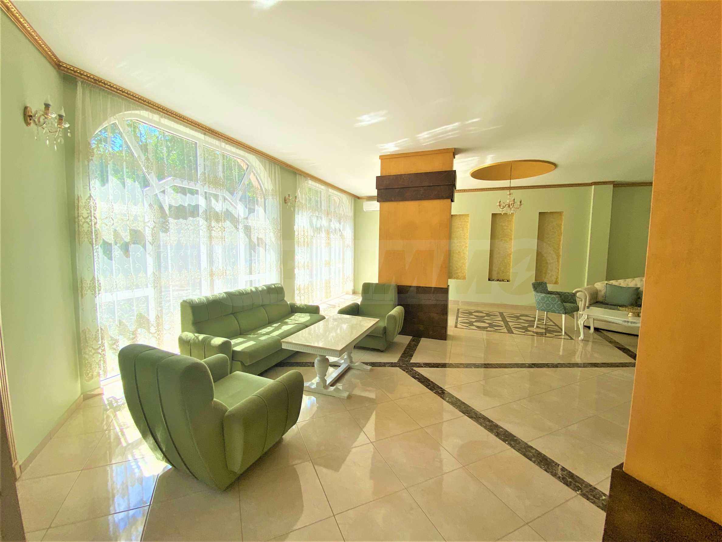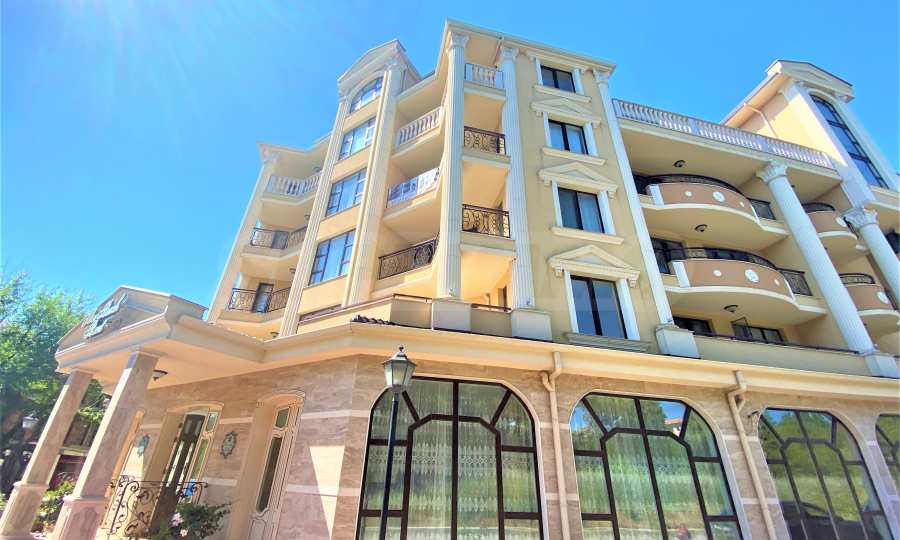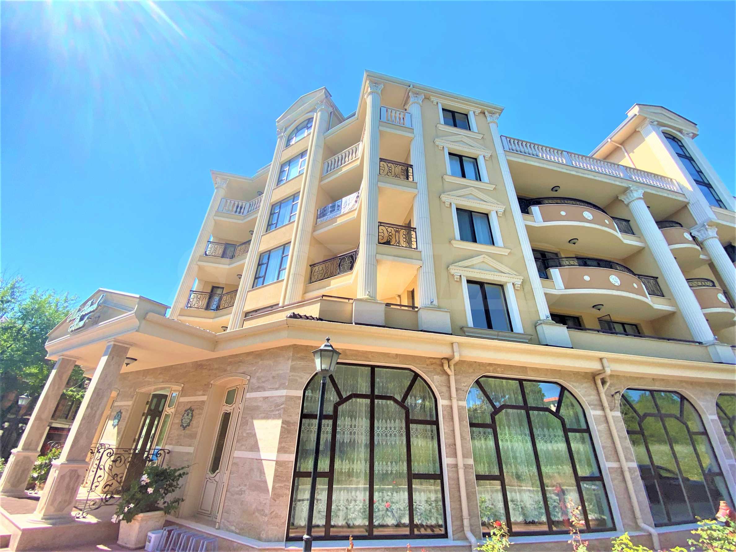 Сградата се откроява с елегантна архитектура, красив басейн и зона за релакс на територията.