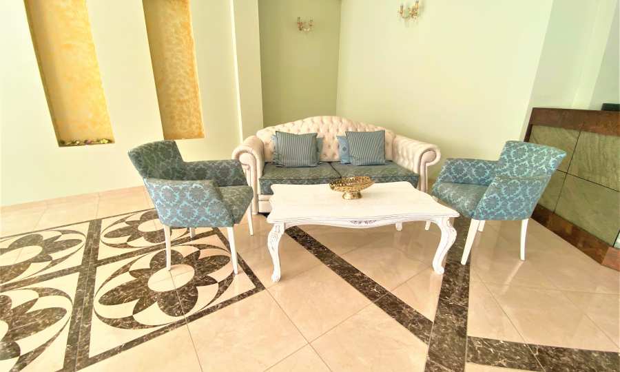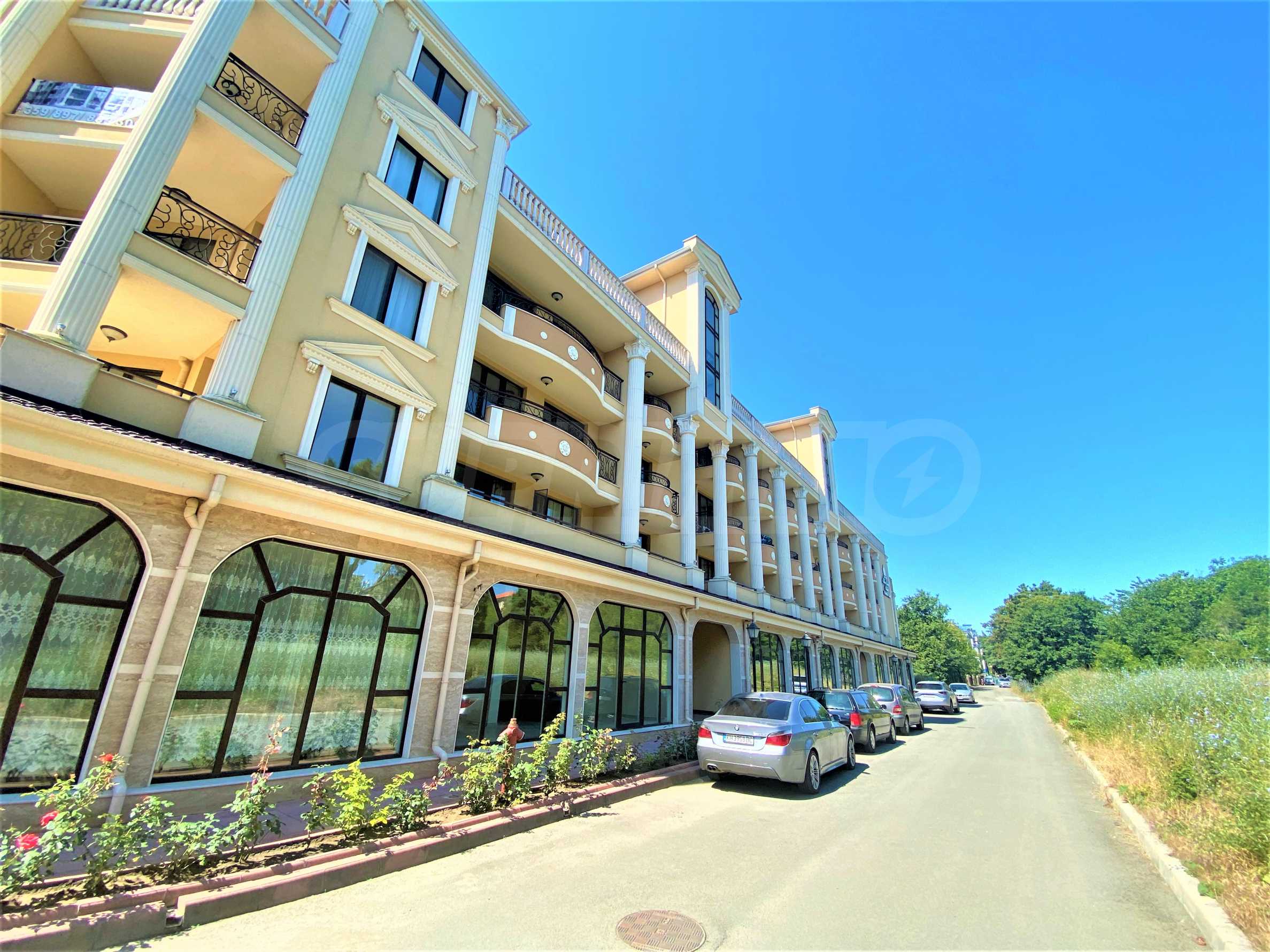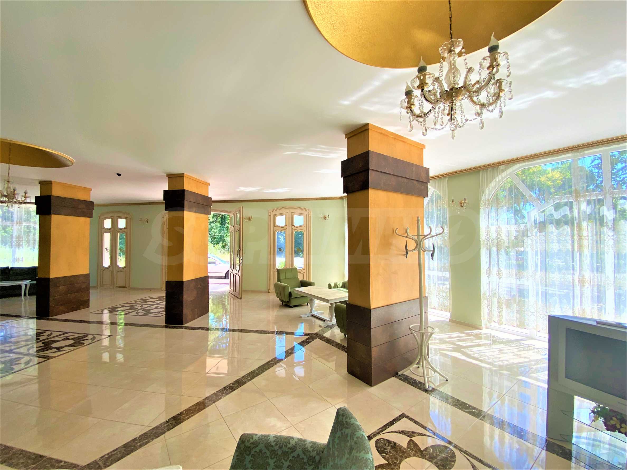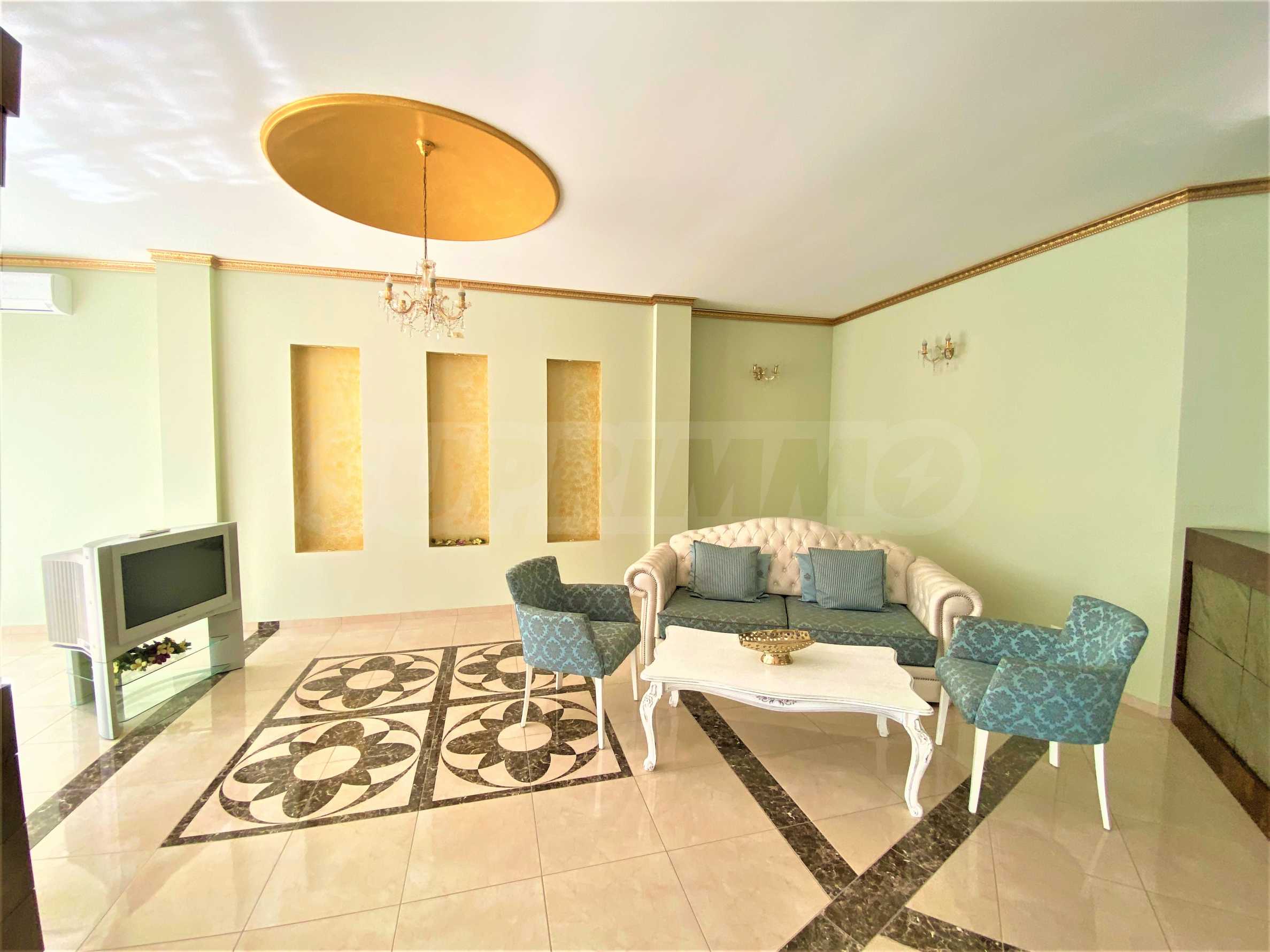 Сградата се откроява с елегантна архитектура, красив басейн и зона за релакс на територията.