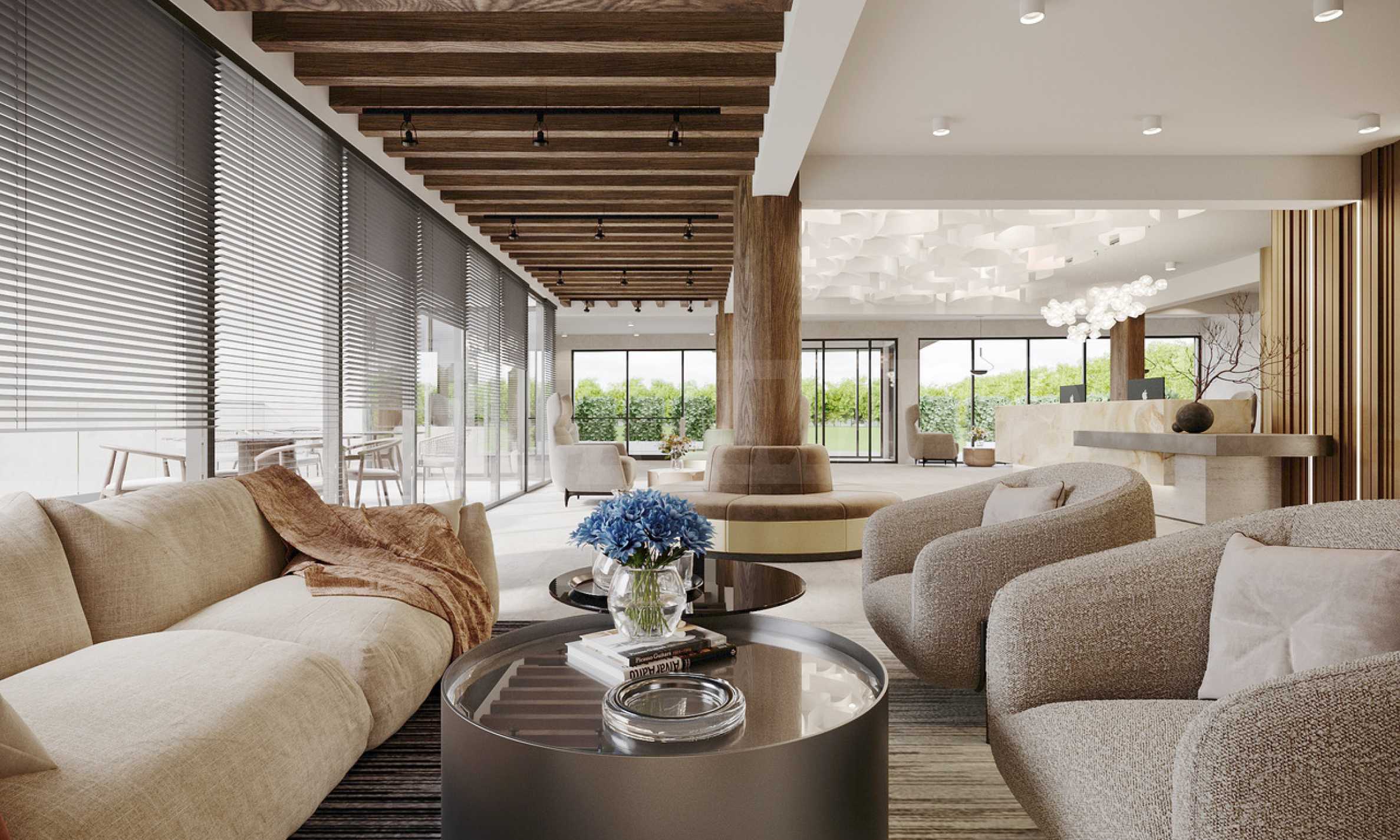 Архитектурната визия ще бъде подчертана с луксозно изпълнени общи части с асансьори KONE, а на разположение на обитателите ще има ресторант от премиален бранд, италианска кафе-сладкарница, скиорна, ултрамодерен уелнес и СПА център, който включва вътрешни и външни сауни, малък басейн с дифузери, парна баня и стаи за масаж, както и фитнес център с Kettler и Tehnogym фитнес уреди.