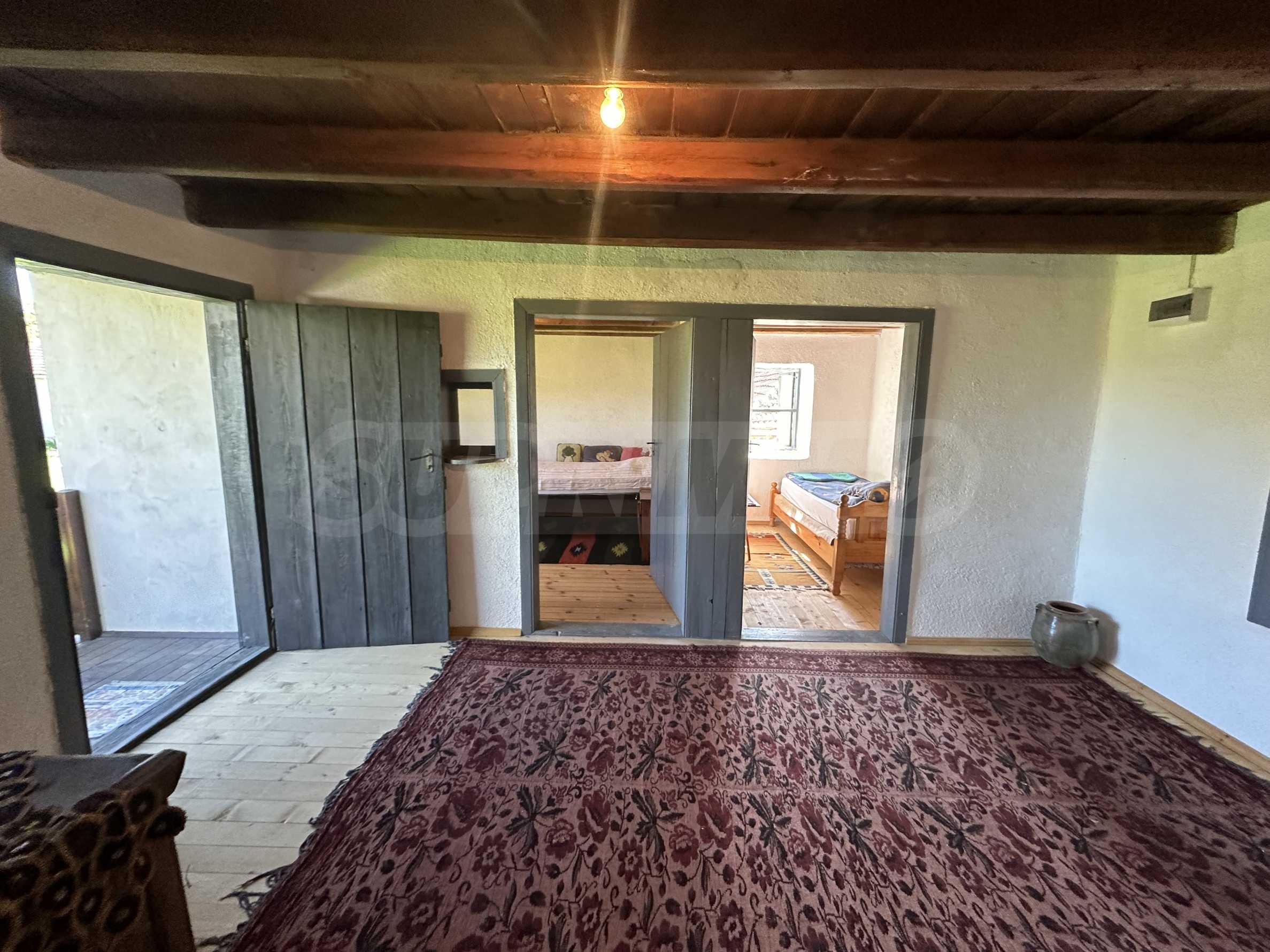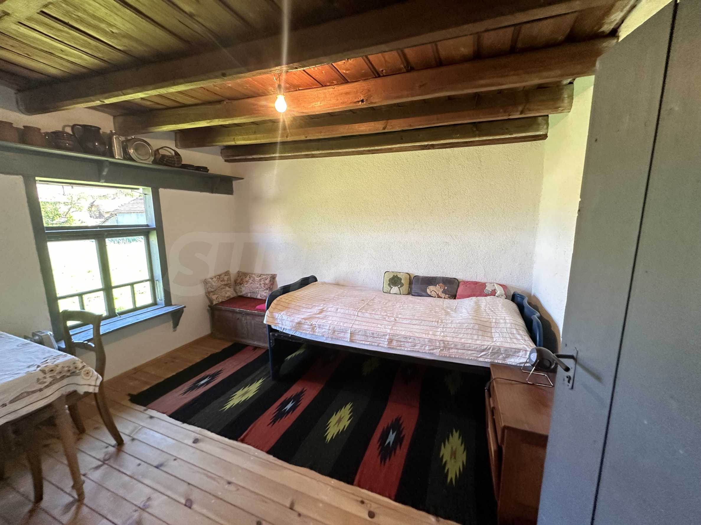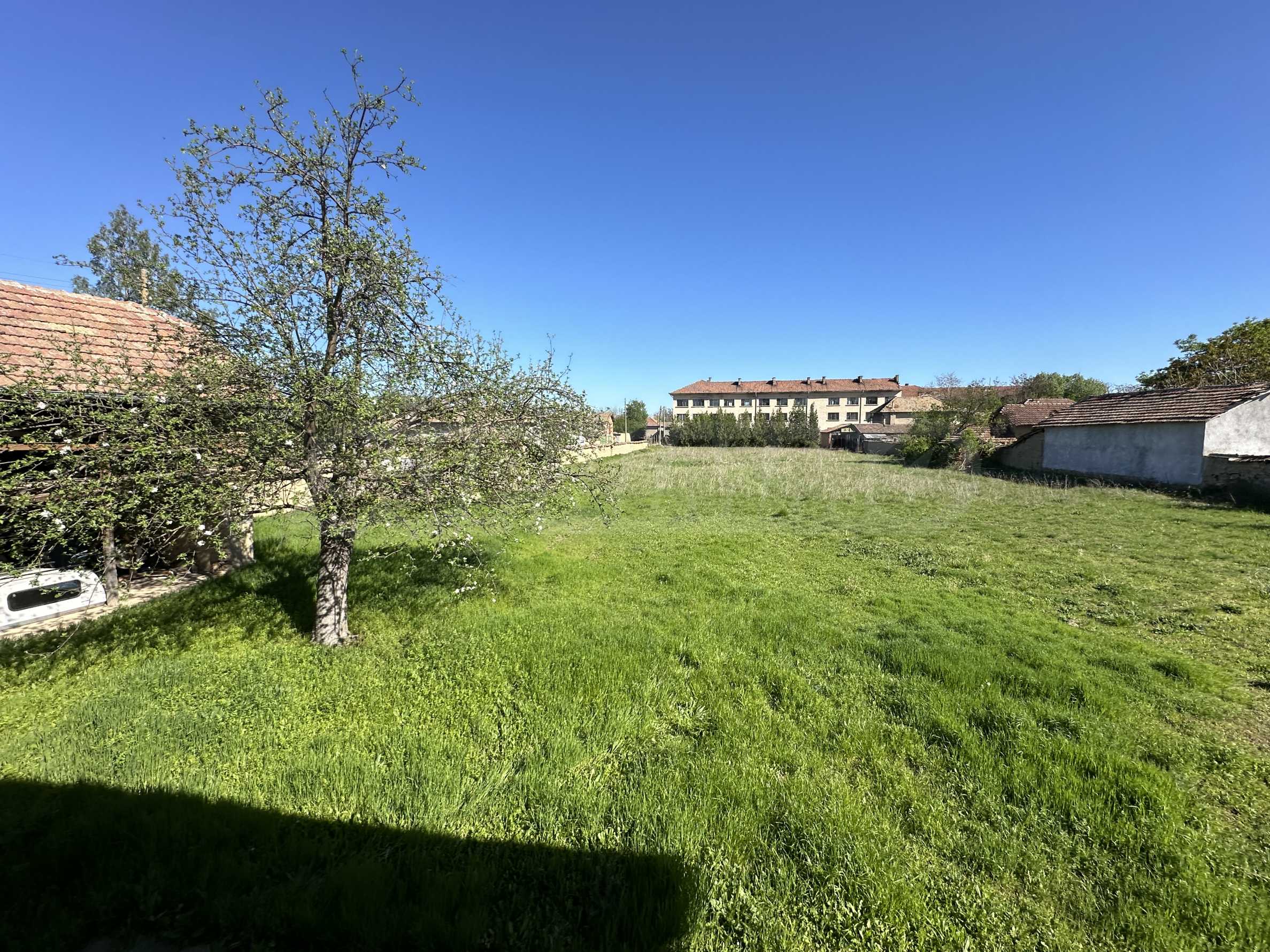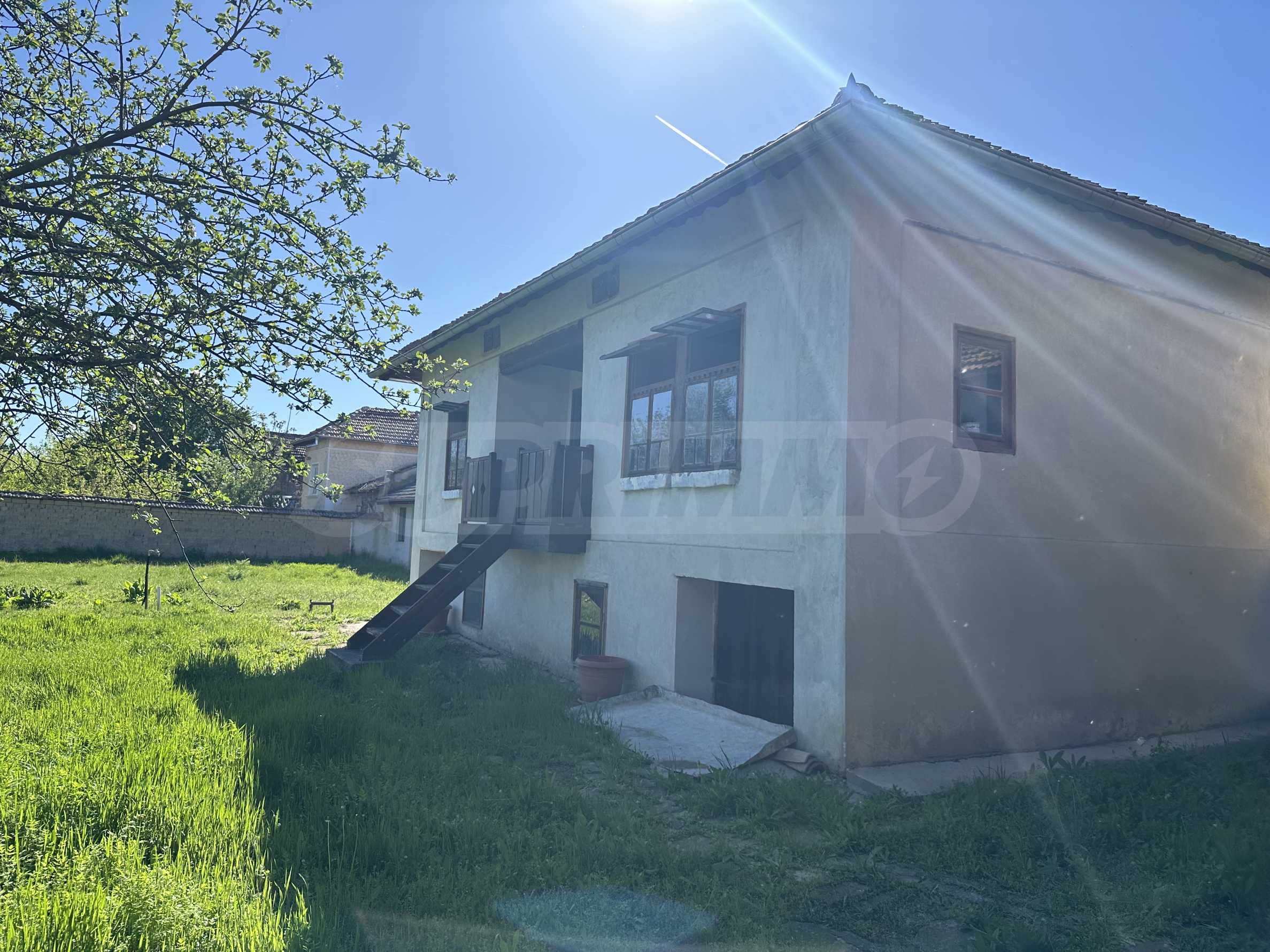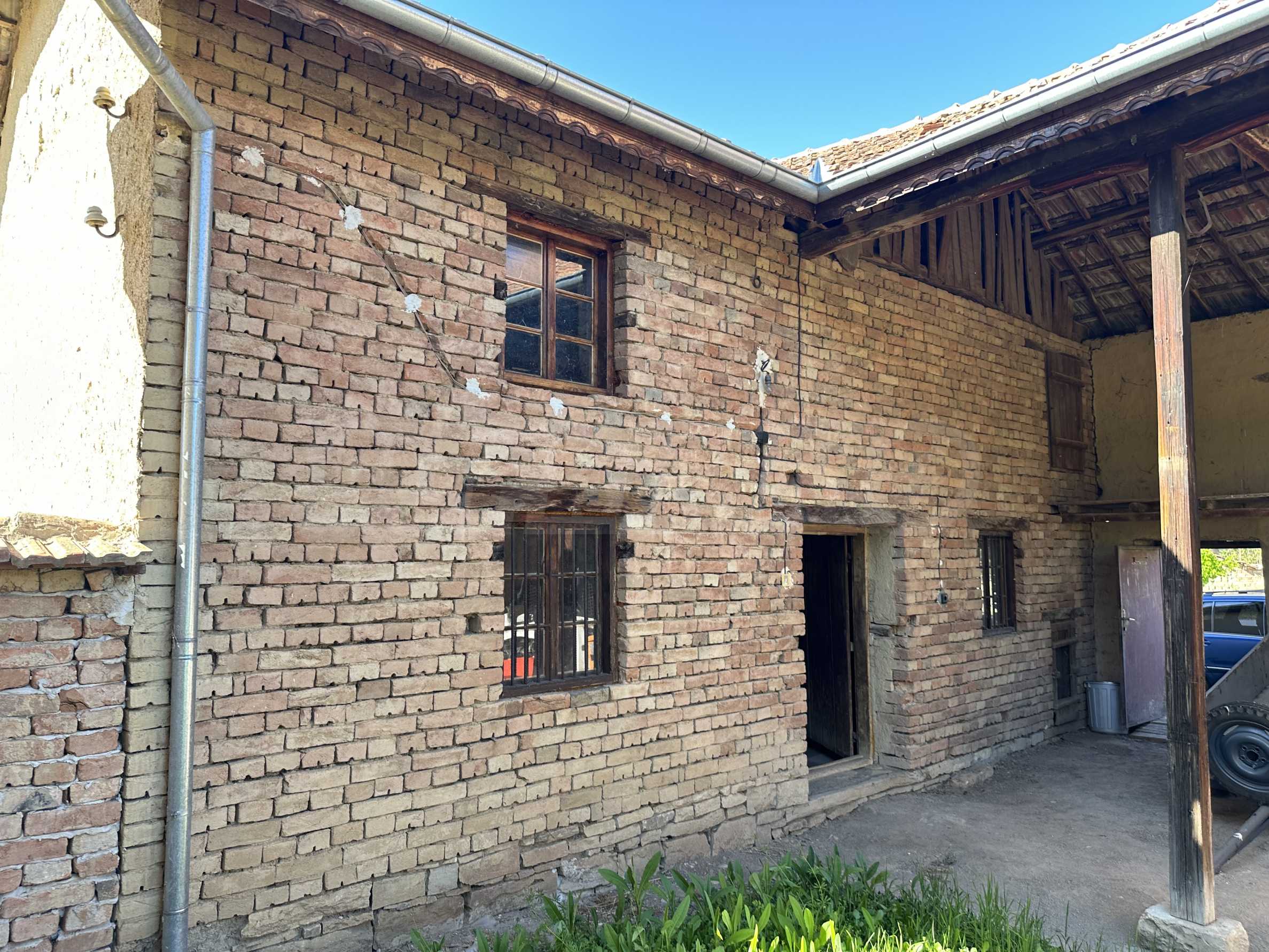 Подходящ за семейства и истински ценители на извънградският начин на живот. Състои се от реновирана красива къща от началото на 20-ти век с масивни греди, обзаведена на вторият етаж с три спални и голямо антре/вестибюл (колкото стая). В приземният етаж има голяма кухня с пещ, както и хол. На вторият етаж има три напълно обзаведени спални, както и в съседно помещение чисто нова, напълно обзаведена баня. Вълшебен имот, готов за нанасяне, с всичко необходимо за живот извън града. Ремонтирани са покривите, поставени са нови улуци, водостоци, ел. инсталация, подове на вторият етаж. Условия за отглеждане и обработка на всякакви земеделски култури и/или животновъдство дребни и едри животни, както и за изграждане на фотоволтаична мощност. Имотъте равен с правилна правоъгълна форма. Има ограда и входове, както за автомобили, така и излаз на двора от към гаражите. Имотът е ъглов с излаз на две асфалтови улици.