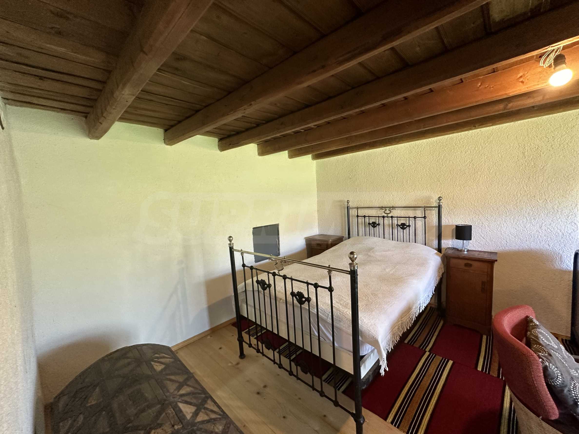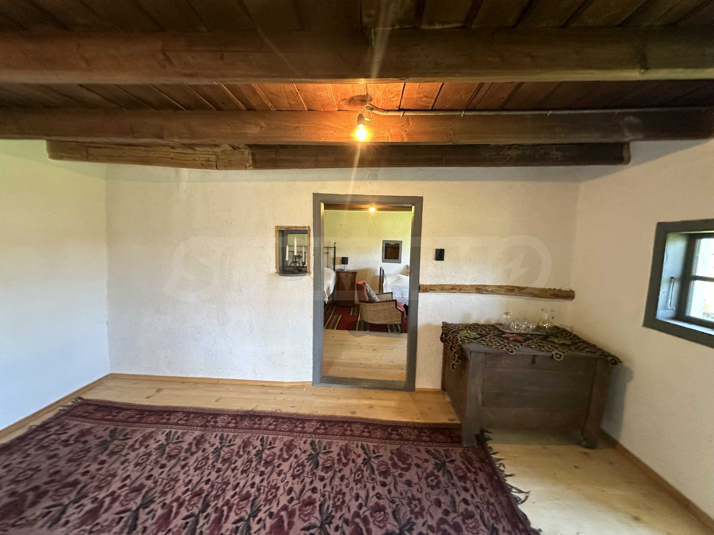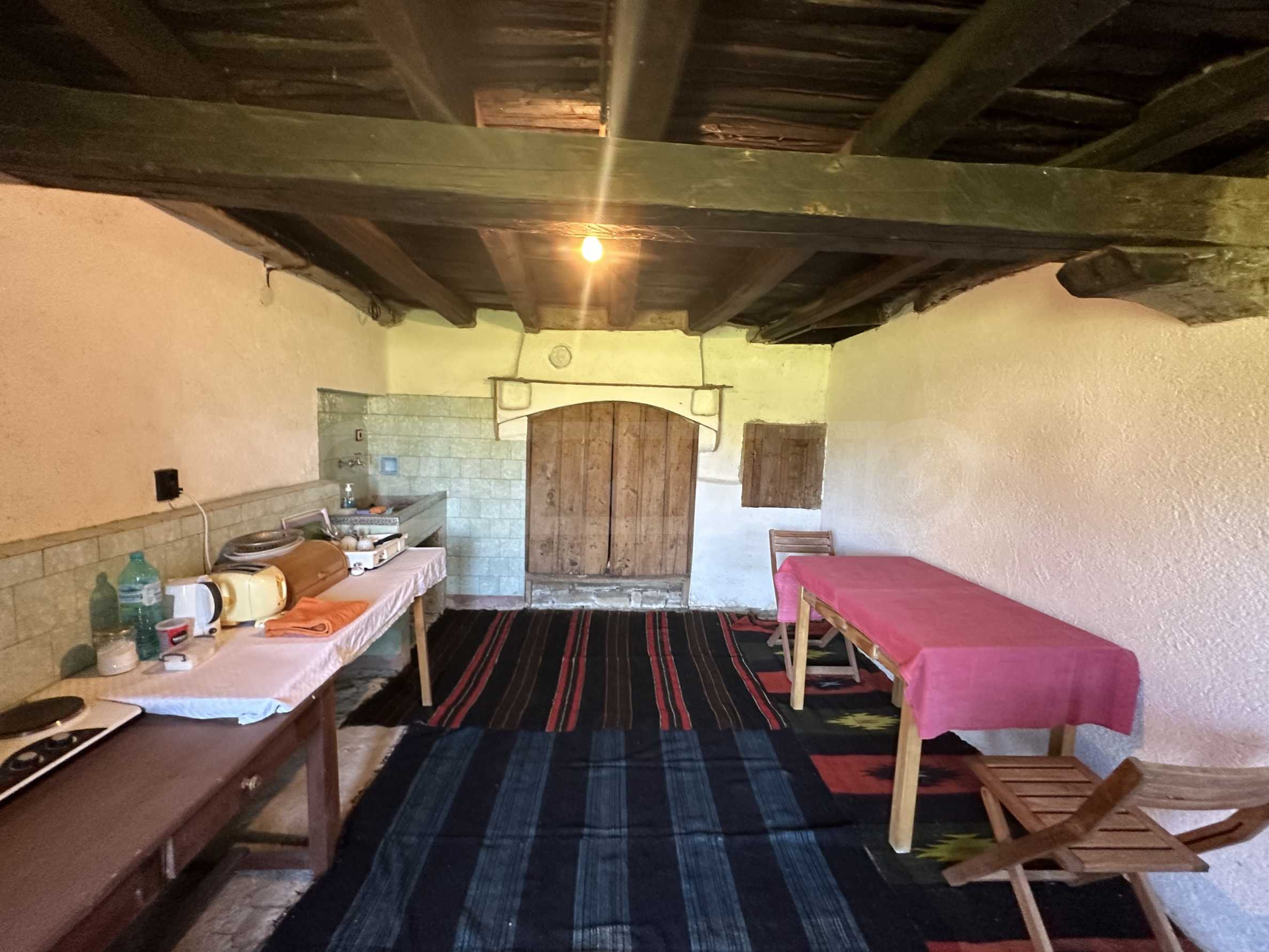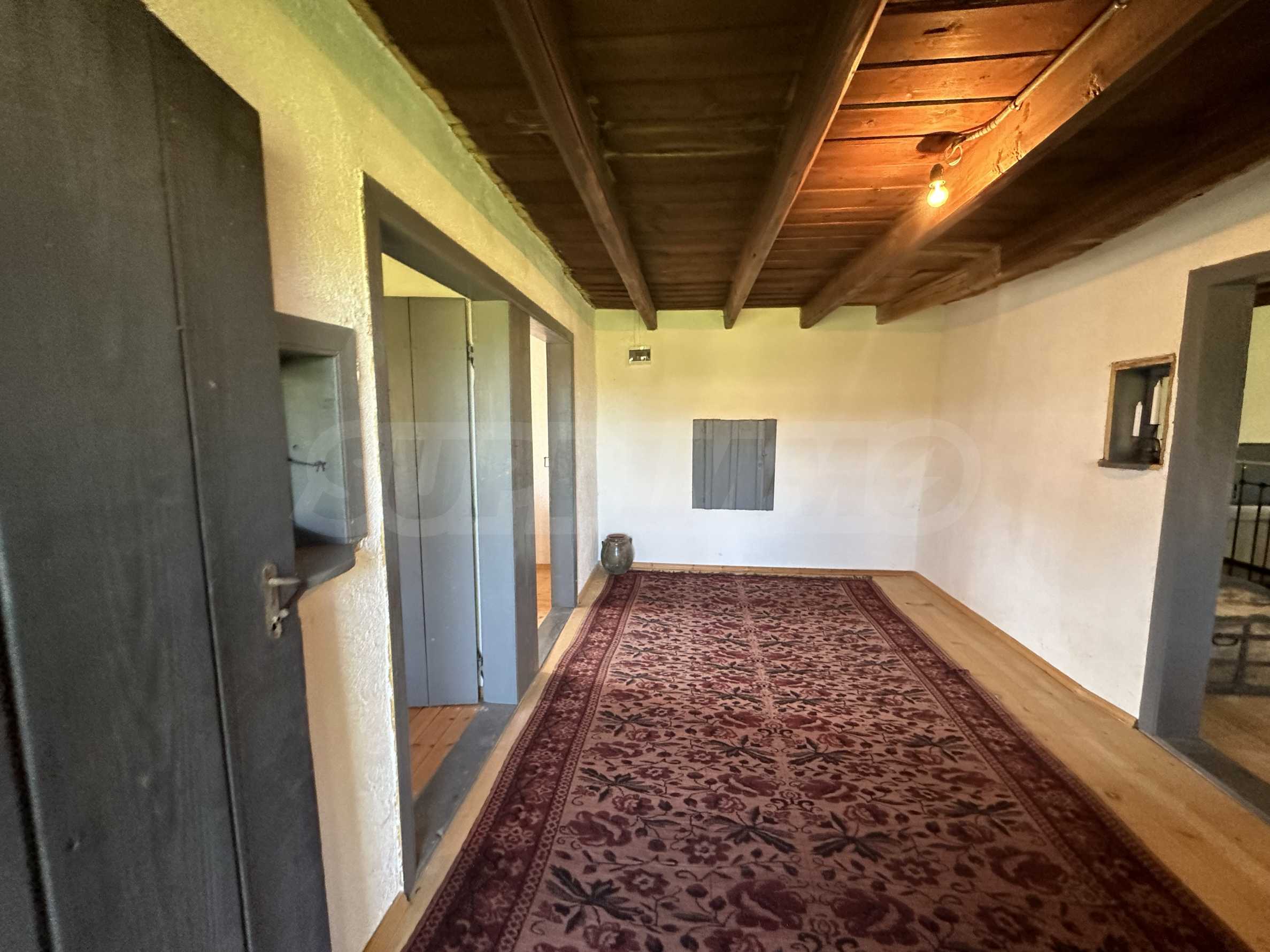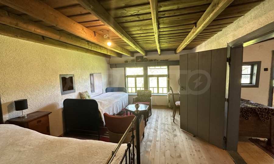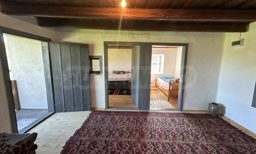 Подходящ за семейства и истински ценители на извънградският начин на живот. Състои се от реновирана красива къща от началото на 20-ти век с масивни греди, обзаведена на вторият етаж с три спални и голямо антре/вестибюл (колкото стая). В приземният етаж има голяма кухня с пещ, както и хол. На вторият етаж има три напълно обзаведени спални, както и в съседно помещение чисто нова, напълно обзаведена баня. Вълшебен имот, готов за нанасяне, с всичко необходимо за живот извън града. Ремонтирани са покривите, поставени са нови улуци, водостоци, ел. инсталация, подове на вторият етаж. Условия за отглеждане и обработка на всякакви земеделски култури и/или животновъдство дребни и едри животни, както и за изграждане на фотоволтаична мощност. Имотъте равен с правилна правоъгълна форма. Има ограда и входове, както за автомобили, така и излаз на двора от към гаражите. Имотът е ъглов с излаз на две асфалтови улици.