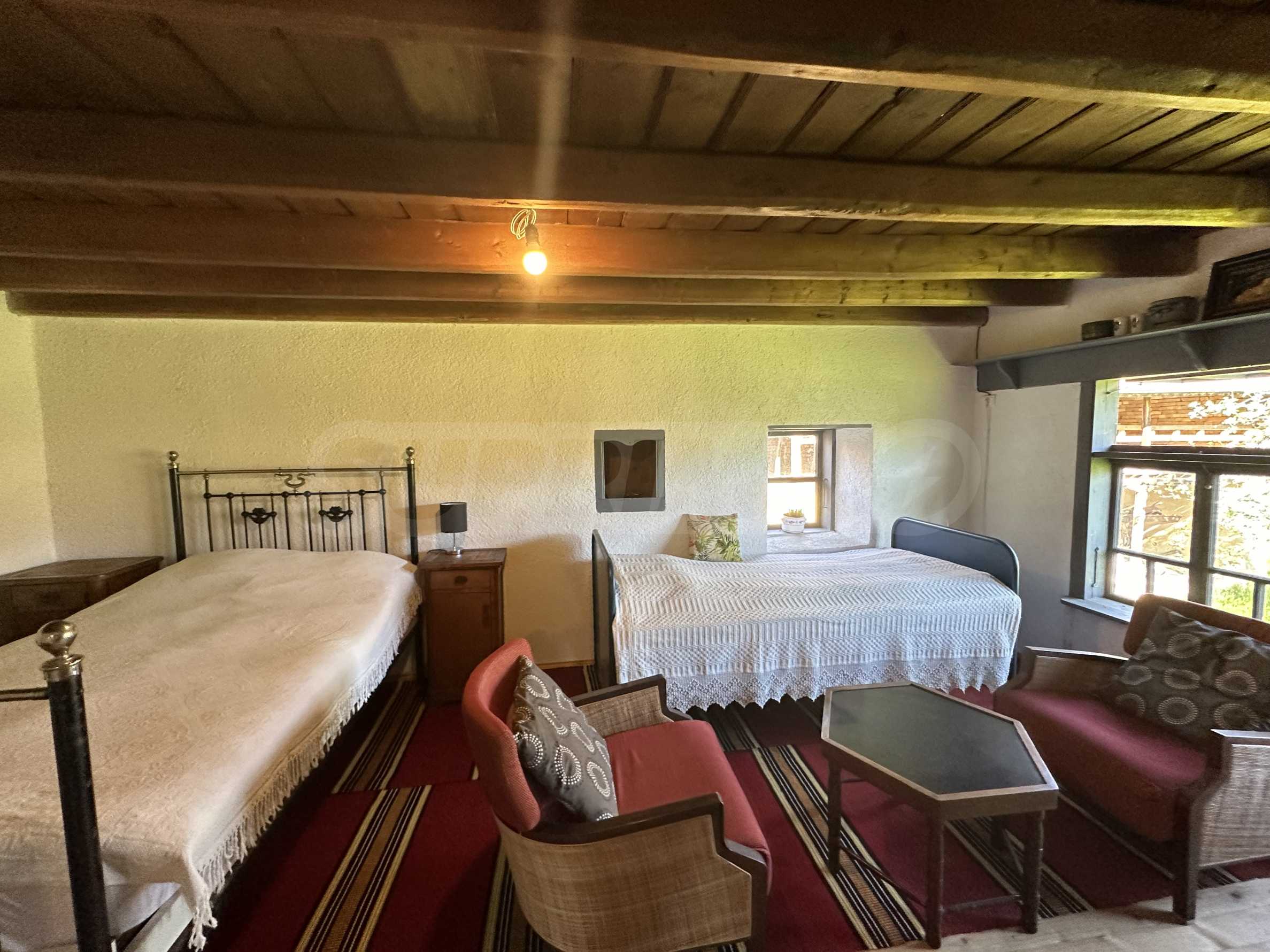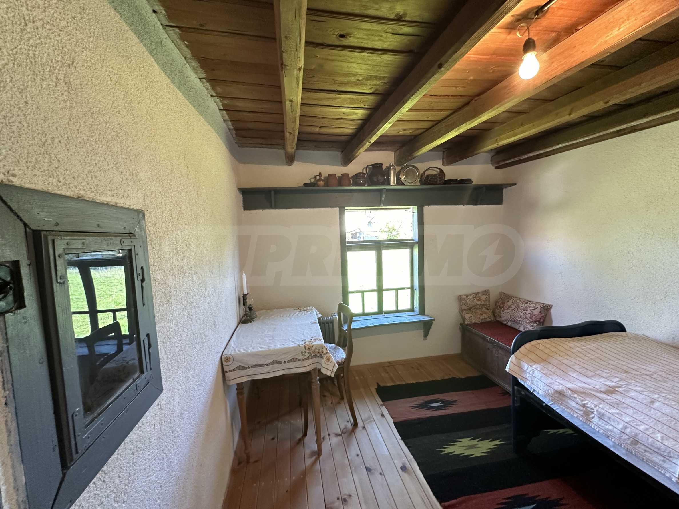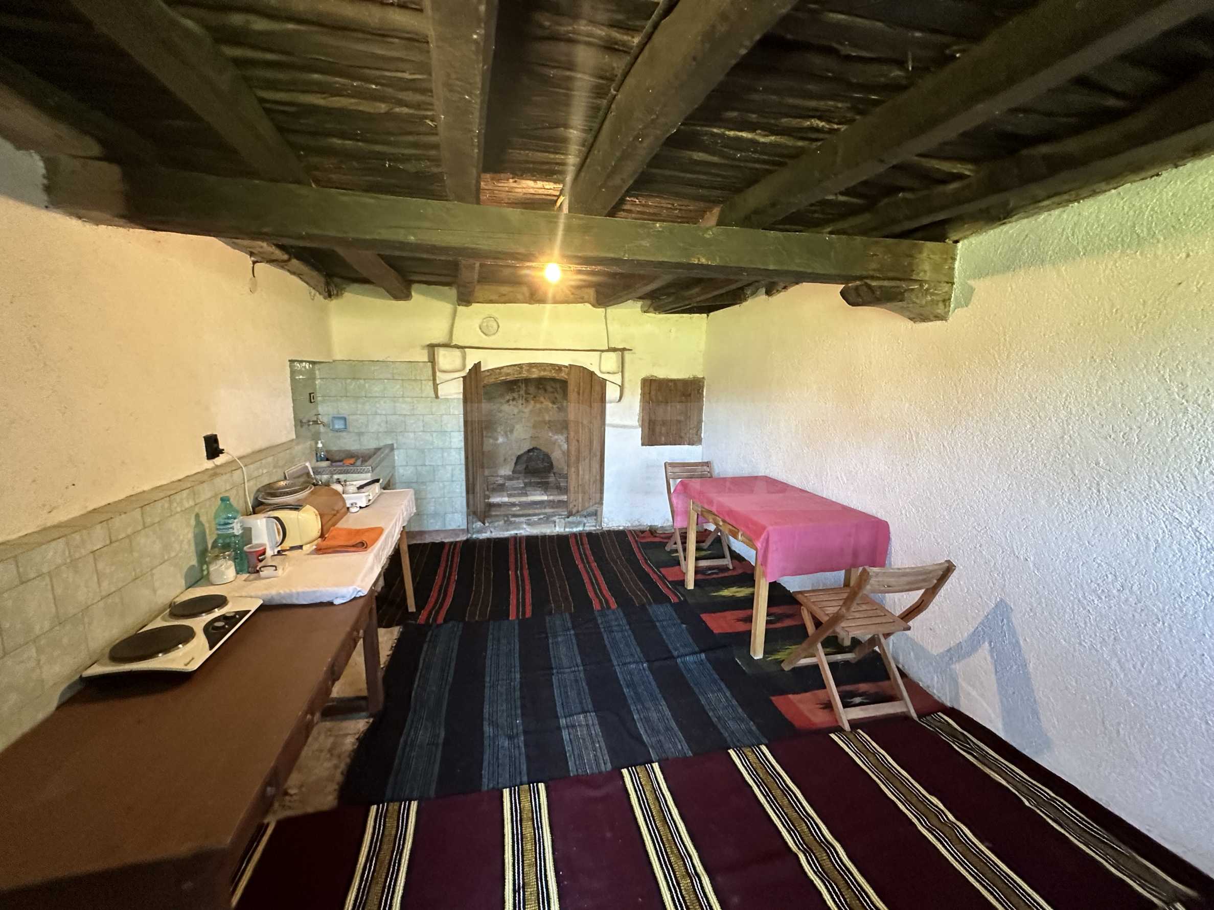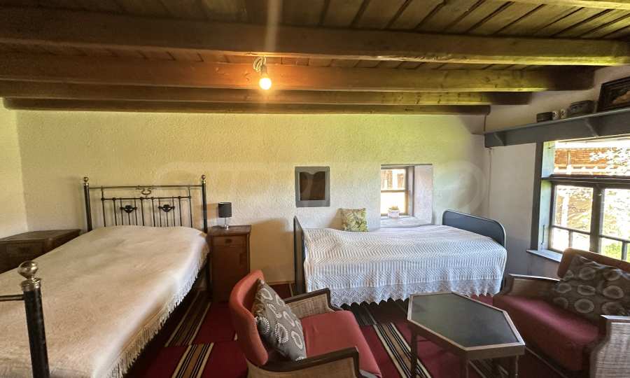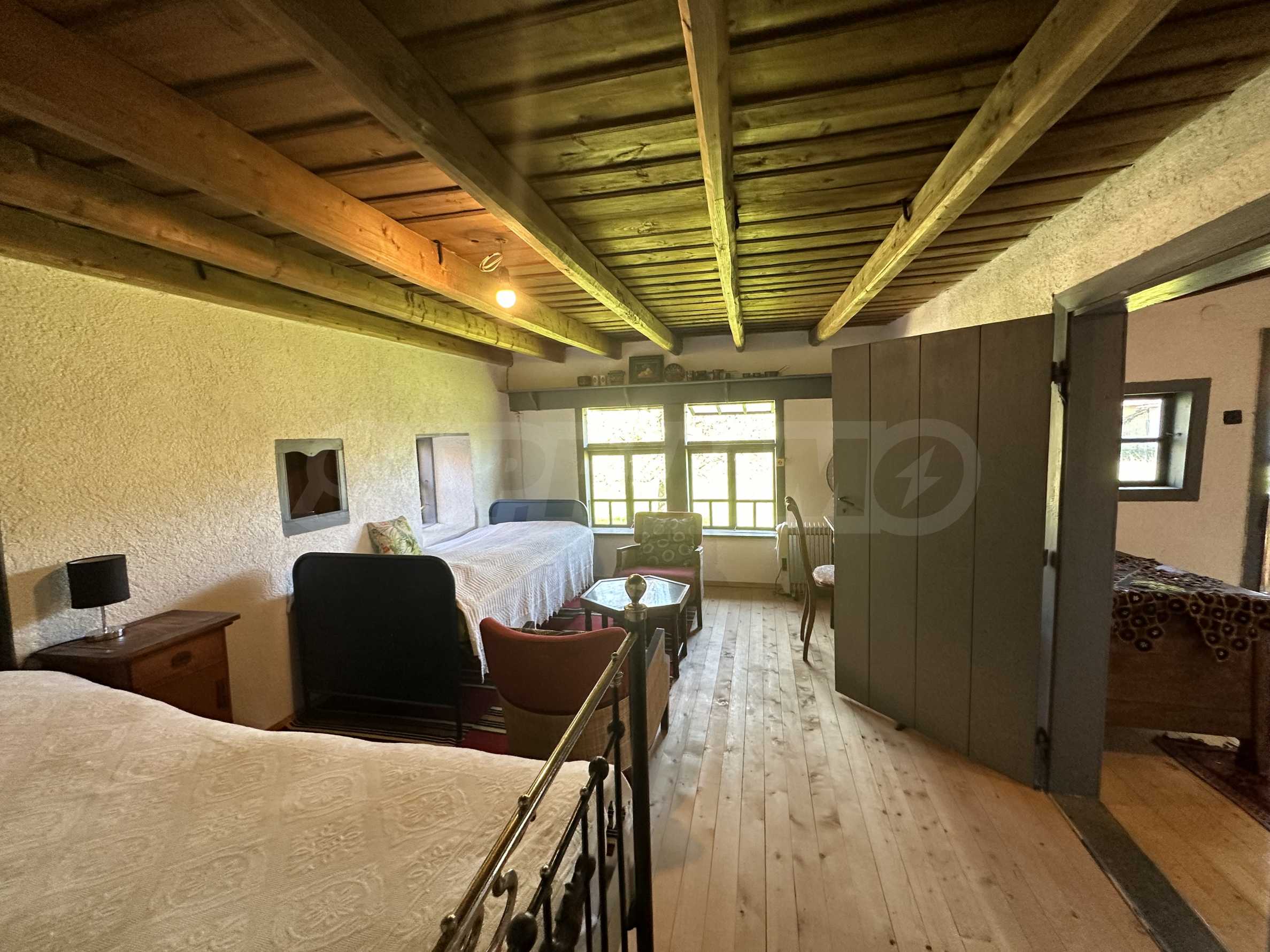 Подходящ за семейства и истински ценители на извънградският начин на живот. Състои се от реновирана красива къща от началото на 20-ти век с масивни греди, обзаведена на вторият етаж с три спални и голямо антре/вестибюл (колкото стая). В приземният етаж има голяма кухня с пещ, както и хол. На вторият етаж има три напълно обзаведени спални, както и в съседно помещение чисто нова, напълно обзаведена баня. Вълшебен имот, готов за нанасяне, с всичко необходимо за живот извън града. Ремонтирани са покривите, поставени са нови улуци, водостоци, ел. инсталация, подове на вторият етаж. Условия за отглеждане и обработка на всякакви земеделски култури и/или животновъдство дребни и едри животни, както и за изграждане на фотоволтаична мощност. Имотъте равен с правилна правоъгълна форма. Има ограда и входове, както за автомобили, така и излаз на двора от към гаражите. Имотът е ъглов с излаз на две асфалтови улици.