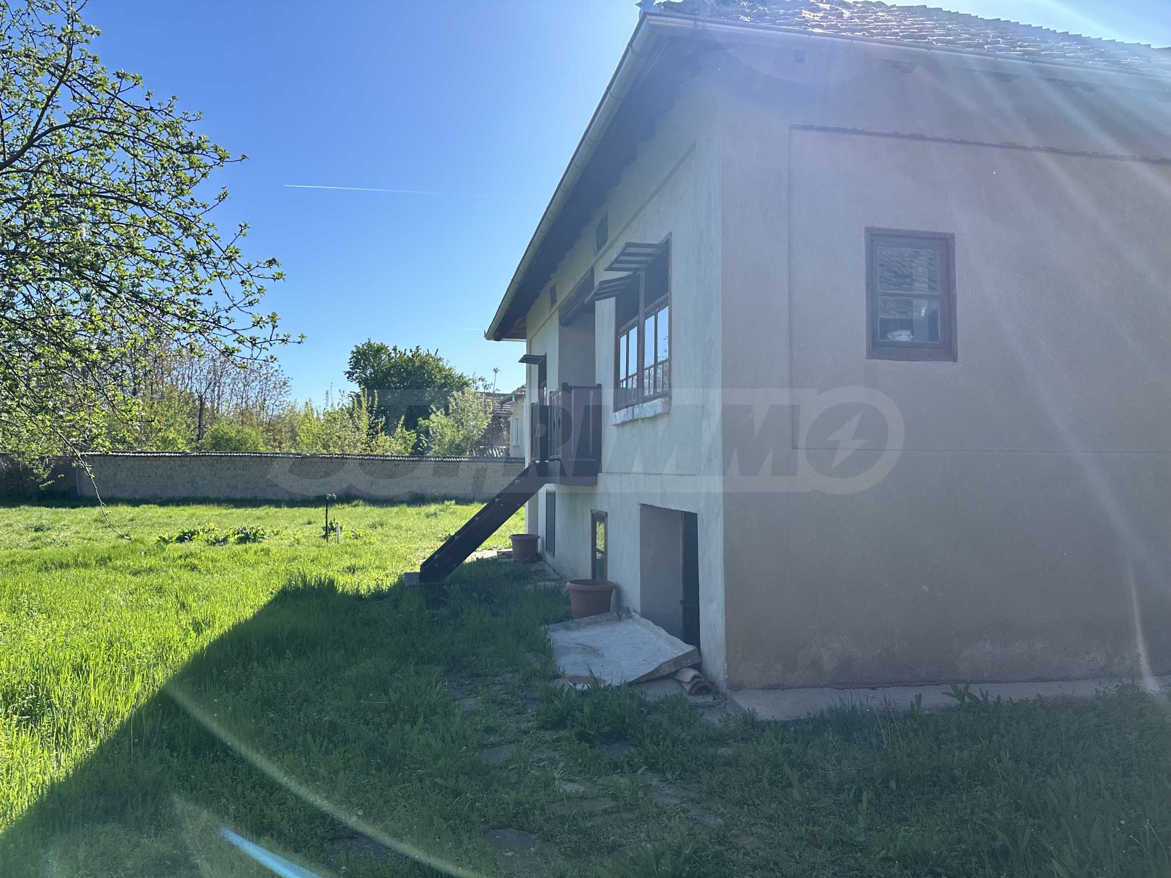 Дворът е 7800 кв.м, къщата е на два етажа, на етаж по 80 кв.м. Етаж 1 се състои от две стаи големи кухня и хол. Етаж 2 се състои от 3 стаи и голямо антре/стая; Още в имота има 2 гаража 15 кв. м. и 21 кв.м.; Складово помещение/работилница - 40 кв.м. Навес/ сайвант 80 кв.м. на две нива общо;. Баня чисто новоизградена и обзаведена. Къщата има нов електромер, нов водомер, нова ел. система, нов водопровод, нов бойлер; Имот с много възможности.