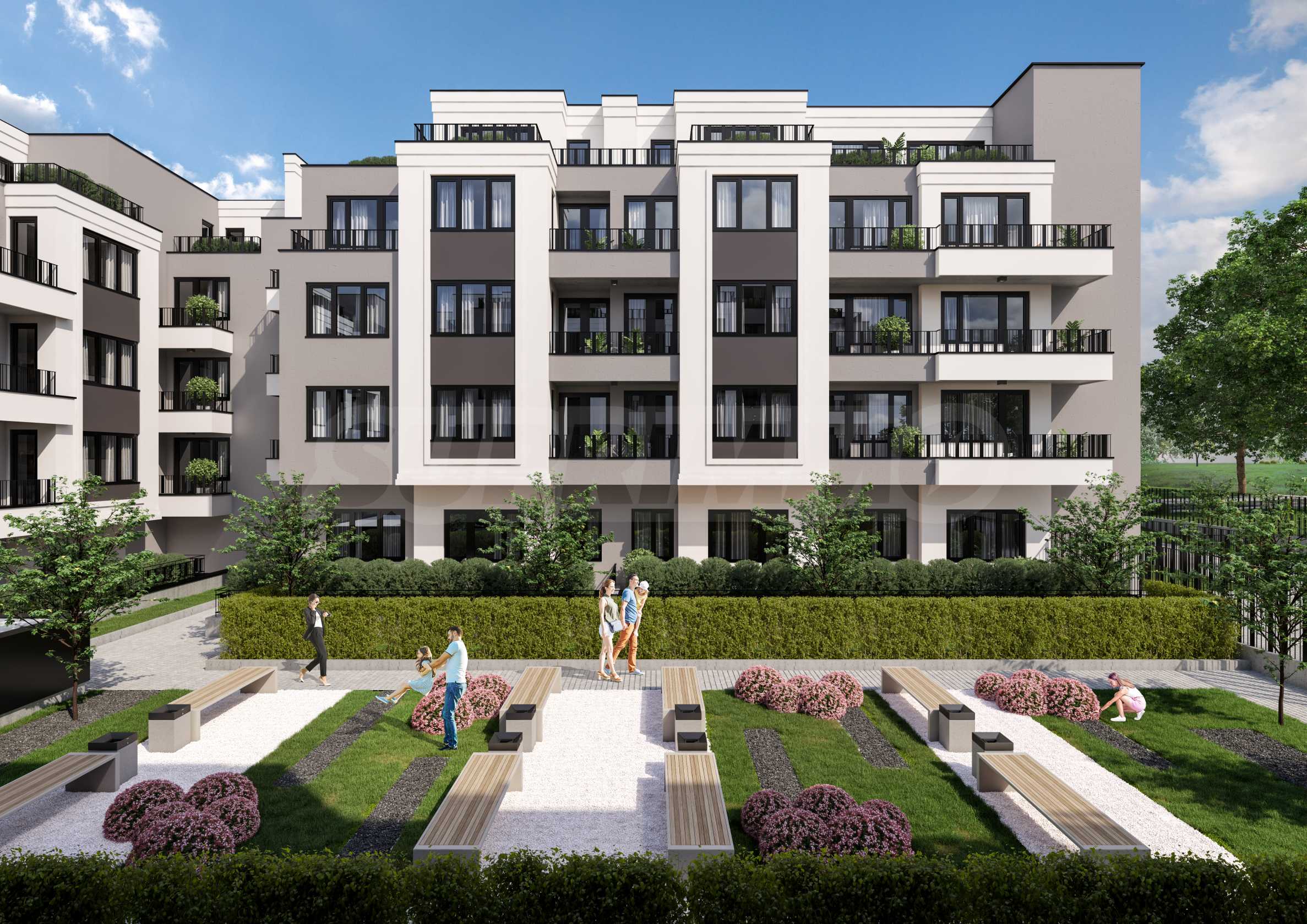 Комплексът е организиран в четири 5-етажни секции, всяка със самостоятелен вход. Планирани са общо 93 жилища - 67 двустайни апартамента, 20 тристайни и 6 еднопространствените студиа със самостоятелен бокс. Петнадесет от жилищата са тип пентхаус, като разполагат с панорамни тераси с площи между 24 и 70 кв.м, а апартаментите на нивото на вътрешния двор са шест и разполагат с прилежащи вътрешни дворове с площ между 33 и 55 кв.м.