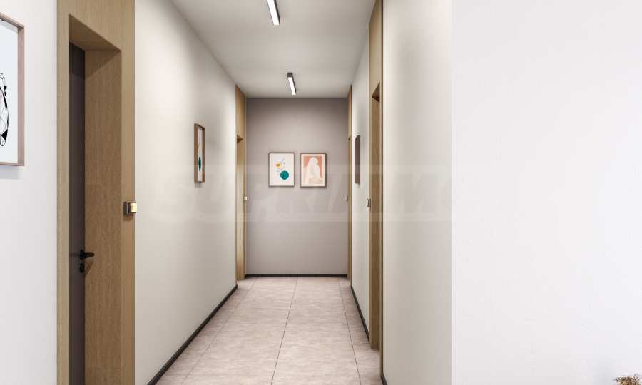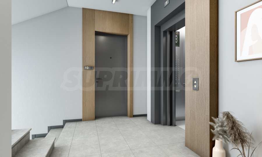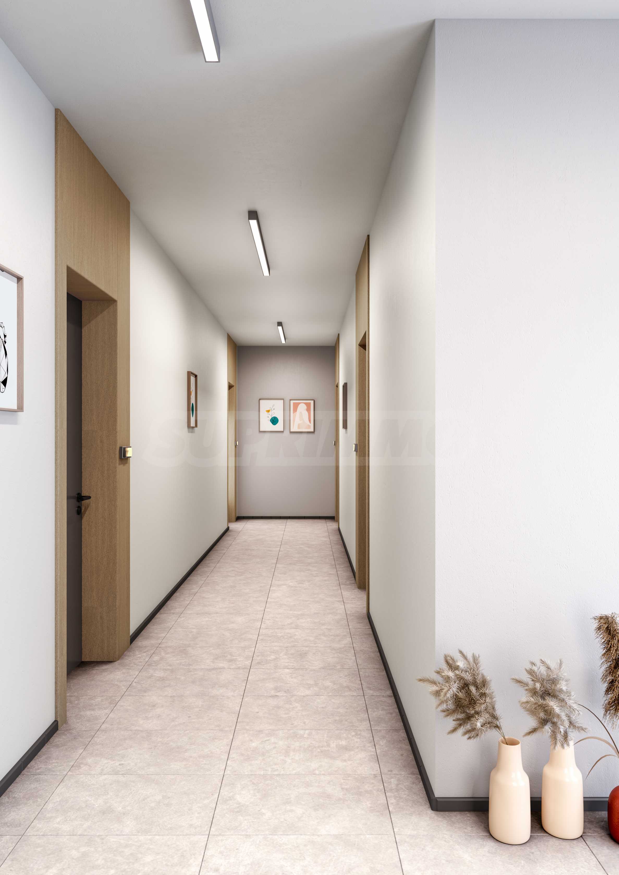 - общи части - стени на латекс, настилки от гранитогрес, метални парапети, осветление с датчици за движение;