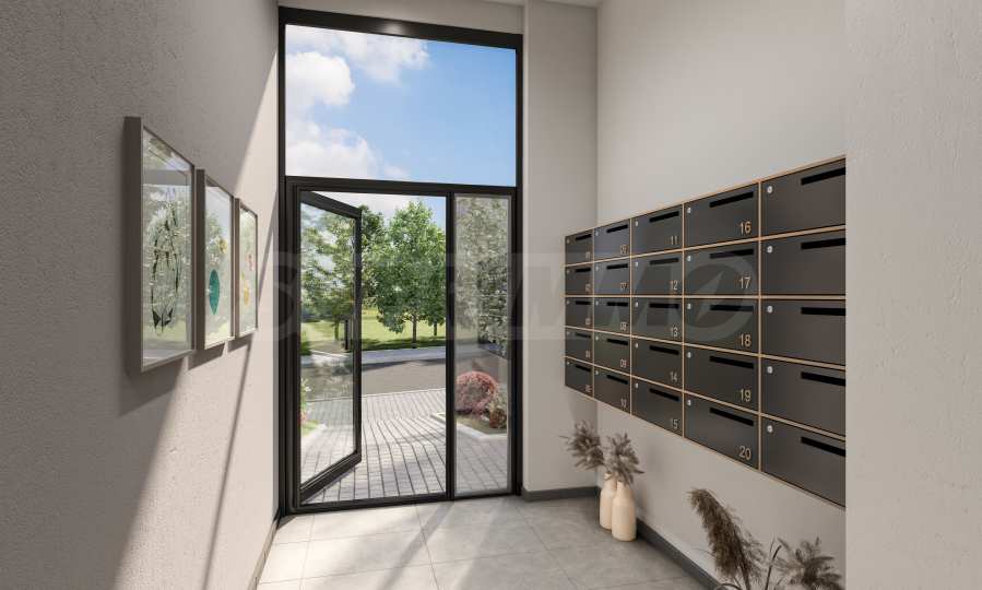 Апартаментите са с оптимално разпределение и изложение, така че да предоставят максимално ослънчаване през деня и красиви гледки към Витоша. Паркирането е решено с подземни гаражи и паркоместа на терен, а за допълнително удобство на живущите има налични складови помещения в сутерена на сградата.