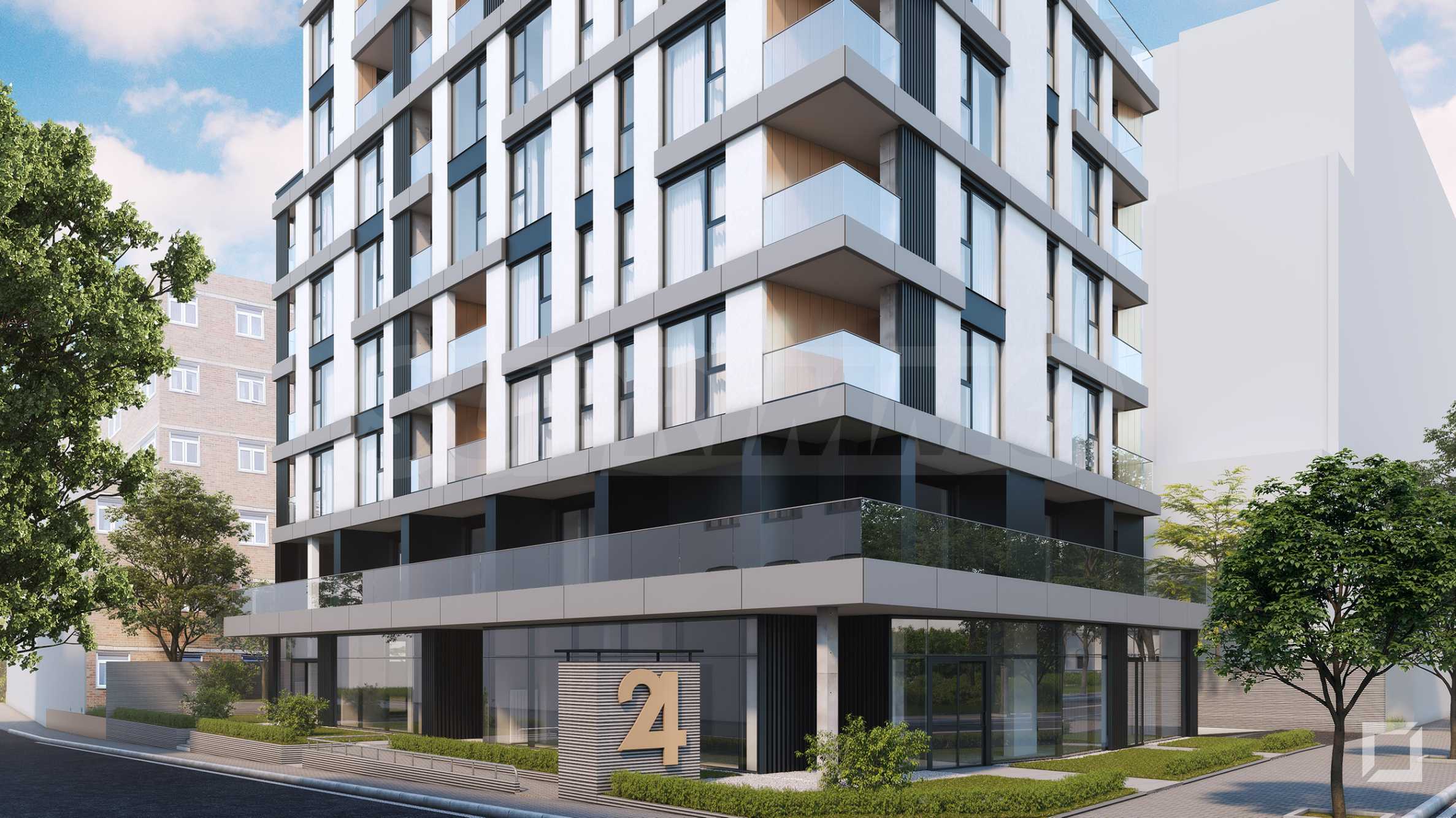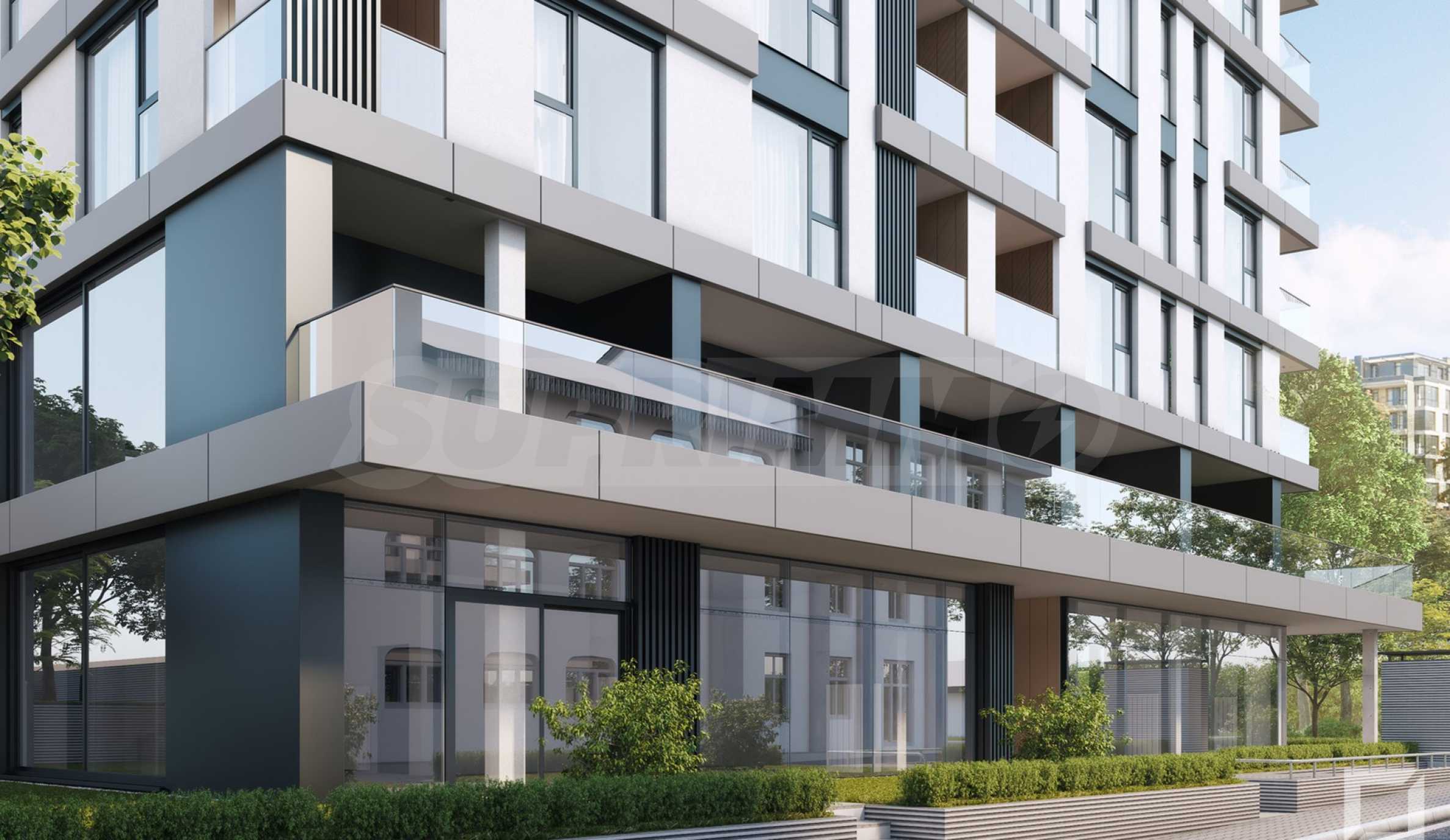 Сградата е решена на 10 етажа, като на ниво партер са разположени офиси и магазини, а вторият етаж е изцяло офисен с обширна зелена тераса, която да допринася за комфорт на обитателите. Фасадата е елегантна, с модерен дизайн и комбинация от стъкло, бели и златисти тонове, перфектно отразяваща съвременната визия на градското жилище.